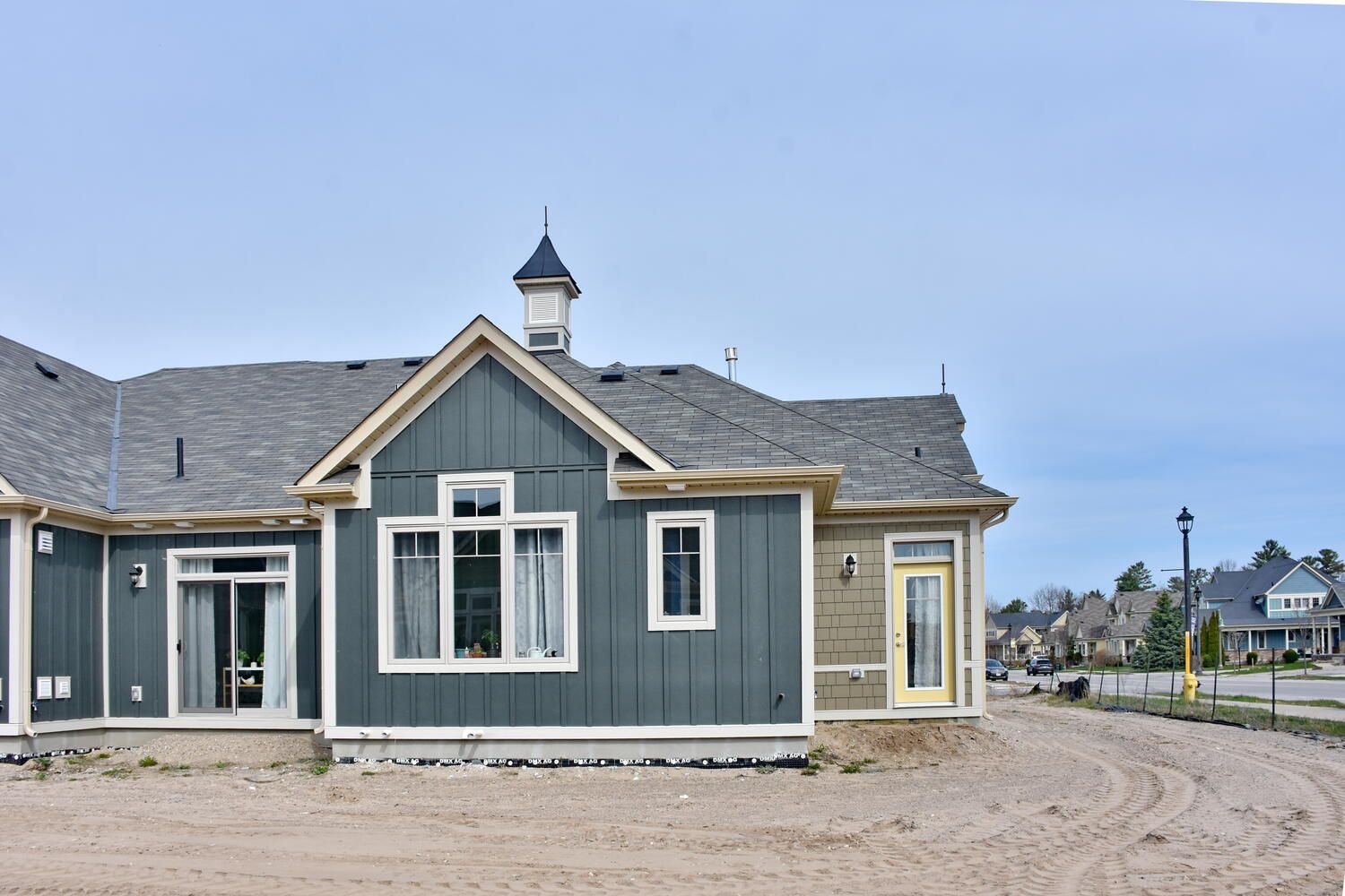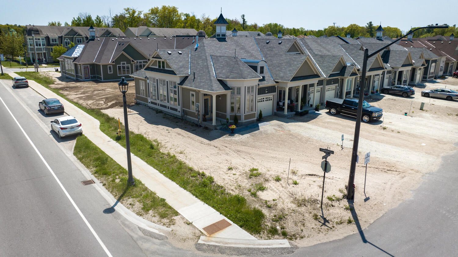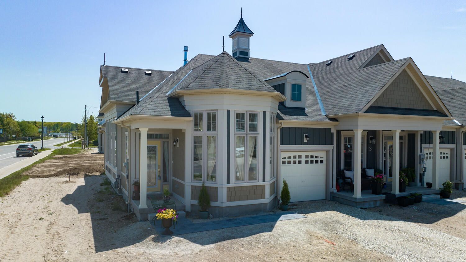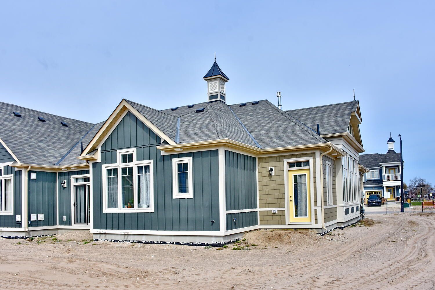 Enjoy no stairs, no condo or no common elements maintenance fees. Within walking distance to all the east amenities of the beautiful community of Wasaga Beach, this newly-built end 2 bedroom 2 bath end unit in the popular Stonebridge development of townhomes is the perfect answer to retirement living. Known as "Beachway Crossing", this private end-unit offers the addition of expansive windows to allow so much natural light cascading into this lovely 1,273 sf open concept living space from every angle. The living room features a gas fireplace, hardwood floors, and cathedral ceilings. The bright kitchen has all stainless steel appliances, eat up counters and adjacent dining nook with access to the outdoors. Lovely front room of the welcoming entrance can easily work as a bedroom, sitting room or office. Laundry room with inside entry to the attached garage with private driveway. The primary bedroom is spacious with walk in closet and 3 piece master and is a wonderful "Kingfisher" model.This townhome is freehold, there are NO condo fees, NO land lease fees and NO common area fees. Grass and paved driveway to be completed by builder.**INTERBOARD LISTING: THE LAKELANDS R. E. ASSOC**