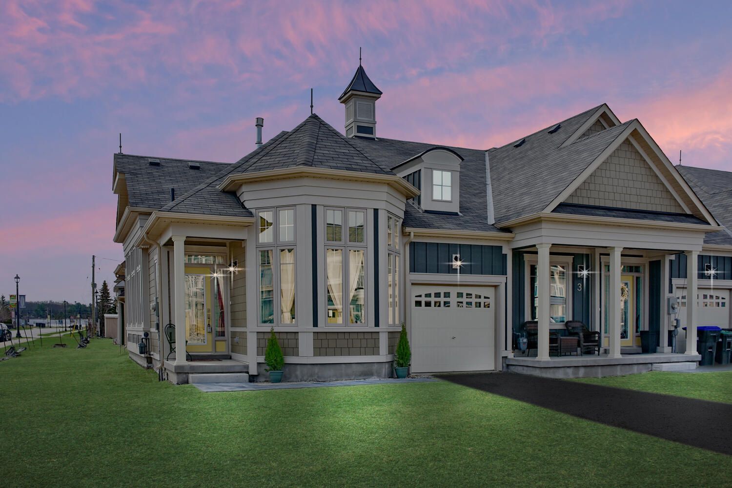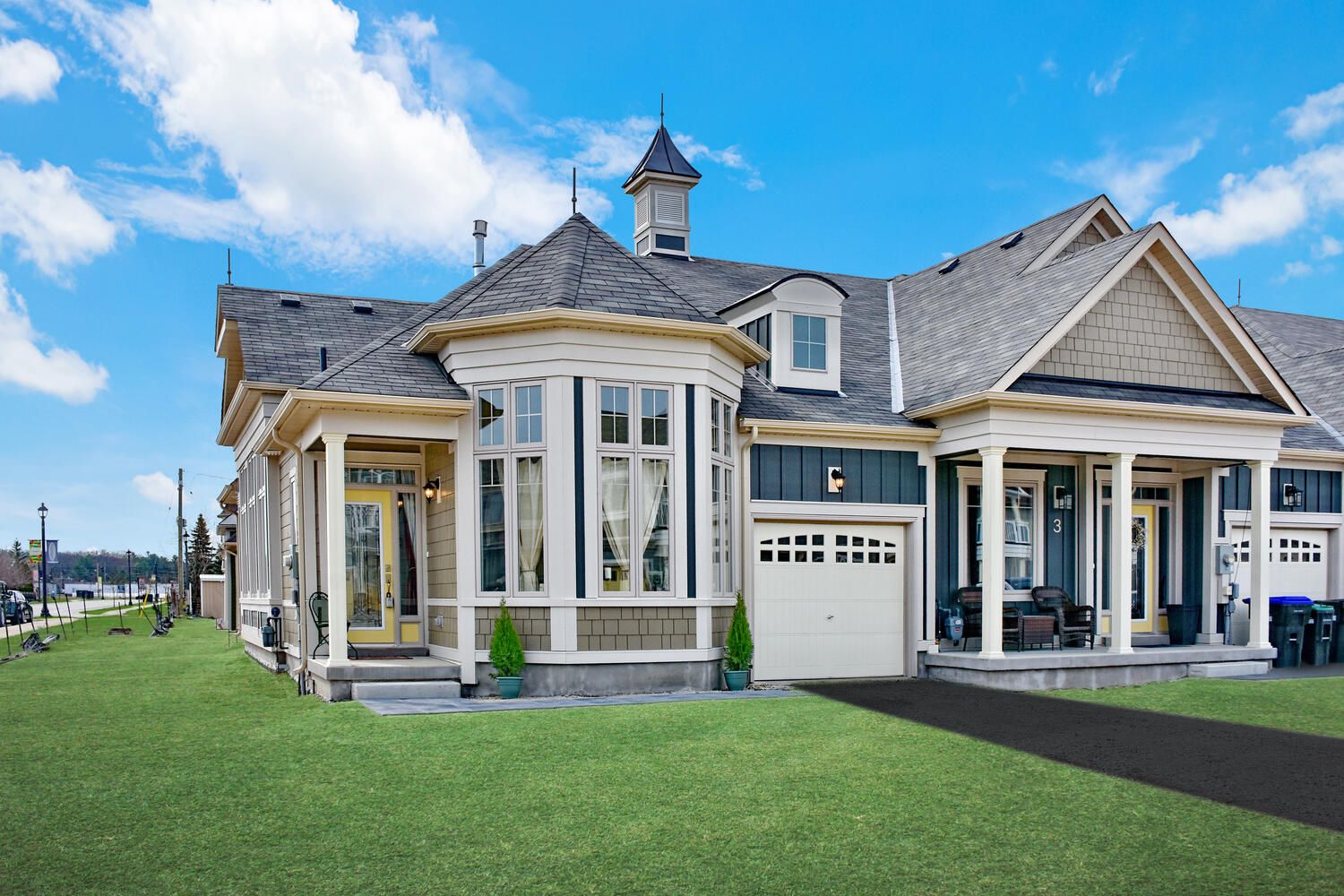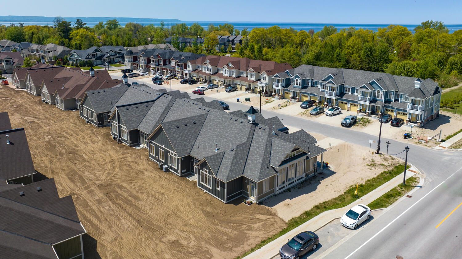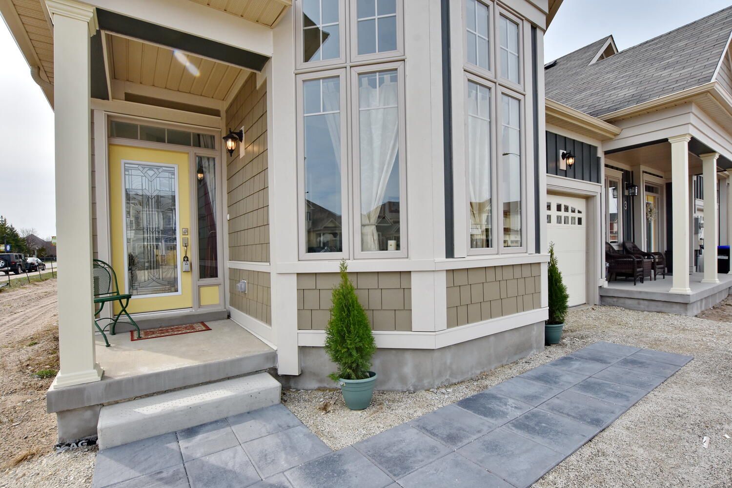 Enjoy no stairs, no condo or no common elements maintenance fees. Within walking distance to all the east amenities of the beautiful community of Wasaga Beach, this newly-built end 2 bedroom 2 bath end unit in the popular Stonebridge development of townhomes is the perfect answer to retirement living. Known as "Beachway Crossing", this private end-unit offers the addition of expansive windows to allow so much natural light cascading into this lovely 1,273 sf open concept living space from every angle. The living room features a gas fireplace, hardwood floors, and cathedral ceilings. The bright kitchen has all stainless steel appliances, eat up counters and adjacent dining nook with access to the outdoors. Lovely front room of the welcoming entrance can easily work as a bedroom, sitting room or office. Laundry room with inside entry to the attached garage with private driveway. The primary bedroom is spacious with walk in closet and 3 piece master and is a wonderful "Kingfisher" model.This townhome is freehold, there are NO condo fees, NO land lease fees and NO common area fees. Grass and paved driveway to be completed by builder.**INTERBOARD LISTING: THE LAKELANDS R. E. ASSOC**