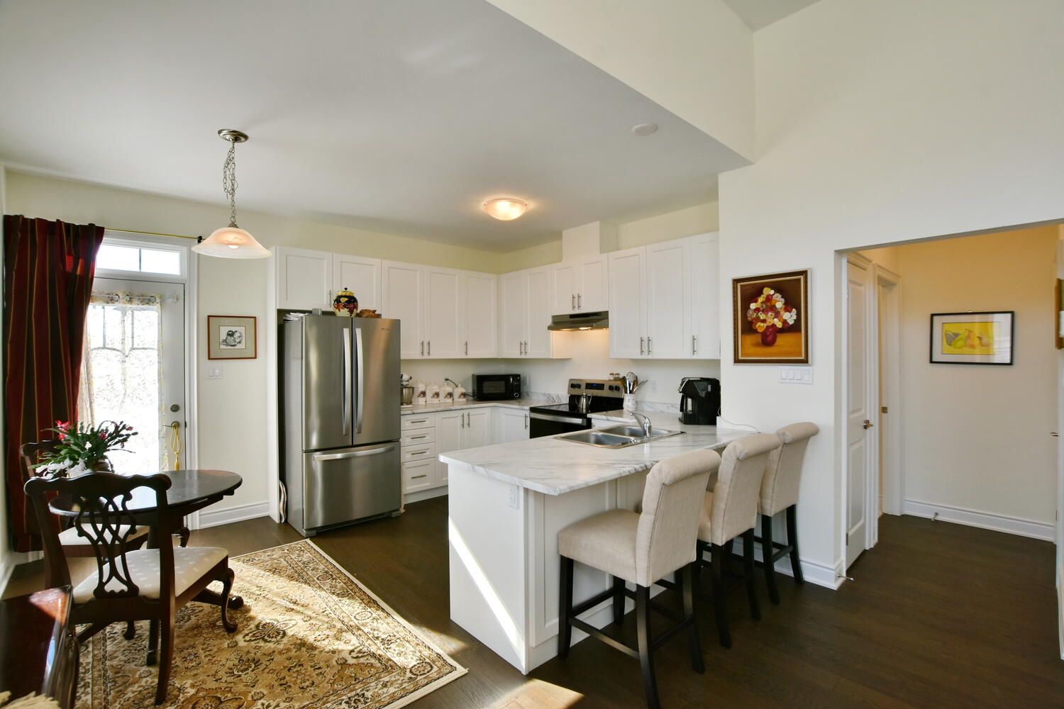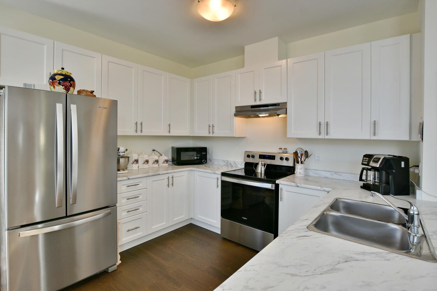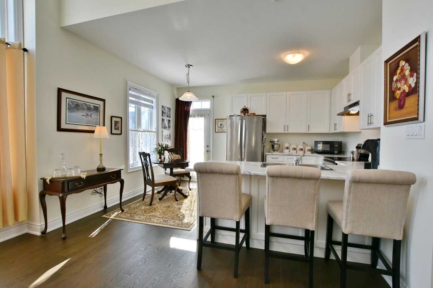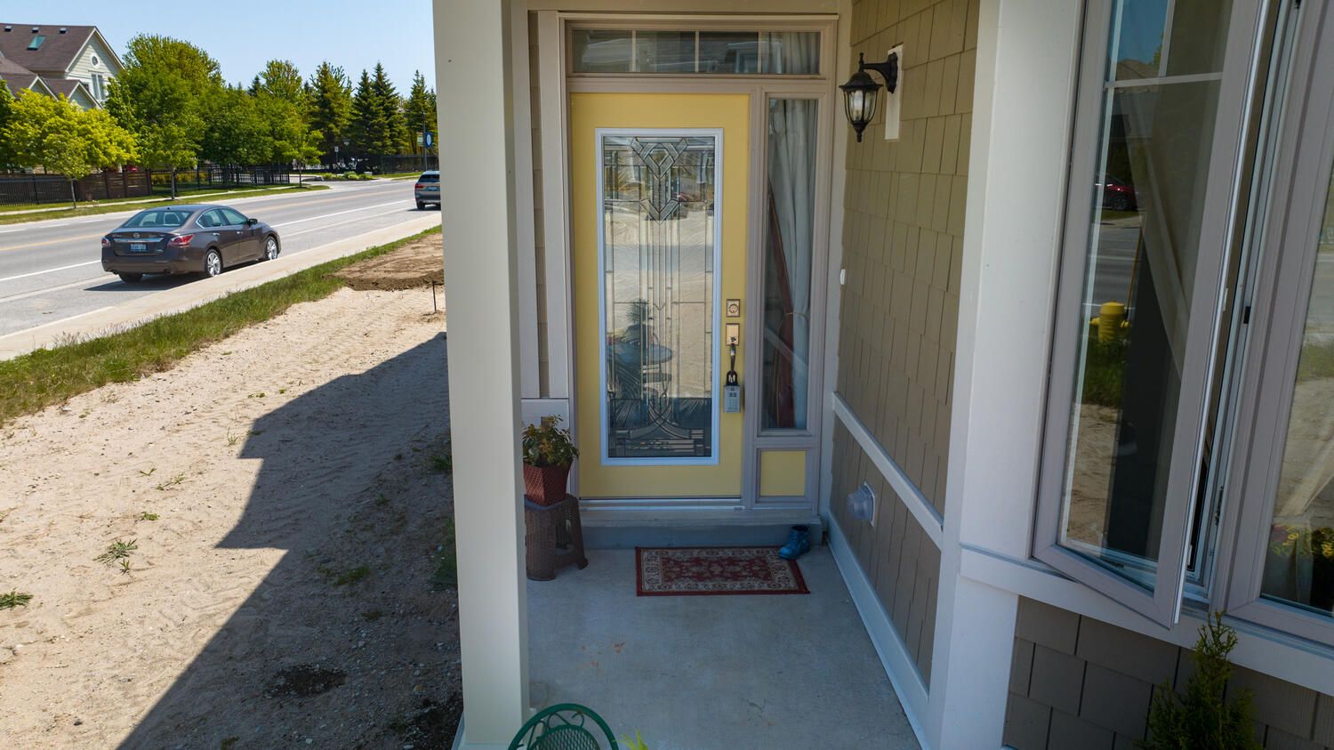 Enjoy no stairs, no condo or no common elements maintenance fees. Within walking distance to all the east amenities of the beautiful community of Wasaga Beach, this newly-built end 2 bedroom 2 bath end unit in the popular Stonebridge development of townhomes is the perfect answer to retirement living. Known as "Beachway Crossing", this private end-unit offers the addition of expansive windows to allow so much natural light cascading into this lovely 1,273 sf open concept living space from every angle. The living room features a gas fireplace, hardwood floors, and cathedral ceilings. The bright kitchen has all stainless steel appliances, eat up counters and adjacent dining nook with access to the outdoors. Lovely front room of the welcoming entrance can easily work as a bedroom, sitting room or office. Laundry room with inside entry to the attached garage with private driveway. The primary bedroom is spacious with walk in closet and 3 piece master and is a wonderful "Kingfisher" model.This townhome is freehold, there are NO condo fees, NO land lease fees and NO common area fees. Grass and paved driveway to be completed by builder.**INTERBOARD LISTING: THE LAKELANDS R. E. ASSOC**