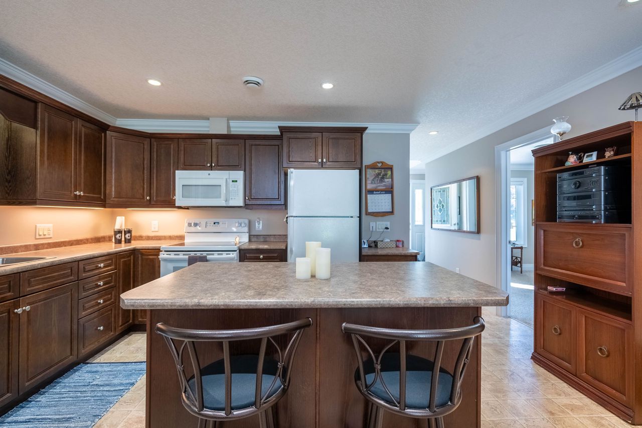 Welcome to 15 Meadow Lane. This charming bungalow is nestled in the heart of Wasaga Beach's desirable 55+ adult exclusive community. This thoughtfully designed, stair free residence offers a comfortable and convenient lifestyle for those seeking tranquility and a strong sense of community. With 2 bedrooms and 1.5 bathrooms, this home provides the perfect balance of space and intimacy in this bright, low maintenance home. The generous primary bedroom offers large windows a walk-in closet & 3-pc ensuite. The well-appointed kitchen is a focal point boasting a large island and ample storage. The open concept offers ease of entertaining with casual dining area & living room spaces too. Step outside to your private patio, an ideal spot to enjoy the serene surroundings and fresh air. As part of the adult-exclusive community, residents can relish in a range of amenities tailored to their needs, fostering a sense of belonging and engagement.Parkbridge Communities Fee Breakdown: Rent - $660.27. Taxes for the LOT- $44.00 (ESTIMATED) Taxes for the STRUCTURE - $114.11 (ESTIMATED). Water/Sewer: METERED. Estimated Monthly Total - $818.38.