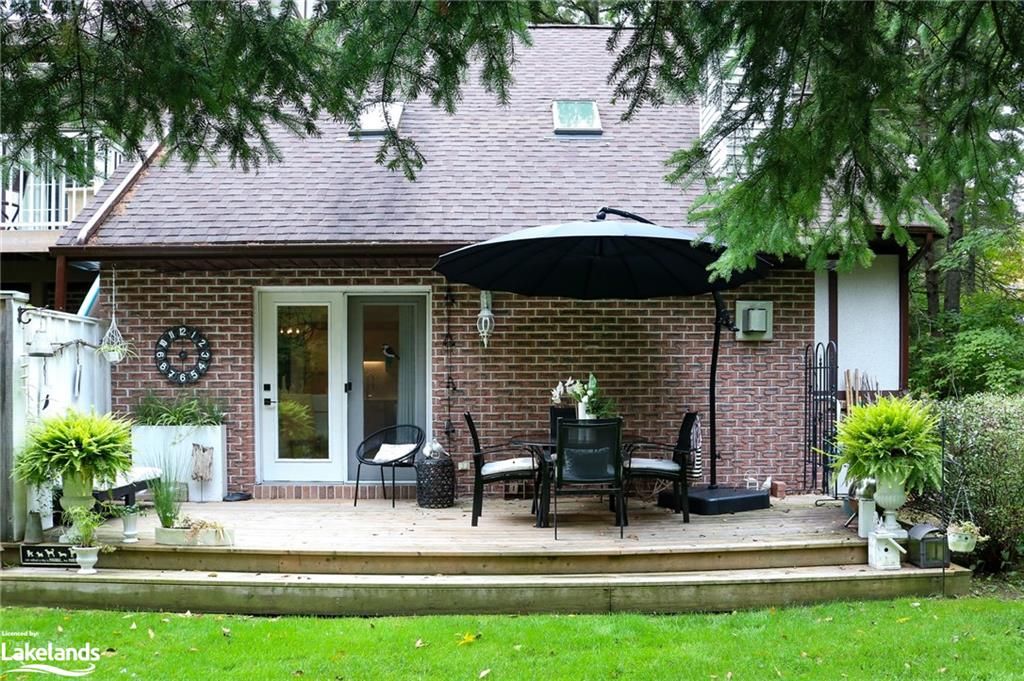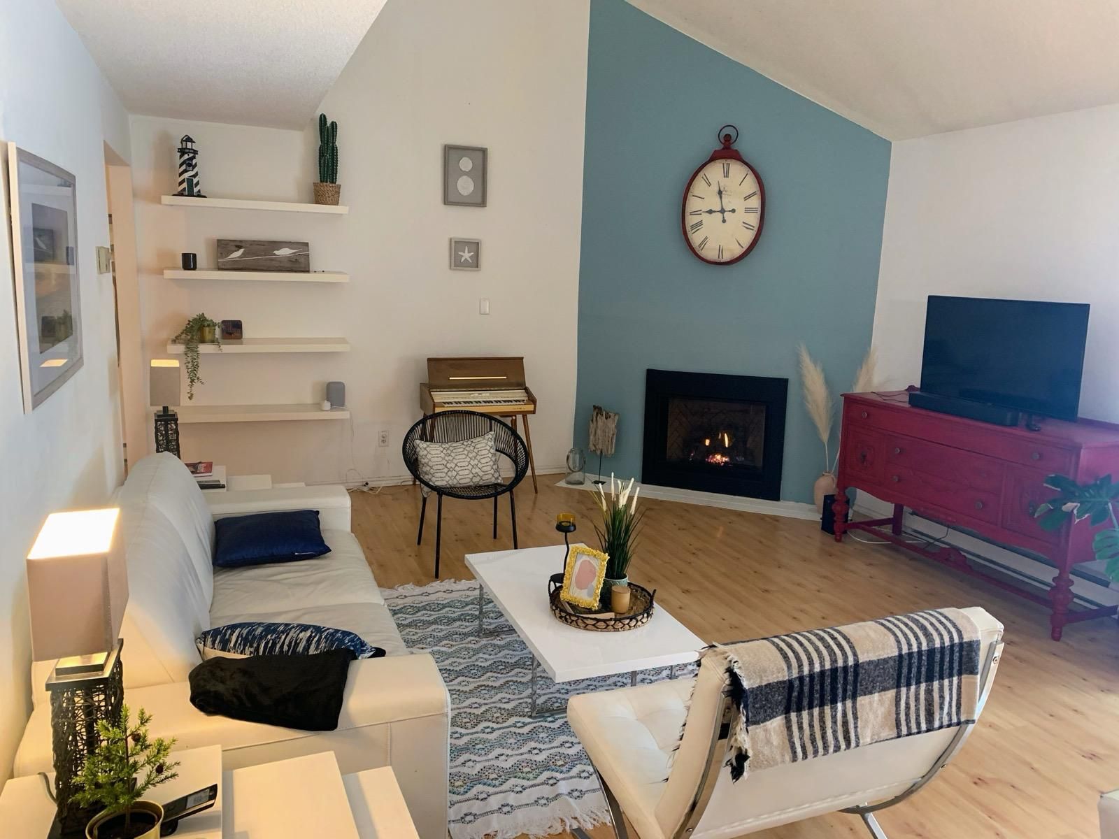 FURNISHED 2 BED 2.5 BATH! Extremely private end-unit bungaloft hidden in nature! Located in a quiet neighborhood, within walking distance to Allenwood Beach. Features include soaring ceilings in the living room, large gas fireplace, main floor master bedroom with ensuite and a free-standing soaker tub, plus a stunning loft style bedroom upstairs with an additional ensuite and a 3 piece washroom. The dining area opens onto a large deck surrounded by trees, nature, birds, animal sightings and ultimate privacy. An ideal place to enjoy everything outdoors, and only a half hour drive to ski hills. There is a storage area off the entrance, includes in-suite laundry, making this a perfect weekend retreat or year round home. Turn-key, all furniture included, available immediately.