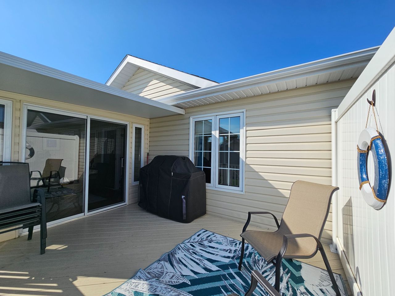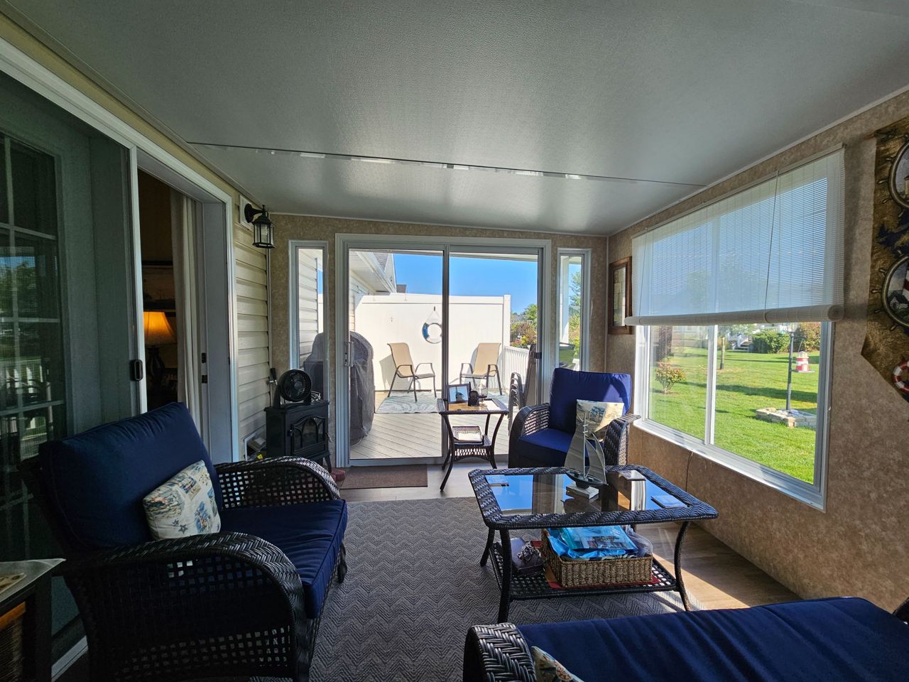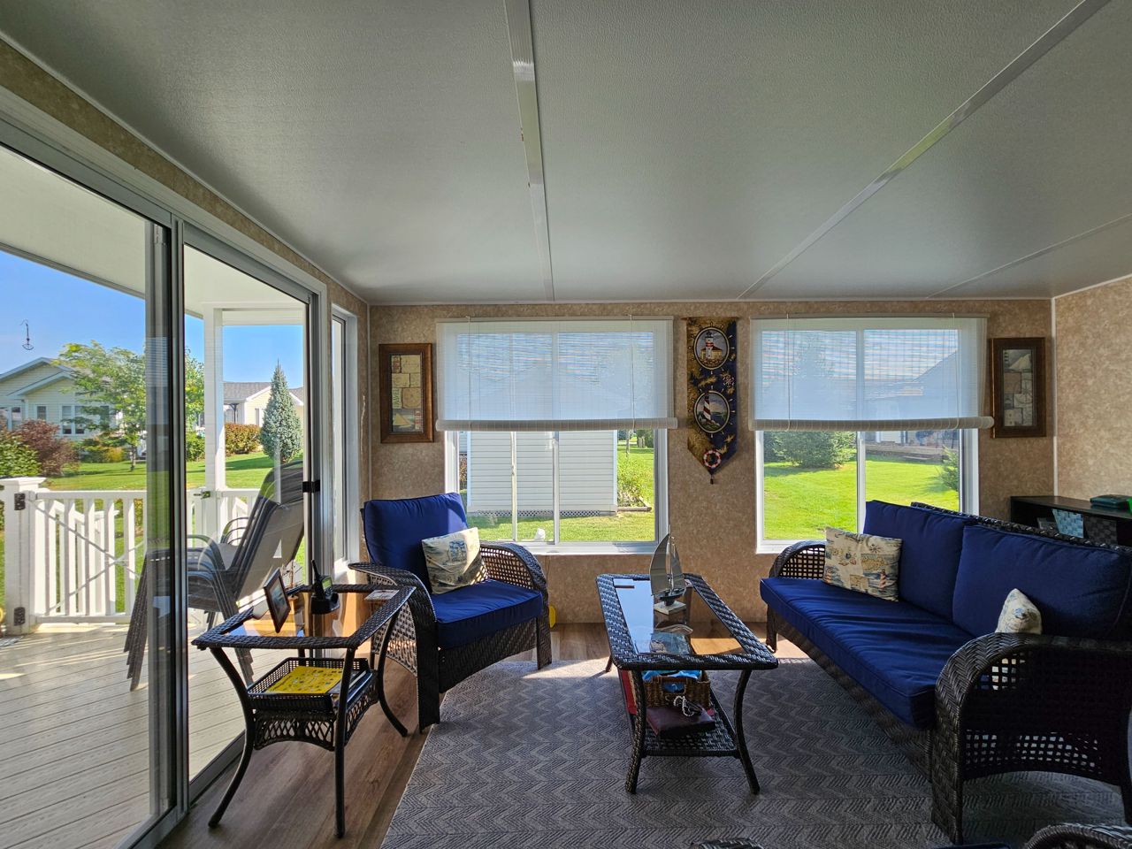 Welcome Home to 35 New York Ave! A Gem in Park Place Adult Living Community. This Moonstone "B" Model built on site has 2 bedrooms, 2 baths layed out perfectly, open concept living room, dining room and kitchen, framed by vaulted ceilings and pot lights. Beautiful kitchen with stainless steel appliances and large island as the the heart. Outside is landscaped with private space at the front and gated deck and 3 season sunroom with insulated flooring. Alternate power source system to operate furnace by a small generator and standby solar powered emergency lighting system. A great place to make your space! You will not be disappointed, come and see all that Parkbridge has to offer! Rec center, workshop, salt water pools indoor and outdoor, and community events. New fees: Rent $632.47 + Taxes for Lot $52.18 + Taxes for Structure $133.50 = $818.15/per month. Water and Sewer billed quarterly.