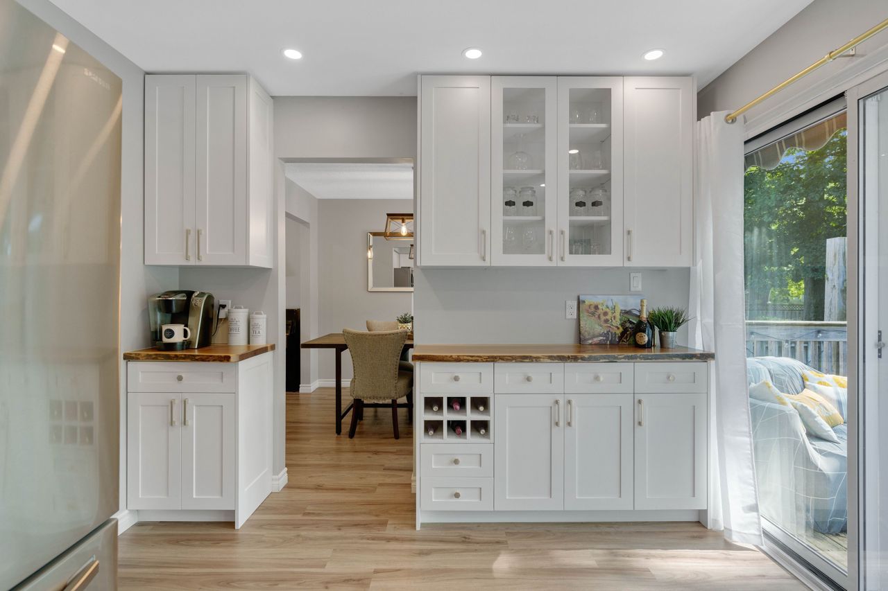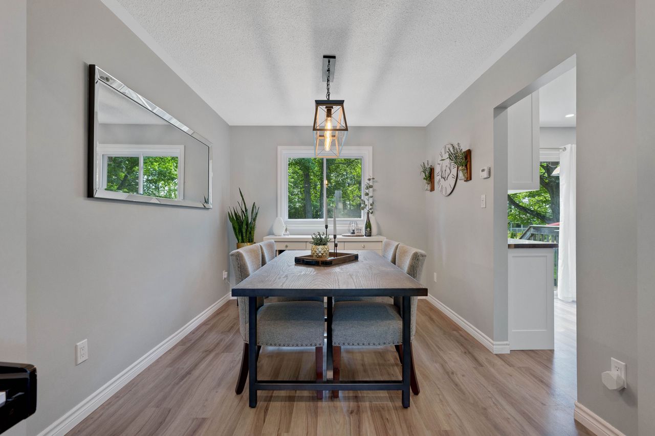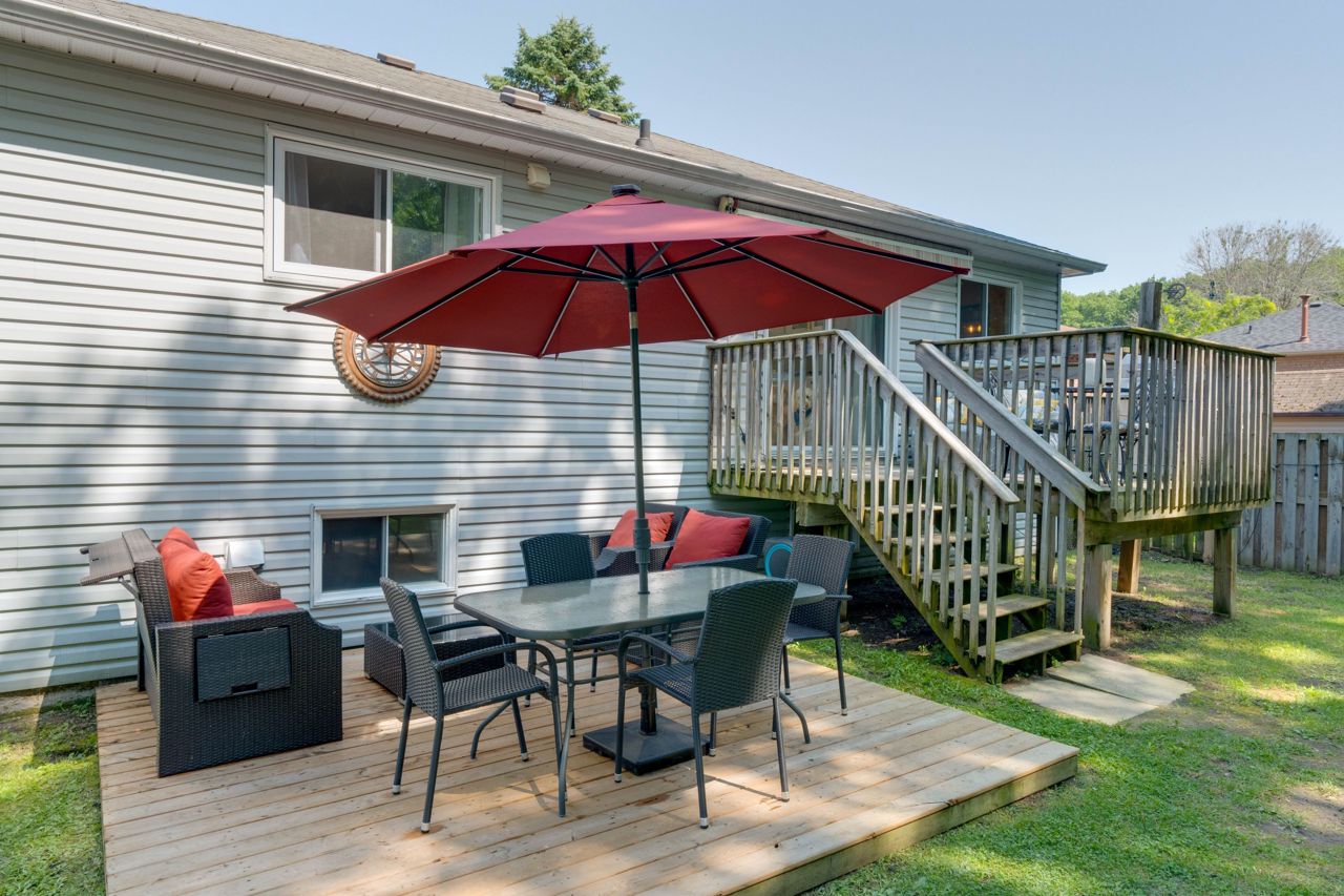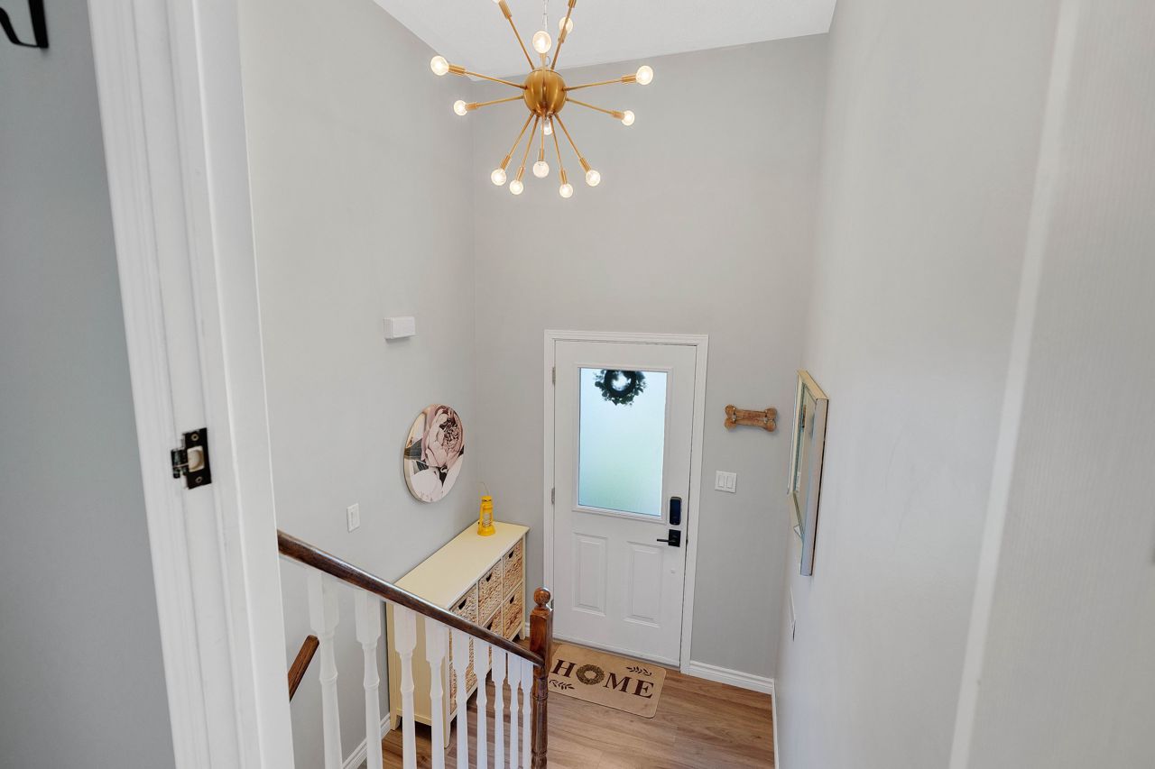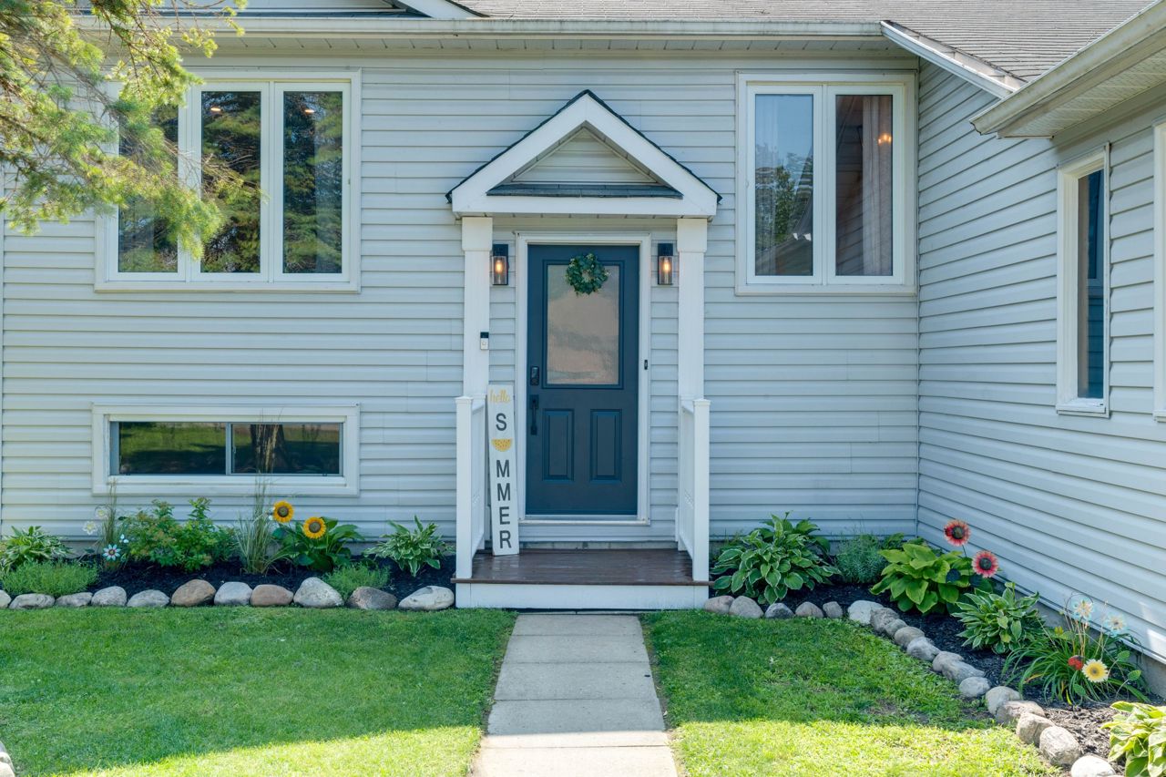 This charming elevated bungalow is located in a sought-after family-oriented neighborhood and combines modern comfort with classic appeal. It has 4 bedrooms, 2 full bathrooms, upstairs and downstairs laundry, and a fully finished basement, providing ample space for a growing family. The recently upgraded kitchen features a live edge coffee bar, new countertops, and appliances. The basement offers in-law potential or guest space with a bedroom, family room, laundry room, and a brand new 4-piece bathroom. The home includes central vacuum, forced air, natural gas heating, central air conditioning, and a water softener. The garage has a 20 amp plug. The backyard is private and fenced with a sun deck and awning, and there are beautiful walking trails nearby. The location is convenient, with shopping, dining, golfing, and a freshwater beach within walking distance, making it an ideal choice for families and nature enthusiasts.