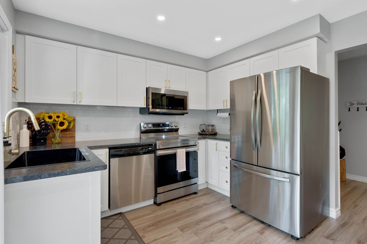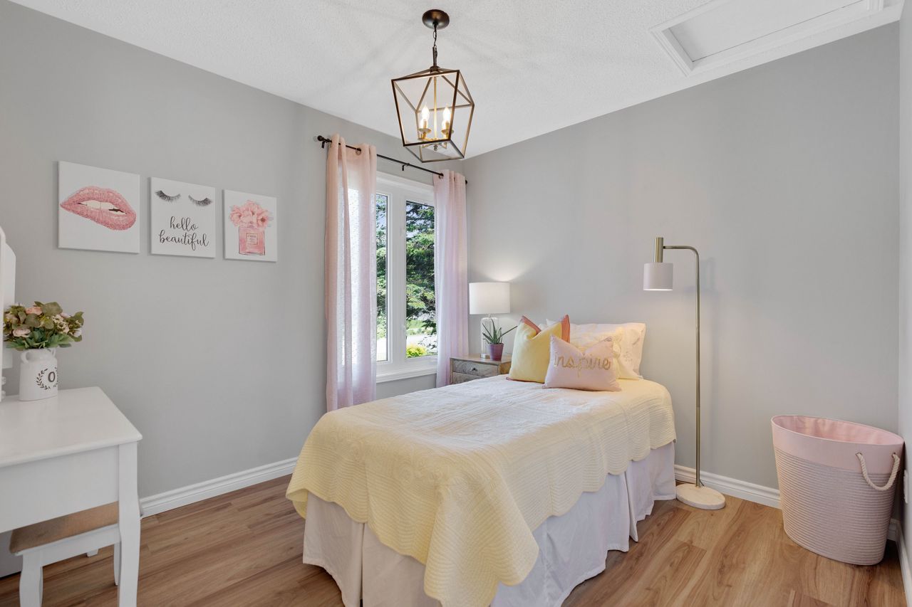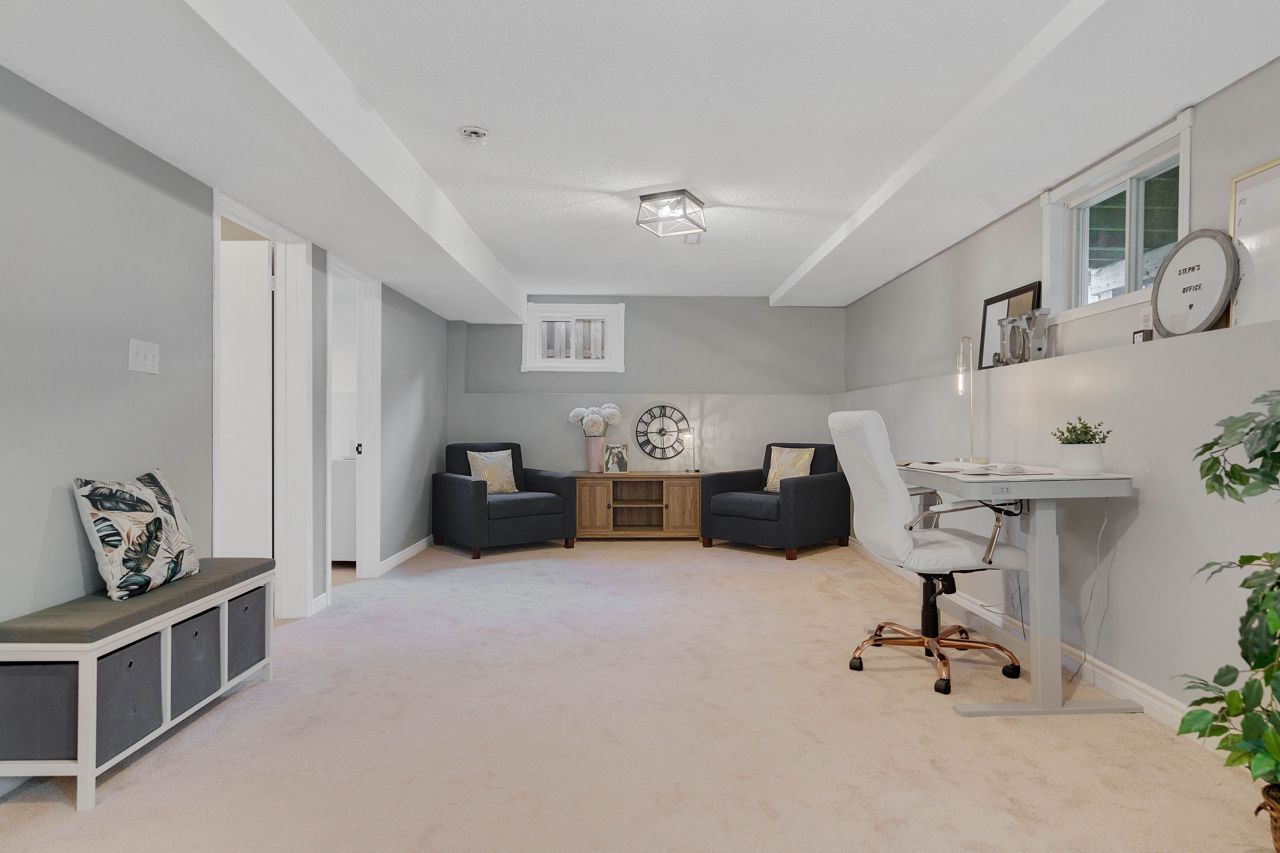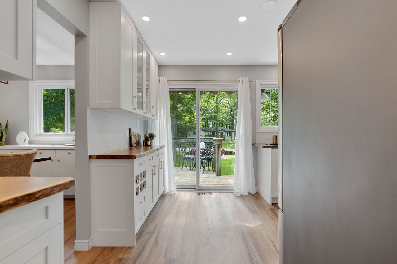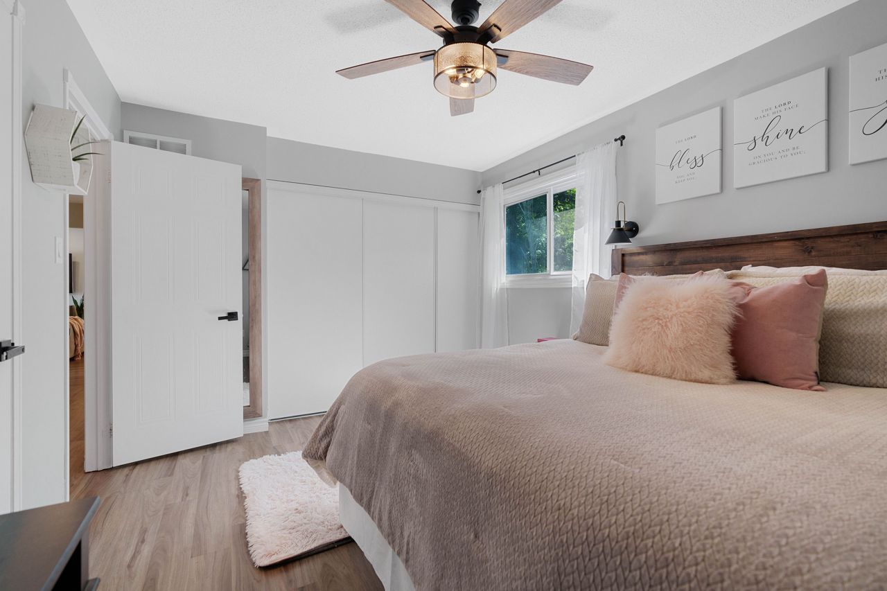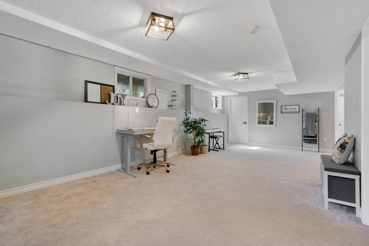 This charming elevated bungalow is located in a sought-after family-oriented neighborhood and combines modern comfort with classic appeal. It has 4 bedrooms, 2 full bathrooms, upstairs and downstairs laundry, and a fully finished basement, providing ample space for a growing family. The recently upgraded kitchen features a live edge coffee bar, new countertops, and appliances. The basement offers in-law potential or guest space with a bedroom, family room, laundry room, and a brand new 4-piece bathroom. The home includes central vacuum, forced air, natural gas heating, central air conditioning, and a water softener. The garage has a 20 amp plug. The backyard is private and fenced with a sun deck and awning, and there are beautiful walking trails nearby. The location is convenient, with shopping, dining, golfing, and a freshwater beach within walking distance, making it an ideal choice for families and nature enthusiasts.