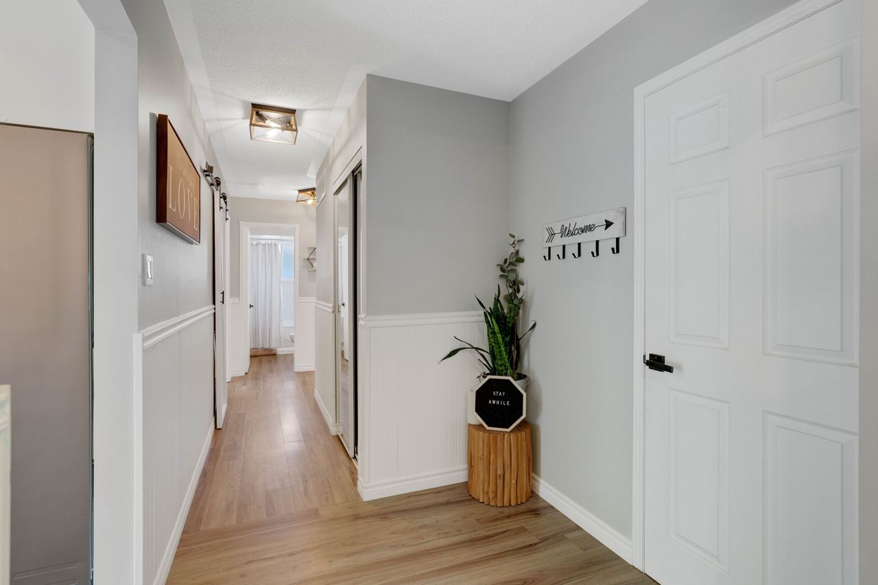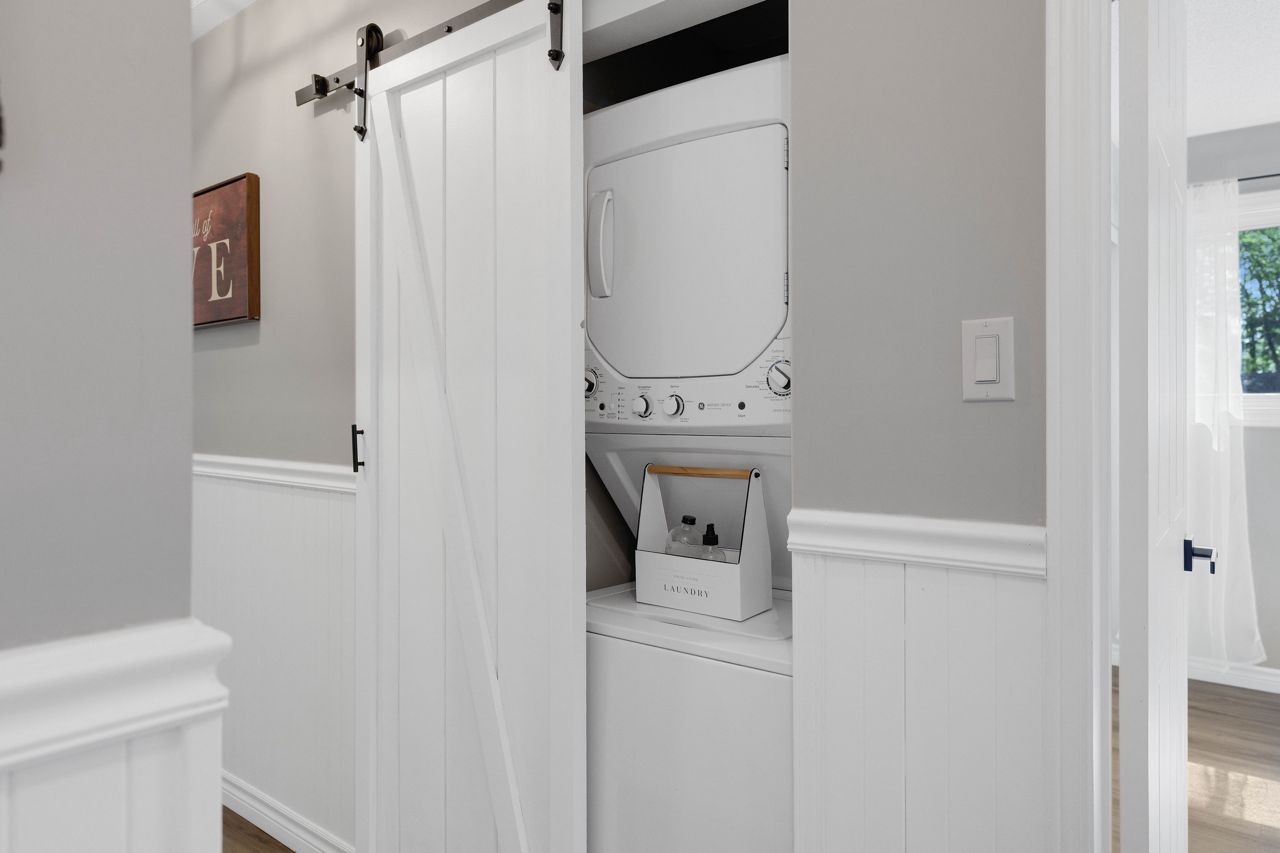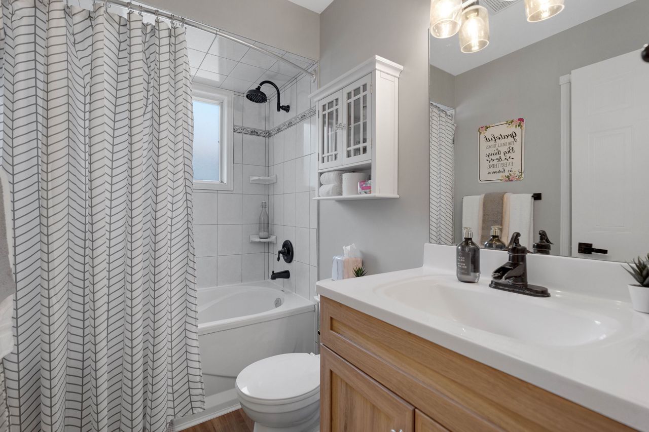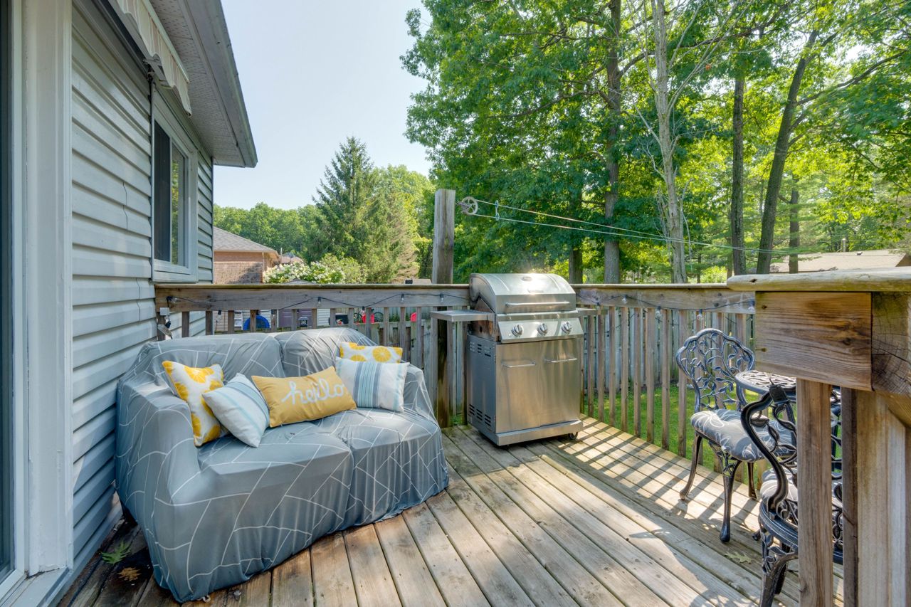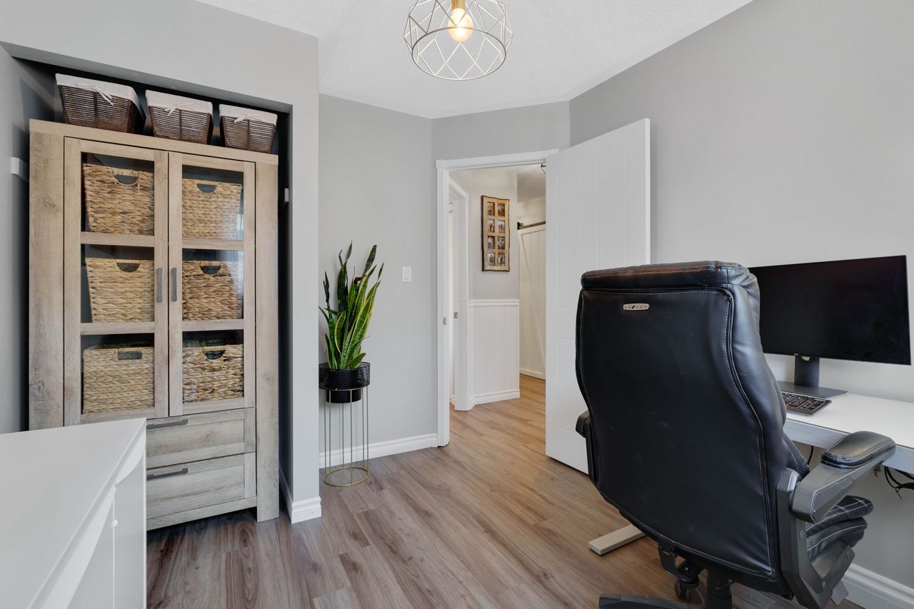 This charming elevated bungalow is located in a sought-after family-oriented neighborhood and combines modern comfort with classic appeal. It has 4 bedrooms, 2 full bathrooms, upstairs and downstairs laundry, and a fully finished basement, providing ample space for a growing family. The recently upgraded kitchen features a live edge coffee bar, new countertops, and appliances. The basement offers in-law potential or guest space with a bedroom, family room, laundry room, and a brand new 4-piece bathroom. The home includes central vacuum, forced air, natural gas heating, central air conditioning, and a water softener. The garage has a 20 amp plug. The backyard is private and fenced with a sun deck and awning, and there are beautiful walking trails nearby. The location is convenient, with shopping, dining, golfing, and a freshwater beach within walking distance, making it an ideal choice for families and nature enthusiasts.