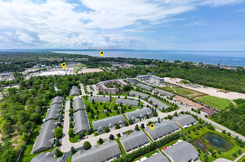 Welcome to Wasaga Meadows, an exclusive adult townhome community nestled in the breathtaking landscapes of Wasaga Beach. As you step into 85 Meadow Lane, you will discover the luxury and comfort of these meticulously designed bungalow townhouses, where every detail has been thoughtfully crafted to enhance your living experience. Inside you will be greeted by a spacious open concept layout that effortlessly combines the living room, dining room, and kitchen. The bungalow townhome features a generously sized primary bedroom with ensuite bath and closet, as well as a second bedroom to suit your needs for guests or as an office/hobby room. This bungalow also comes equipped with a front and back patio, gas fireplace, attached single car garage, and visitor parking. Wasaga Meadows is more than just a place to live; it's a thriving community where residents foster a sense of belonging. Come and tour this property today!Break down of fees for prospective tenants (as of July 20th, 2023).Rent - $647.14Taxes for the LOT- $44.00 (ESTIMATED)Taxes for the STRUCTURE - $118.15 (ESTIMATED)