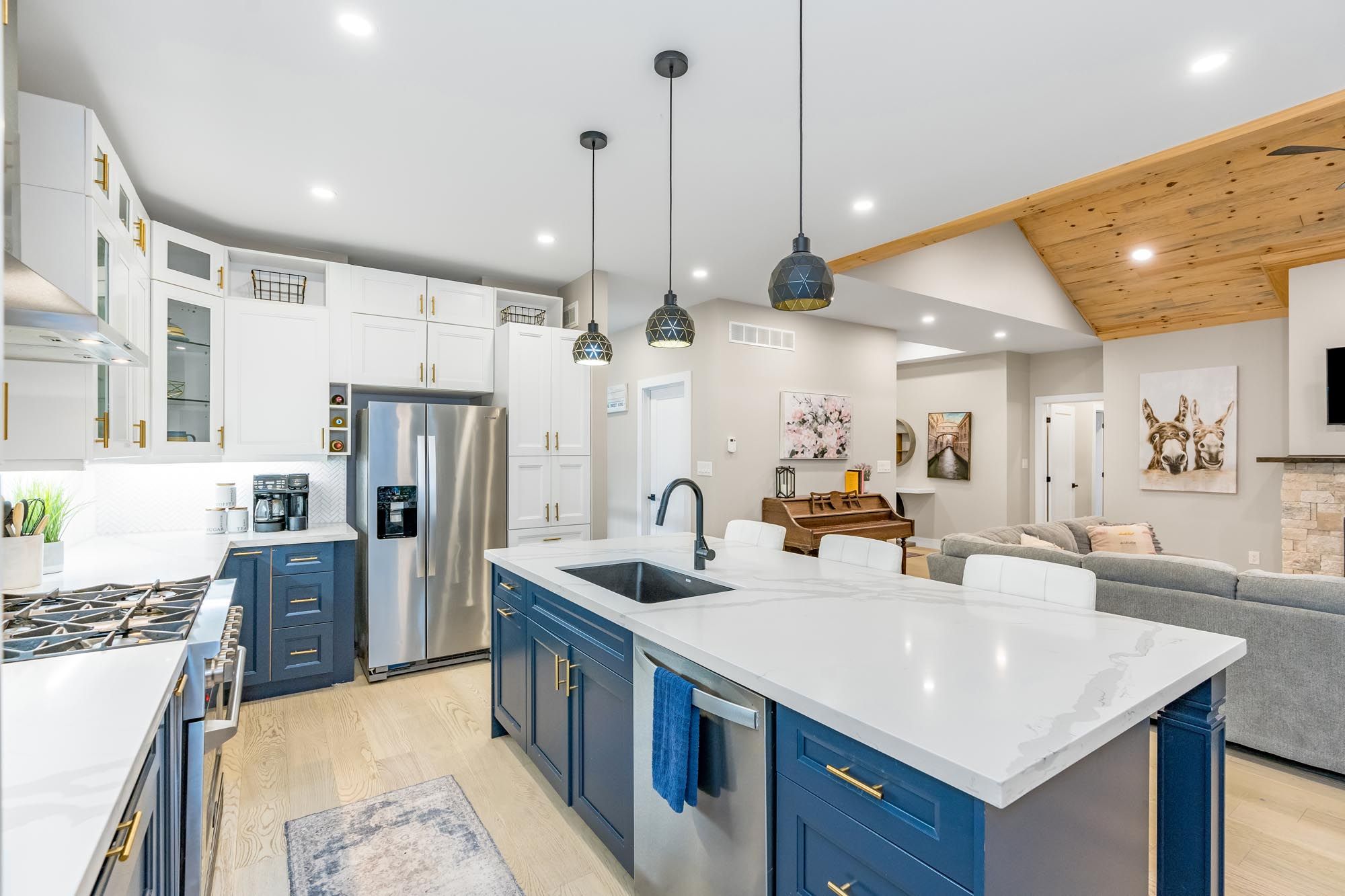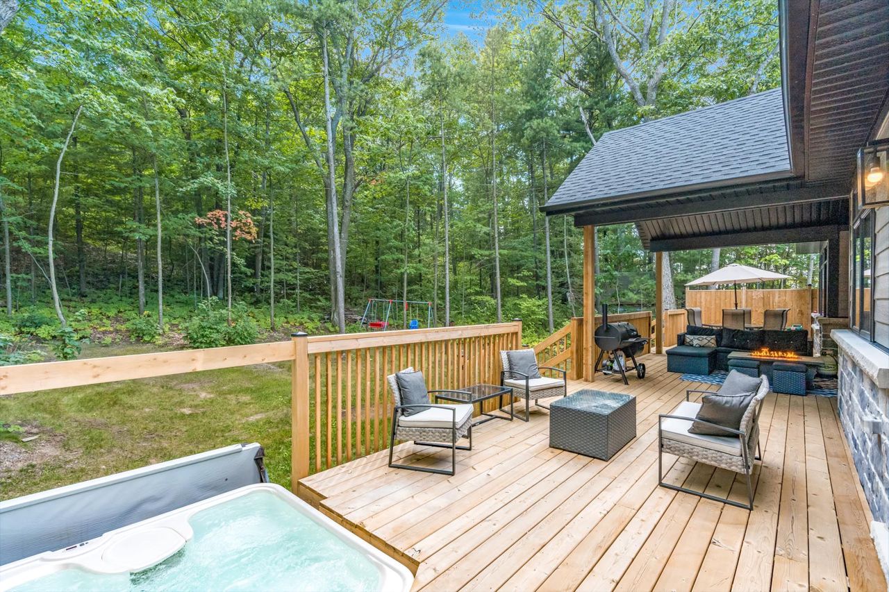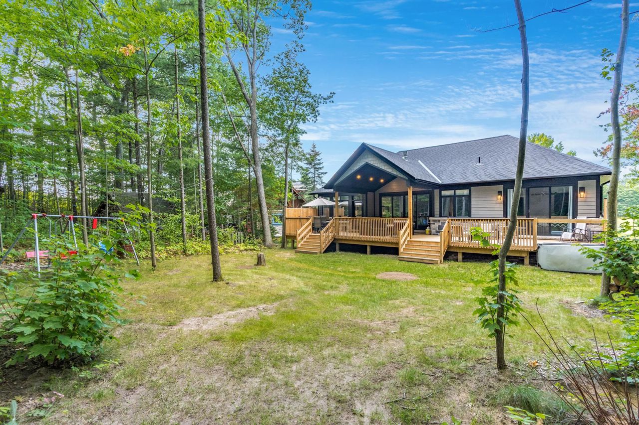 Top 5 Reasons You Will Love This Home: 1) Welcoming and custom-built executive bungalow located within the Wasaga Sands Estate 2) Sunlit layout featuring a chef's dream kitchen with an abundance of cabinetry, quartz countertops, a walk-in pantry, and an 8’ x 4’ breakfast bar island 3) Cozy living room with a tongue and groove ceiling, a gas fireplace, large windows, and sliding glass doors leading into the backyard 4) Hosting three main-level bedrooms, three bathrooms including a 5-piece ensuite, and an expansive 53-foot rear deck with a covered portion featuring a tongue and groove vaulted ceiling reaching the height of 13 feet, enhanced by recessed lighting 5) Spacious 3,728-square-foot, fully finished home with a triple-car garage nestled on a 100’ x 200’ lot with mature trees and backing onto a private 10.9-acre estate. 3,728 fin.sq.ft. Age 2. Visit our website for more detailed information.