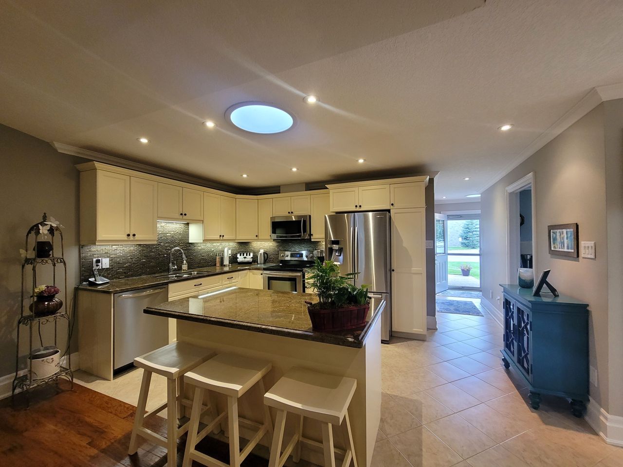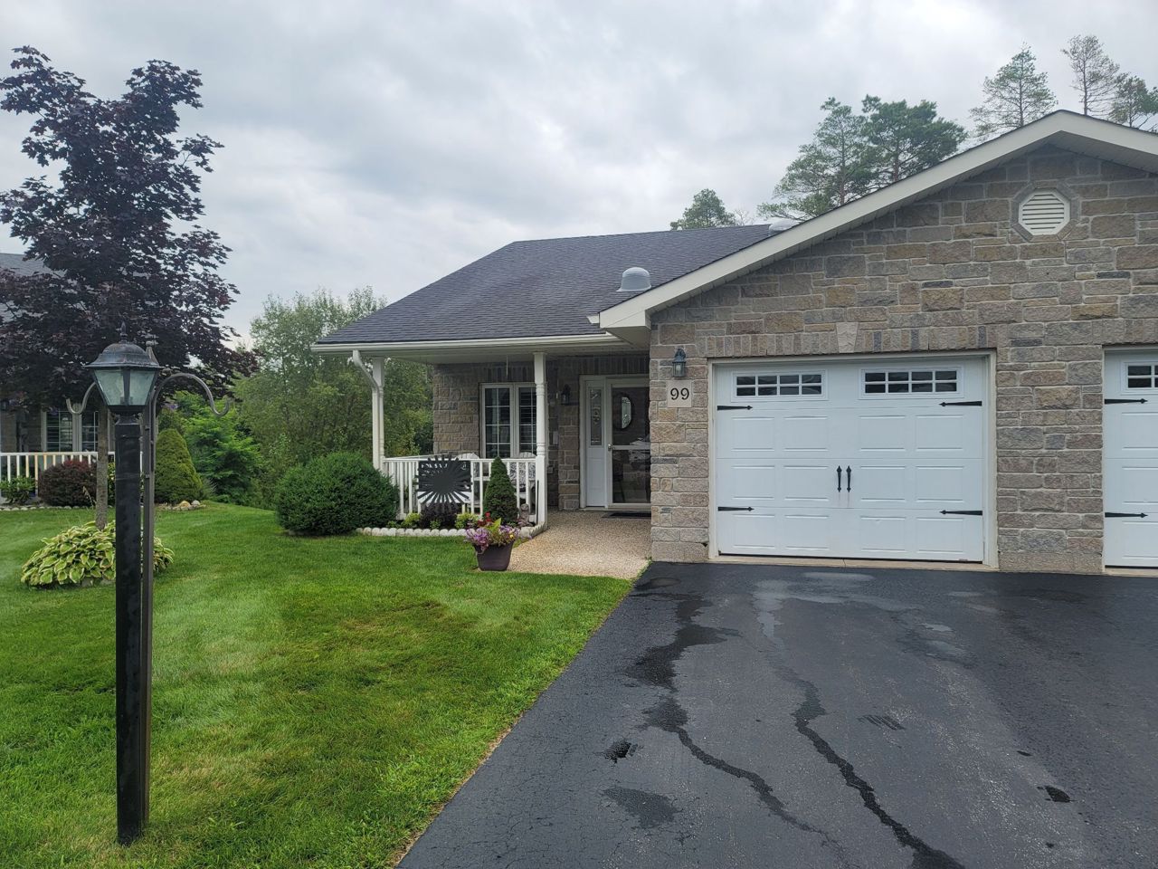 Welcome to 99 Greenway Drive, in Country Meadows a Parkbridge Retirement Community! This lovely Yorkshire model backs onto the private community 9 hole golf course, creating the most picturesque views from the 3 season sunroom and walk out from basement! Completely open concept kitchen, dining room and living room makes for easy entertaining. Vaulted Ceilings, Stainless Steel appliances, hand-scraped engineered hardwood floors and gas fireplace are just some of the features of these rooms. Primary bedroom features separate 3 pc ensuite and walk in closet. Lower level is more added living space with a third bedroom, 3pc bath, large family room with walk out and tons of storage! Come and see everything Parkbridge has to offer, saltwater pools, golf, trails, woodshop and of course Community! New fees: Rent & Maintenance $743.27 + Tax (Structure) $168.79 + Tax (Lot) $35.05= $947.11/per month approx.