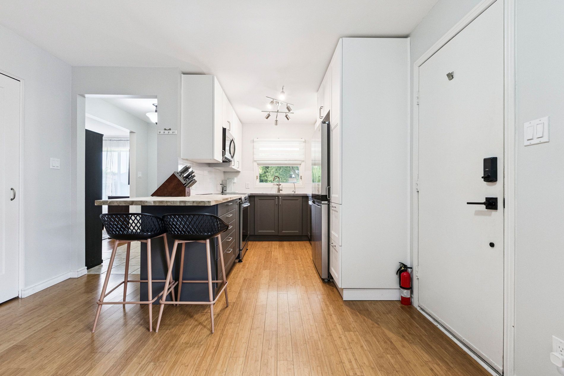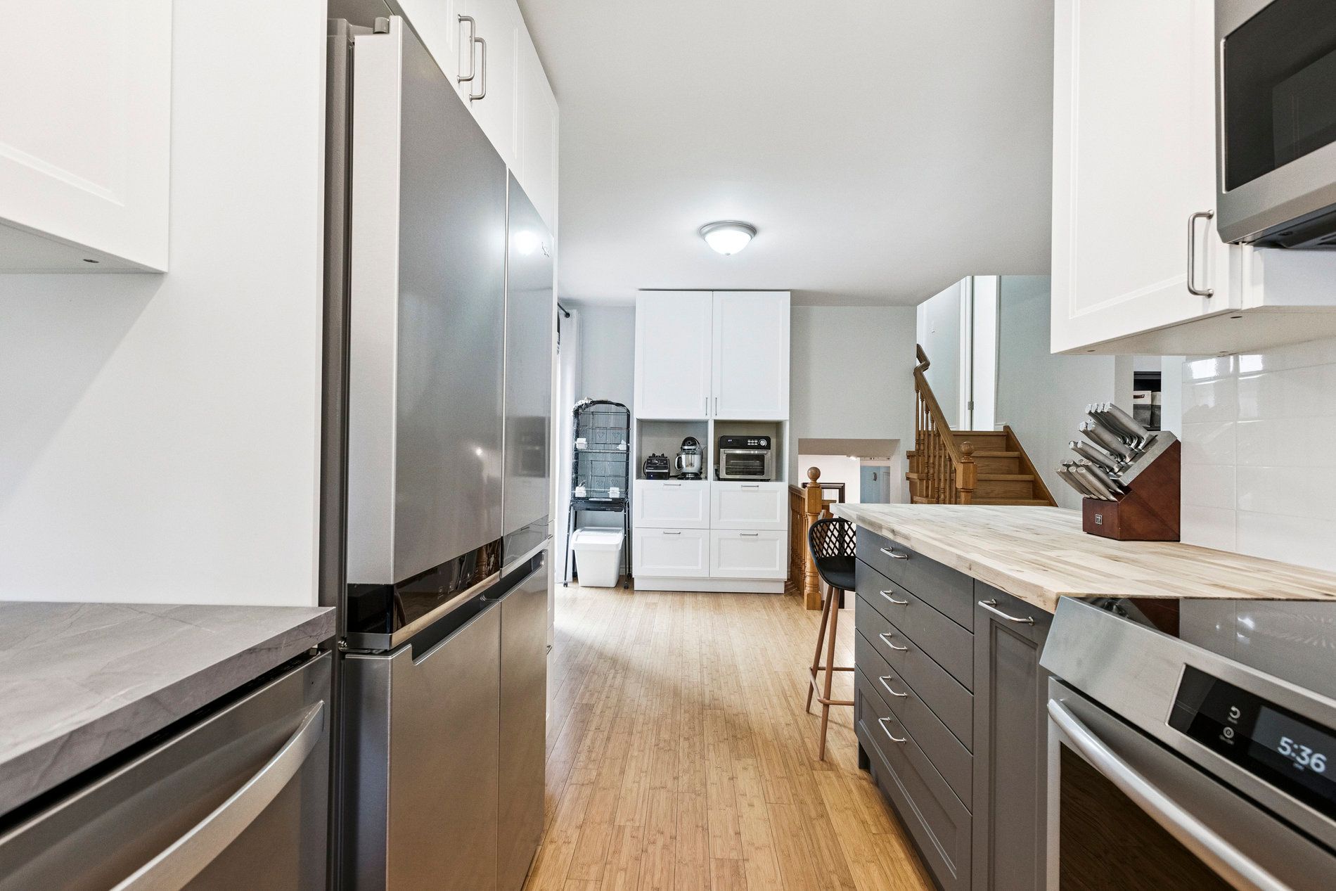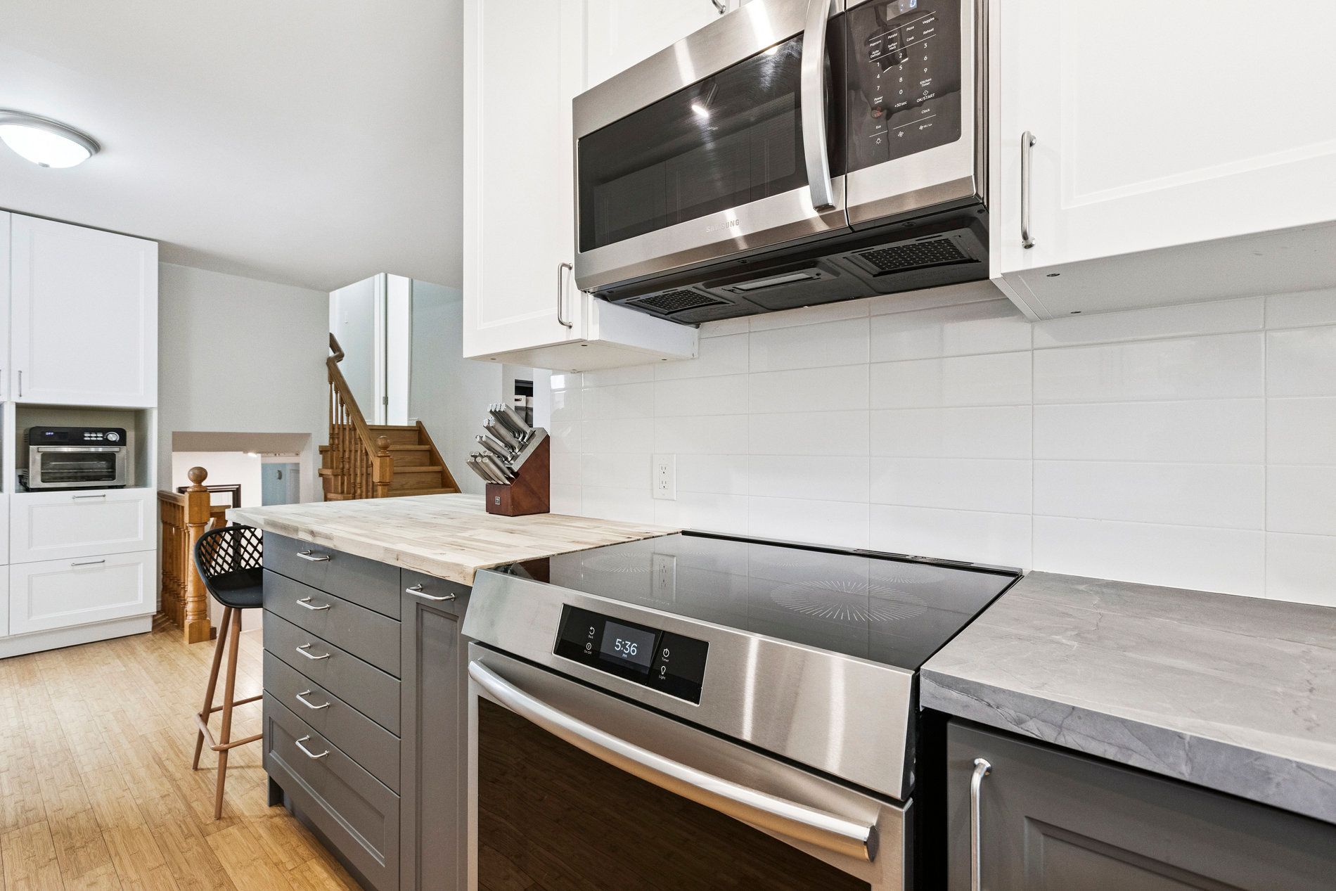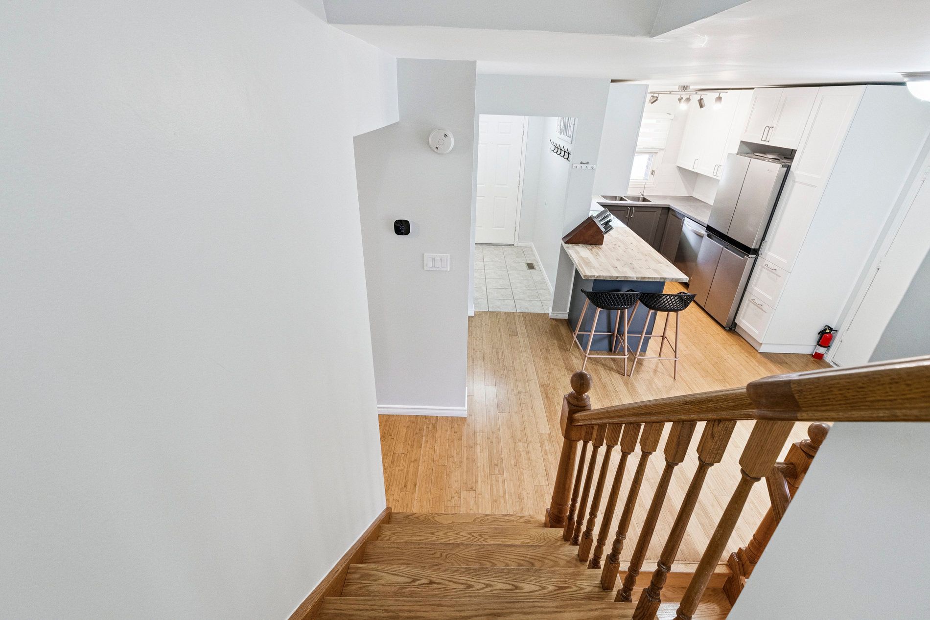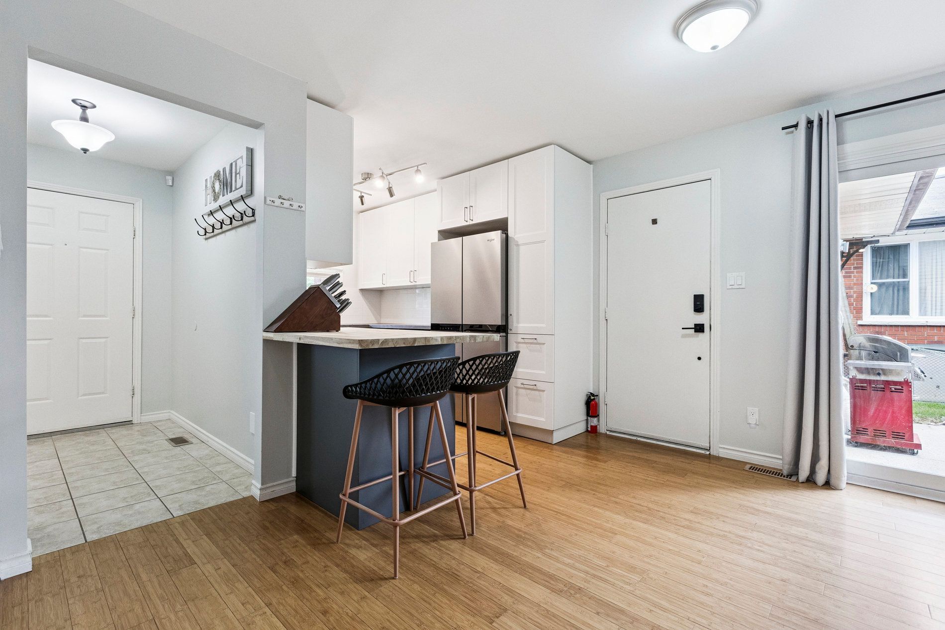 主楼层采用开放式客厅与餐厅一体化设计。2023年全新改造的现代厨房令人惊艳,配备双色定制橱柜与全新不锈钢电器,提供充足操作台面,并设有通往后院和车库的出口。上层包含三间宽敞卧室及2023年翻新的四件套浴室。