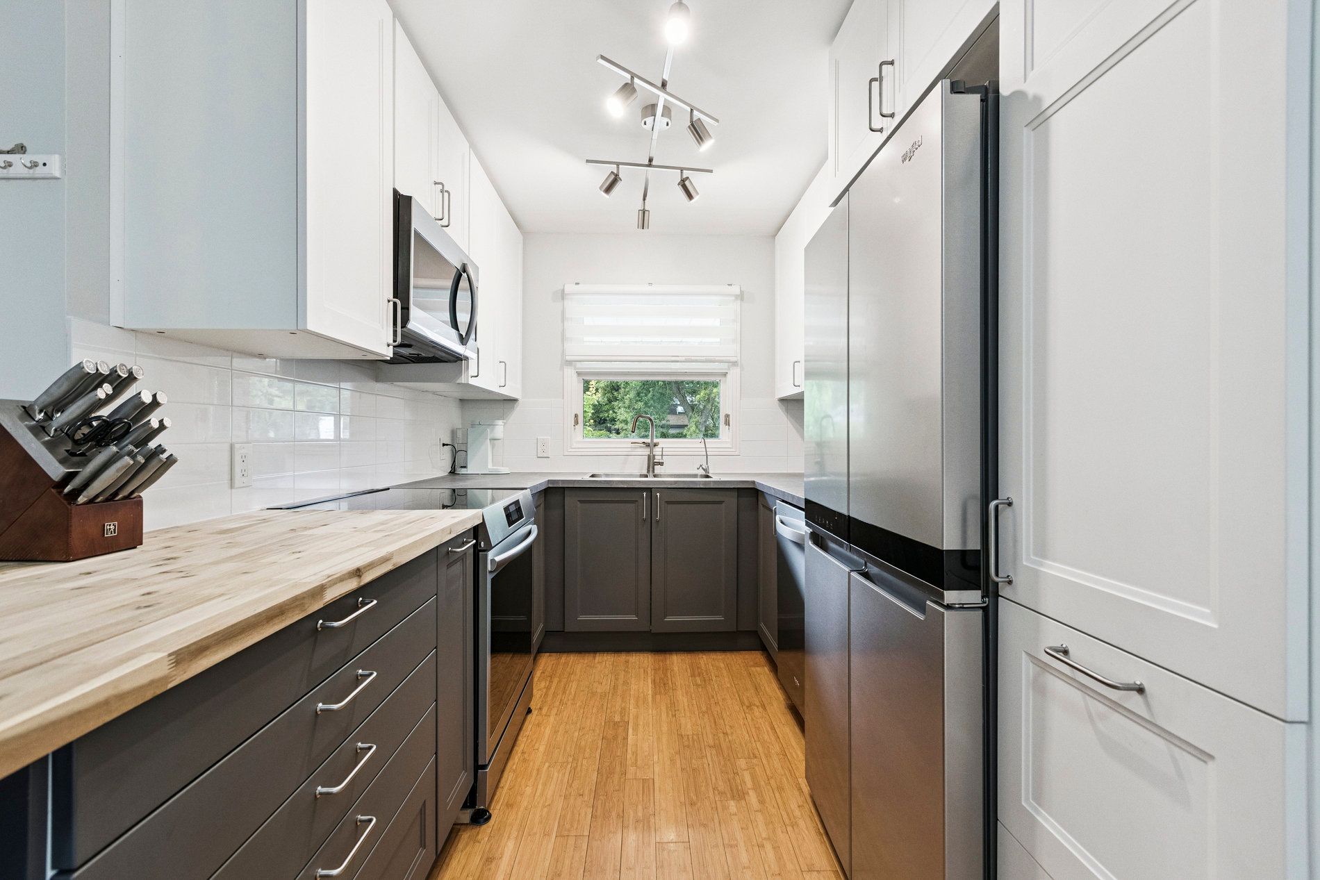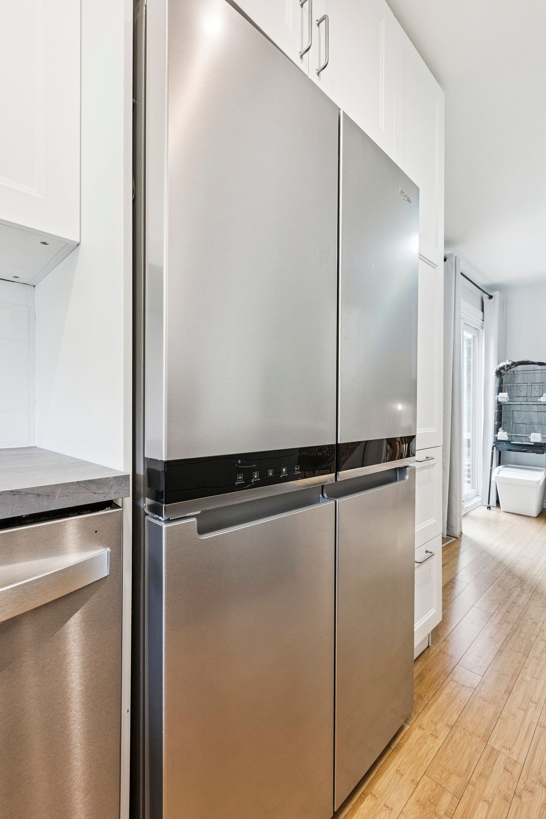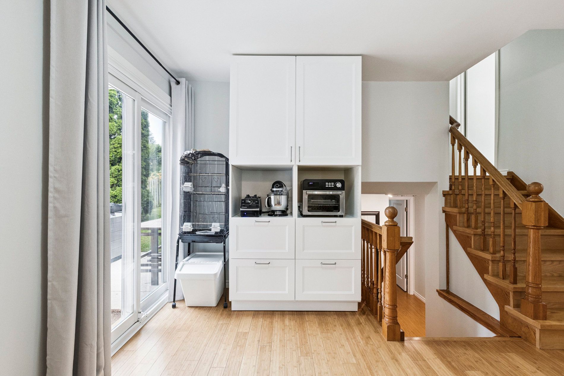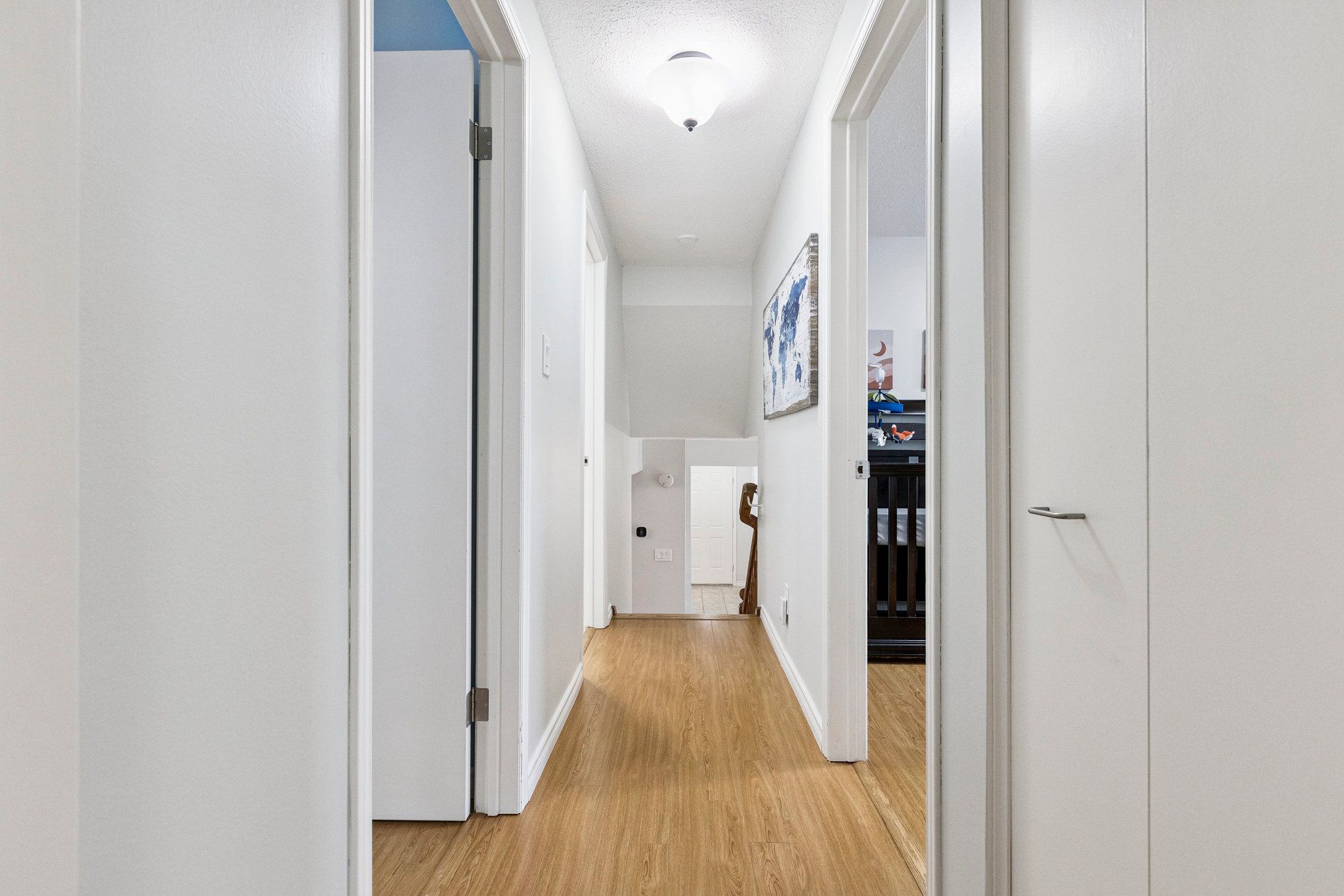主楼层采用开放式客厅与餐厅一体化设计。2023年全新改造的现代厨房令人惊艳,配备双色定制橱柜与全新不锈钢电器,提供充足操作台面,并设有通往后院和车库的出口。上层包含三间宽敞卧室及2023年翻新的四件套浴室。