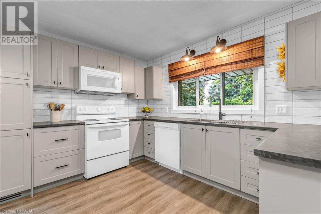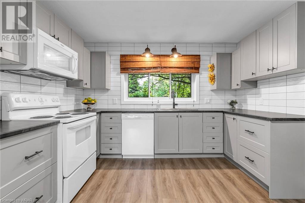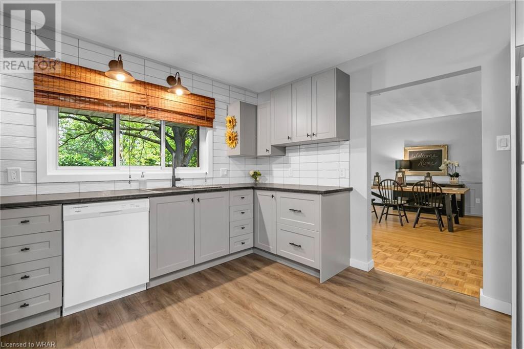 Great value! All brick bungalow in conveniently located Lincoln Heights featuring mature treed lots where pride of ownership is evident. Close to amenities, shopping, transit, schools and the vibrant Uptown Waterloo. This solidly built home has 3 + 1 generous sized bedrooms and the master bedroom has 3 pc ensuite, hardwood & vinyl flooring. Newly renovated kitchen, bathrooms, newer furnace, A/C (2021), roof, windows, attic insulation upgrade to R50 and hot water heater. This home could be duplexed (split entry through side door) or converted to an in-law set up in the basement. Plenty of parking for 4 cars and a single detached garage. Beautiful and private completely fenced back yard with interlock patio makes great use of outdoor entertaining and dining. Don't miss out on this fabulous family home or investment opportunity. Call listing agent for more details. (id:22211)
