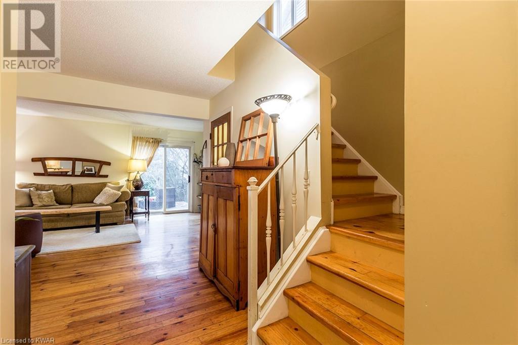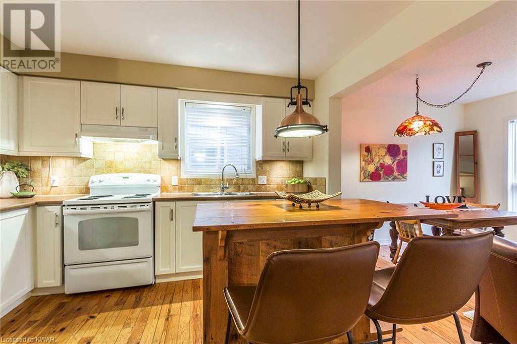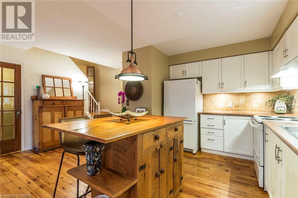 Nestled on a quiet cul-de-sac this 3 bedroom 3 bathroom home is the perfect hybrid of rustic and modern. Only steps away from Laurel Creek conservation area with its many trails, this beautiful 2 storey home in the desirable neighbourhood of Laurelwood is not one to be missed. This gorgeous and immaculately maintained home has many features such as the open concept layout complete with custom pine hardwood flooring that runs throughout the spacious and bright living room and leading you into the warm and inviting kitchen. Own a piece of local history with the stunning gas fireplace built out of reclaimed brick from the original Seagram museum. The custom pine hardwood flooring continues to the second floor where you are met with three bright bedrooms including the master suite complete with a charming bespoke window allowing the room to be filled with natural light as well as a large walk in closet and direct access to the spacious 4 piece bathroom. The fully finished basement is home to a large rec room and a 2 piece bathroom creating the perfect area to spend a quiet evening watching a movie or entertaining family and friends. Sliding glass doors from the living room lead you out to a fully fenced private backyard where you can enjoy summer evenings on your deck listening to the sounds of nature spilling over from the conservation area. Access to excellent elementary and secondary schools in the area and only steps away from the Stork YMCA, both universities, public transit and minutes to shopping and light rail transit. This home has everything you could ask for. Don't miss the opportunity to view this incredible property. Book your appointment today!! (id:22211)
