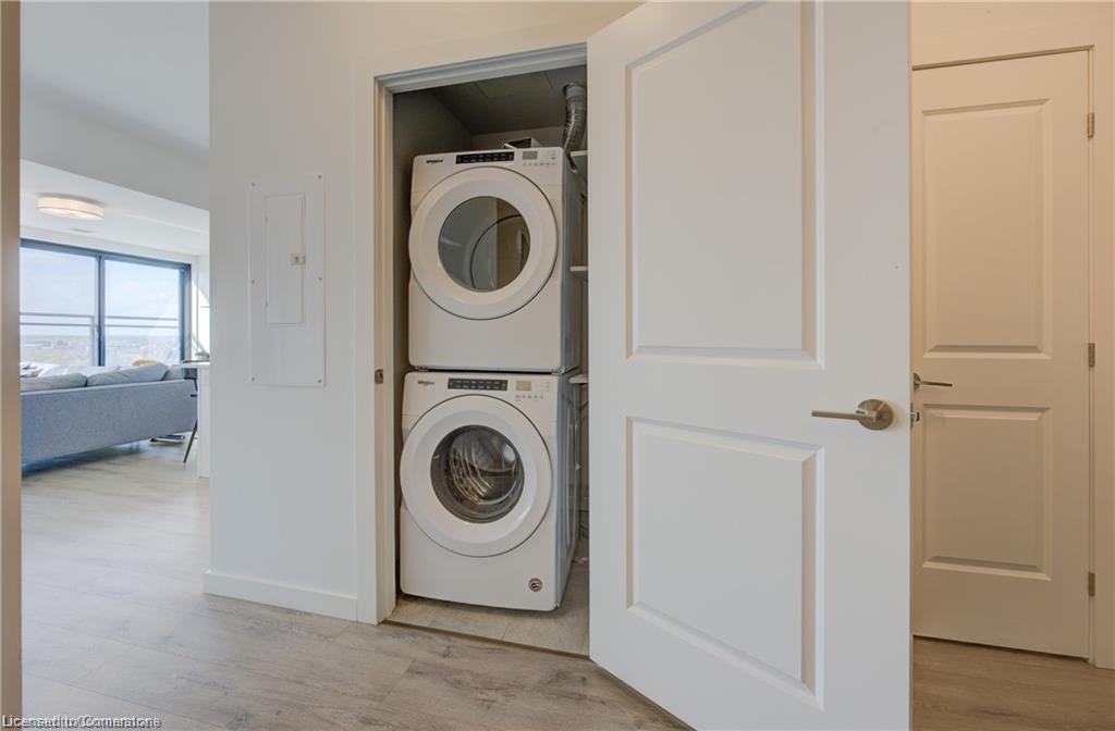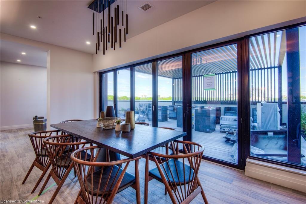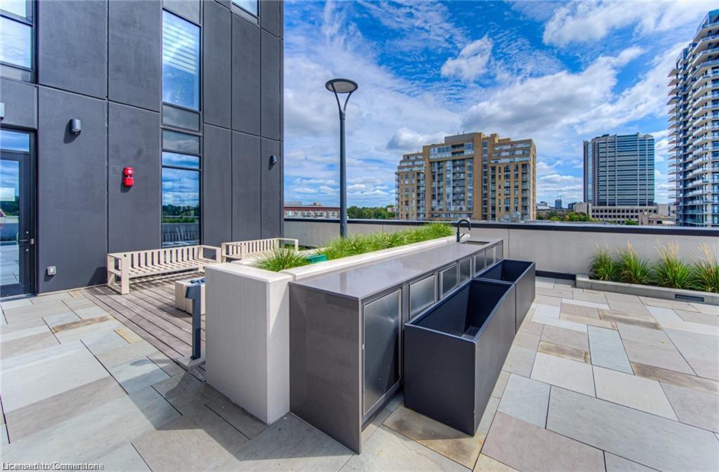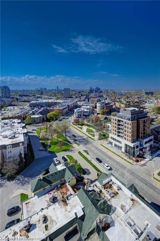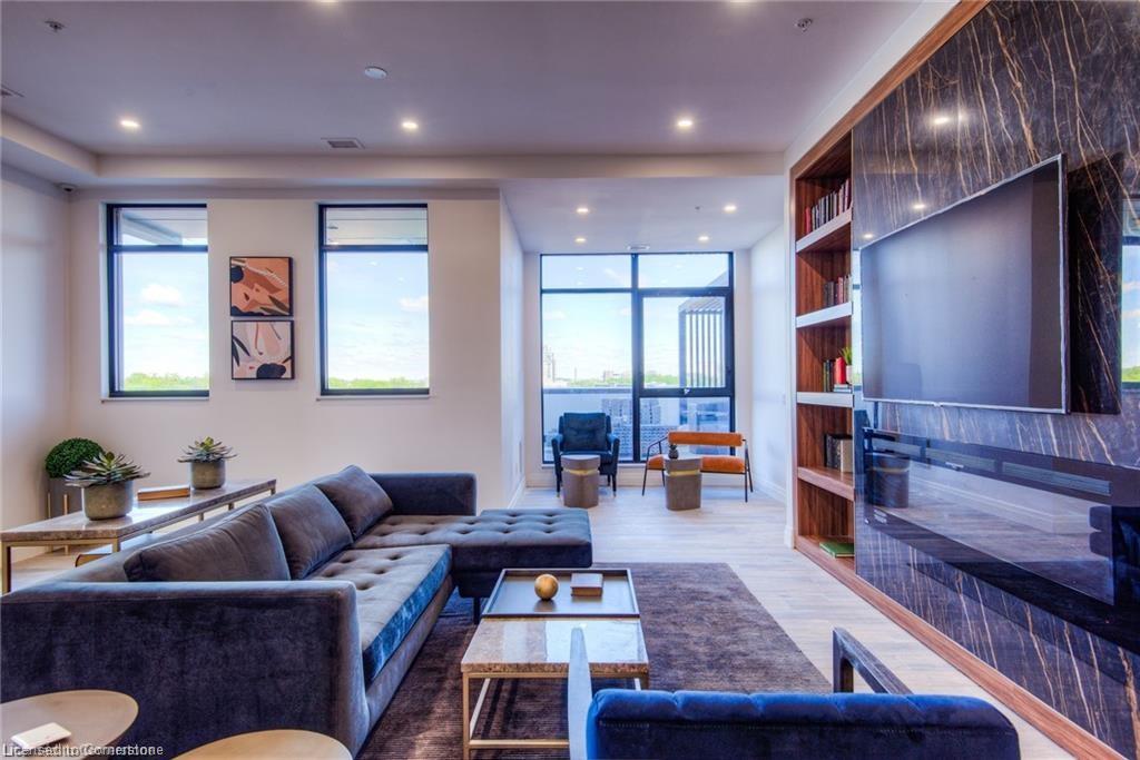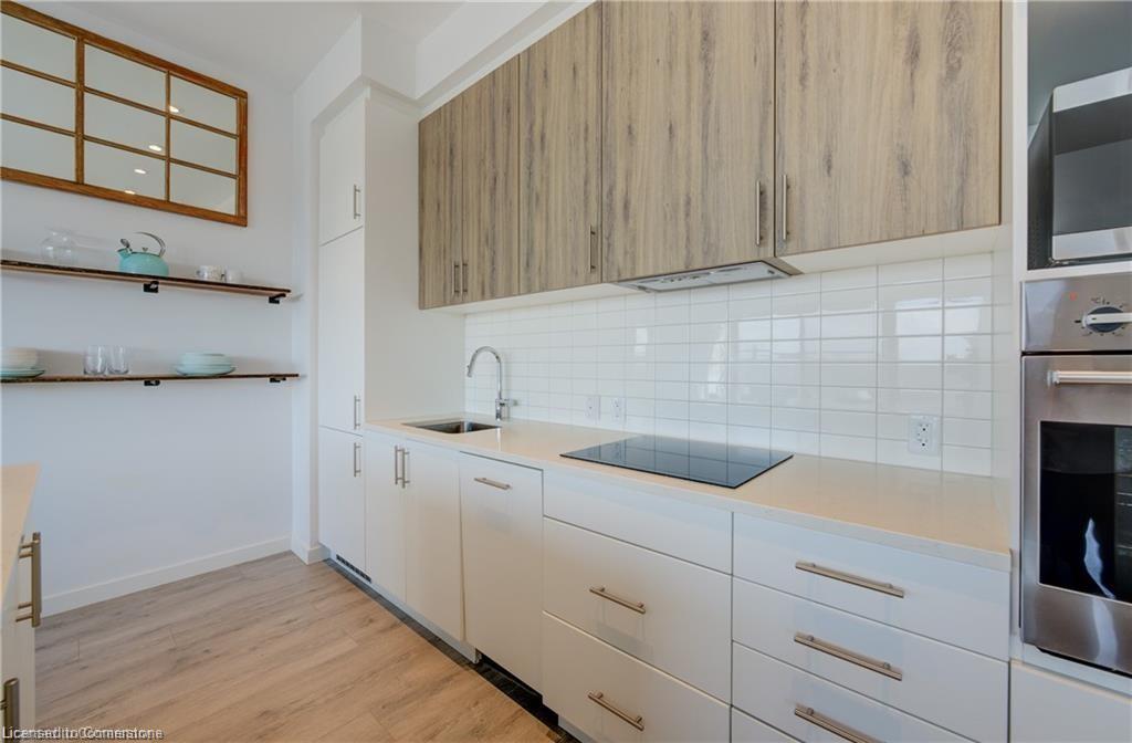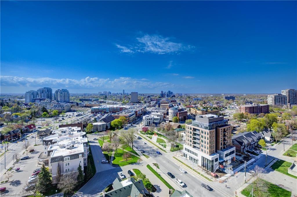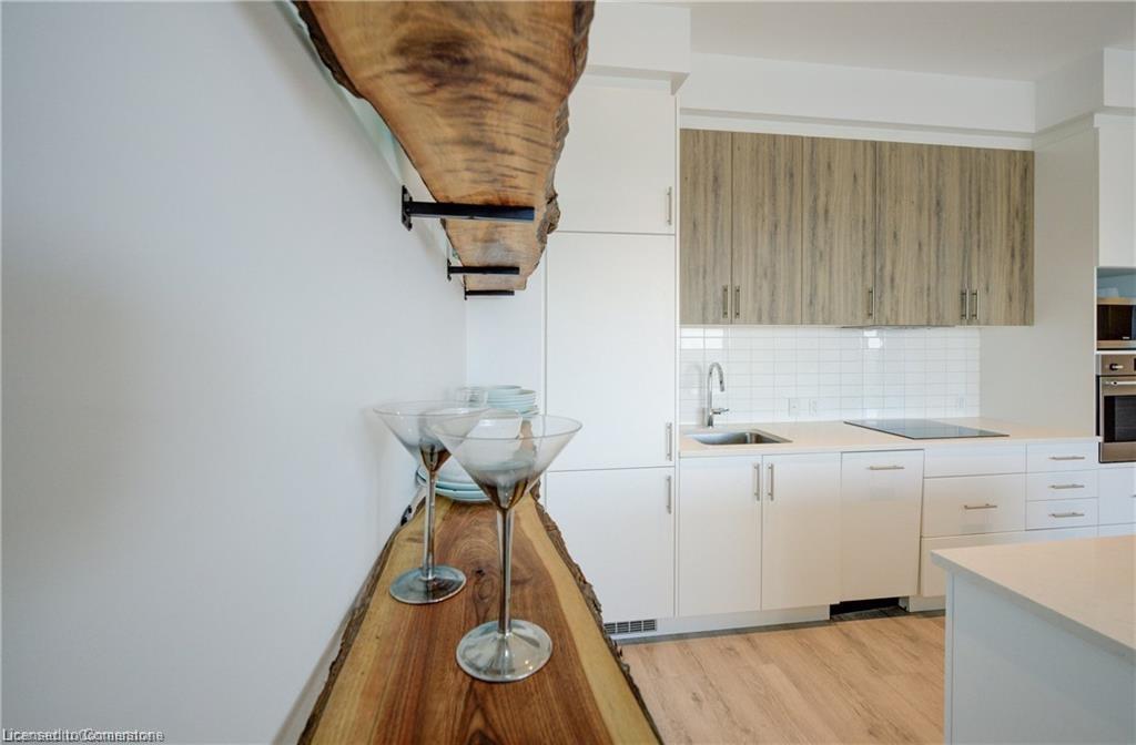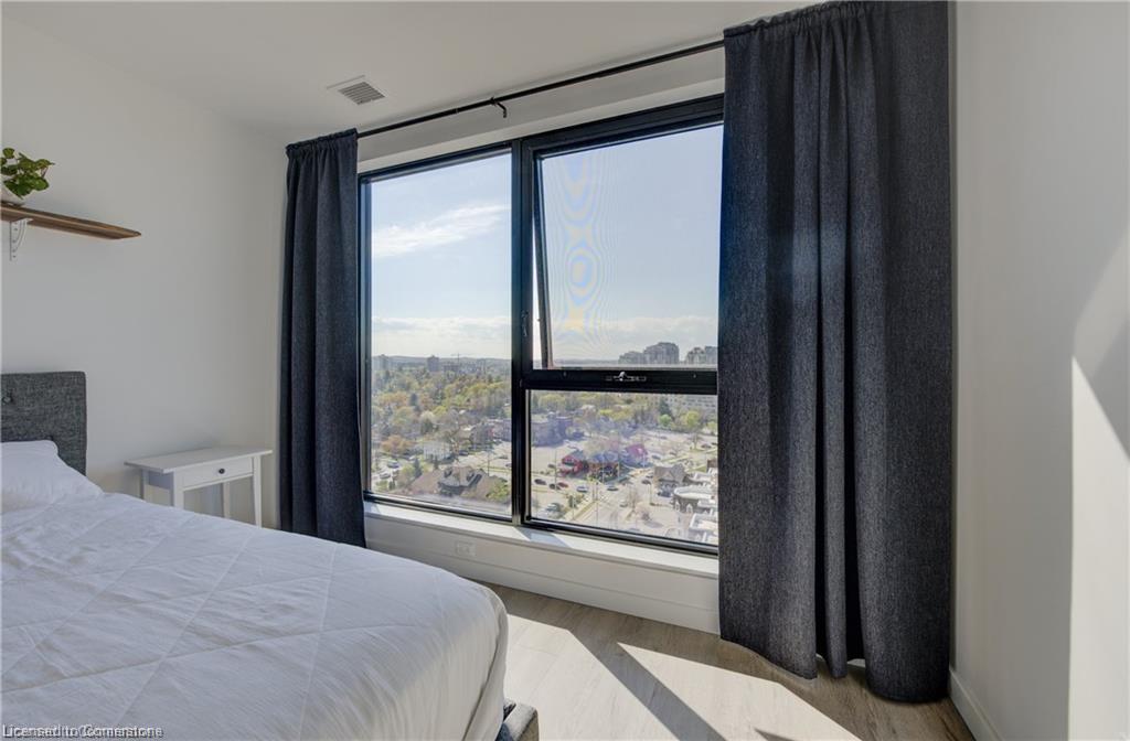 Investors, Parents of University Kids, Recently Separated/Divorced, as well as New Canadians, Company Employees or Executives will love this FULLY FURNISHED 836 Square Foot Suite at CIRCA 1877. Yes, the right offer gets you most furniture, dishes, cookware, housewares…just move in! Suite can be purchased unfurnished, too! Expect to be impressed by the high ceilings, upscale finishes, amenities and details in this tastefully appointed 1 bath, 1 bedroom + den suite. Luxury vinyl plank throughout. Open concept kitchen features elegant dual-tone cabinetry, subway tile backsplash, panel fridge-freezer, wall oven, cooktop set in quartz counters, plus matching island top with eat-at breakfast bar. One-foot+ (16 inch) taller ceiling height in the kitchen and den areas adds to the bright, airy feeling. Oversized floor-to-ceiling windows and Juliette balcony afford amazing views of the skyline, treetops, and Uptown Waterloo—sunsets included. Custom built-in cabinetry and desktop in den area create an ideal work-from-home space. Walk-in closet serves the bedroom. Luxurious 3-piece bath with tasteful tile and glass shower. Just off the hallway are stacked laundry units. Owned garage parking space, plus owned storage locker. Short walk to boutique shops, vibrant restaurants, Vincenzo’s, and ION LRT stops. Iron Horse Trail nearby for biking. Unrivaled amenities include: rooftop Terrace; sky view Pool; outdoor BBQ area and Fire Tables; Co-Working Space; Indoor Entertainment Lounge with reading area, bar, seating of all types; Practitioner’s Room; Fitness Studio; Indoor/Outdoor Yoga Studio; WiFi building-wide; Bike Room. The hospital is nearby. Short term rentals like Airbnb are permitted at this unit as per condo declaration, and building does not require city rental license! Suite 1505 at 181 King South truly promotes a lifestyle or investor profile without compromise! Why not purchase with a friend or parent with adult child to share the cost and the value? Photos from May 2024.