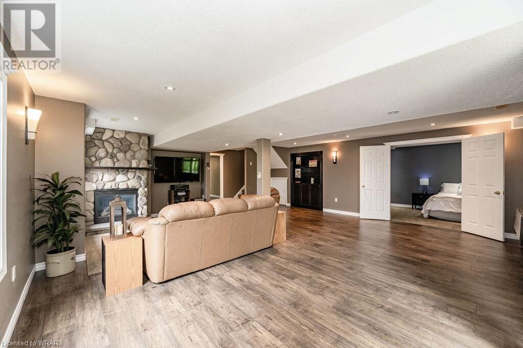 This one checks ALL the boxes! PRIME LAURELWOOD LOCATION! Executive Bungalow with over 2270 square feet of living space situated on COURT, BACKING ONTO GREEN SPACE, WALKOUT BASEMENT, MAIN FLOOR LAUNDRY! Perfect for the empty nester or downsizing family this home features a meticulously landscaped front yard for lovely curb appeal. Driveway freshly sealed and space for two cars. Large foyer entry welcomes you and your loved ones with soaring 9 foot ceilings and hardwood flooring throughout. Spacious separate dining room to host family on special occasions with decorative nook and large window. Bright and big windows throughout give this home a lofty and airy feel. Enjoy stunning views of greenspace while enjoying downtime in your open concept family room. The stone gas fireplace provides a warm and grand feel for this space. The gleaming eat in kitchen has loads of counter space for the foodie in the family. Granite countertops, chef's prep space/island all while enjoying lush views of the greenspace in the backyard. Dinette with patio sliders to a huge deck ready for your BBQ's! Enjoy views of trails, trees and water from the comfort of your backyard. Large main floor primary bedroom with walk-in closet and barn door for ease of use. Ensuite with updated vanity, deep tub and shower combo. Additional full 3 pc bathroom is an added bonus for your guests' use. Second bedroom is a great teenager's bedroom or office space with views of the storm water pond, trails and green! Lower level rec room with walkout basement! Movie nights will be enjoyed in this rec room with a stone gas fireplace and several windows throughout. Separate bedroom with double door entry, large window and walk in closet. Newer full 3 pc bathroom with walk in tiled shower and glass shower door. This home ticks all the boxes! Freshly painted and very well loved. Close to schools, parks, trails, U of W, Laurier and much more. (id:22211)