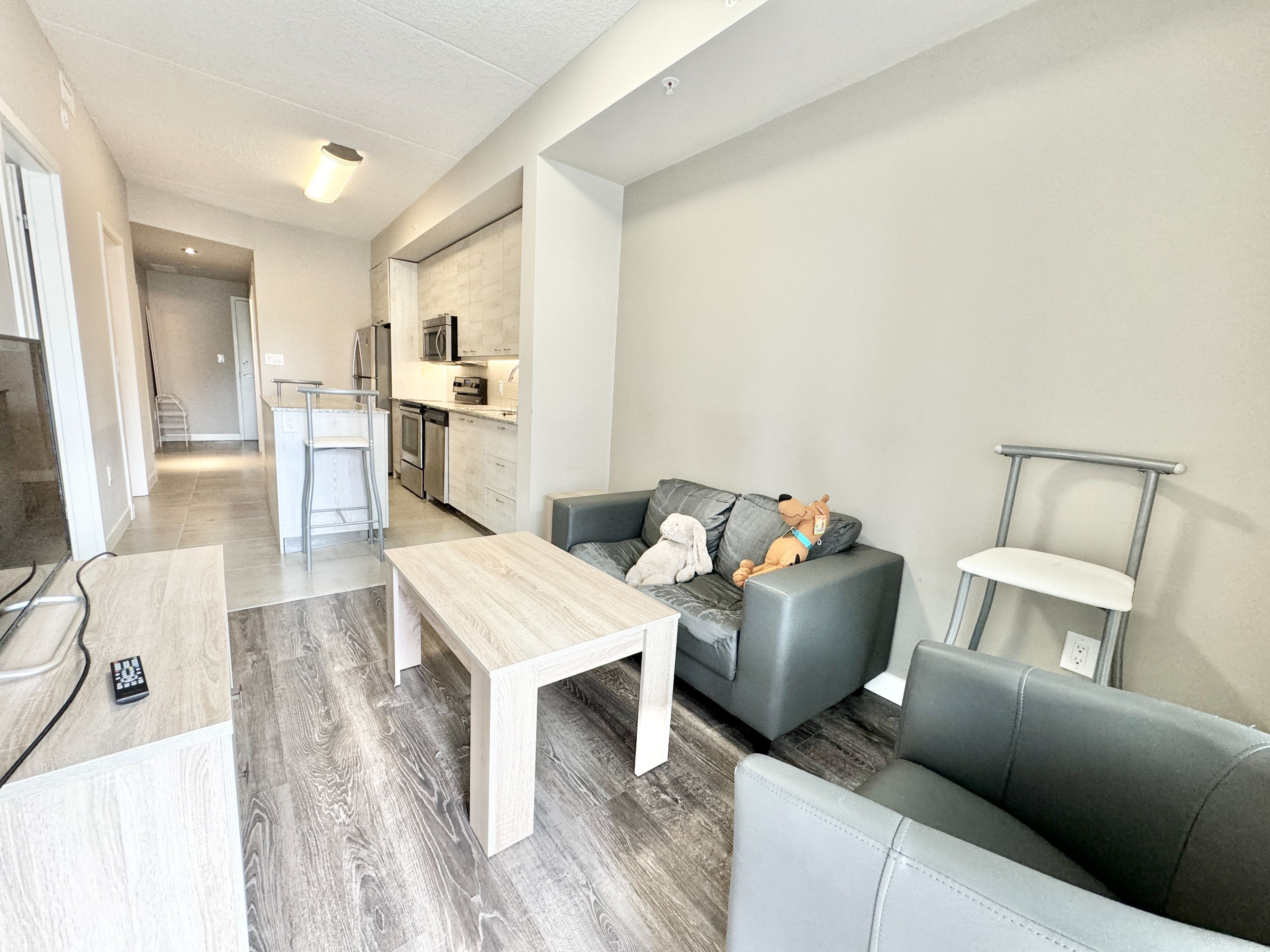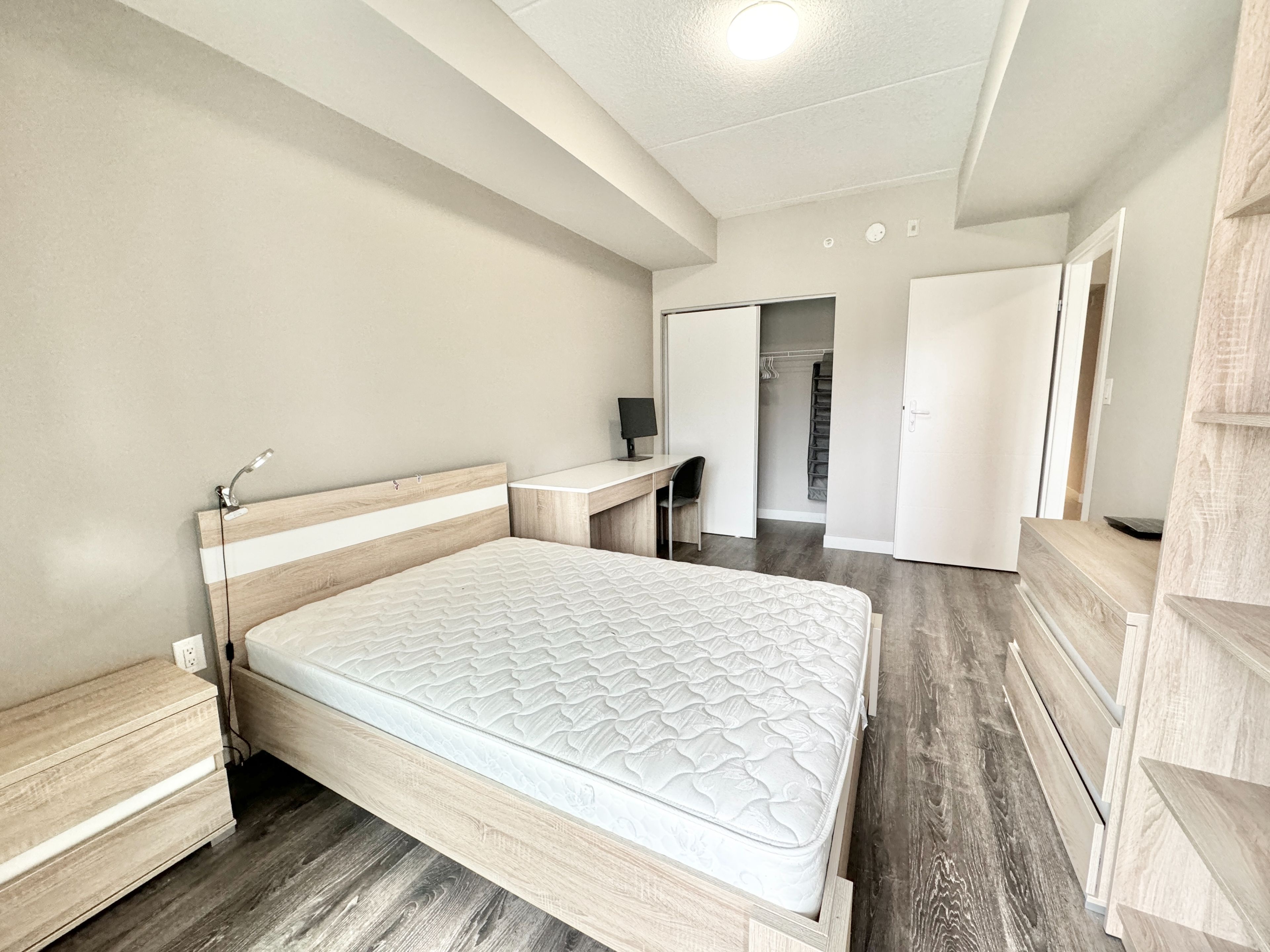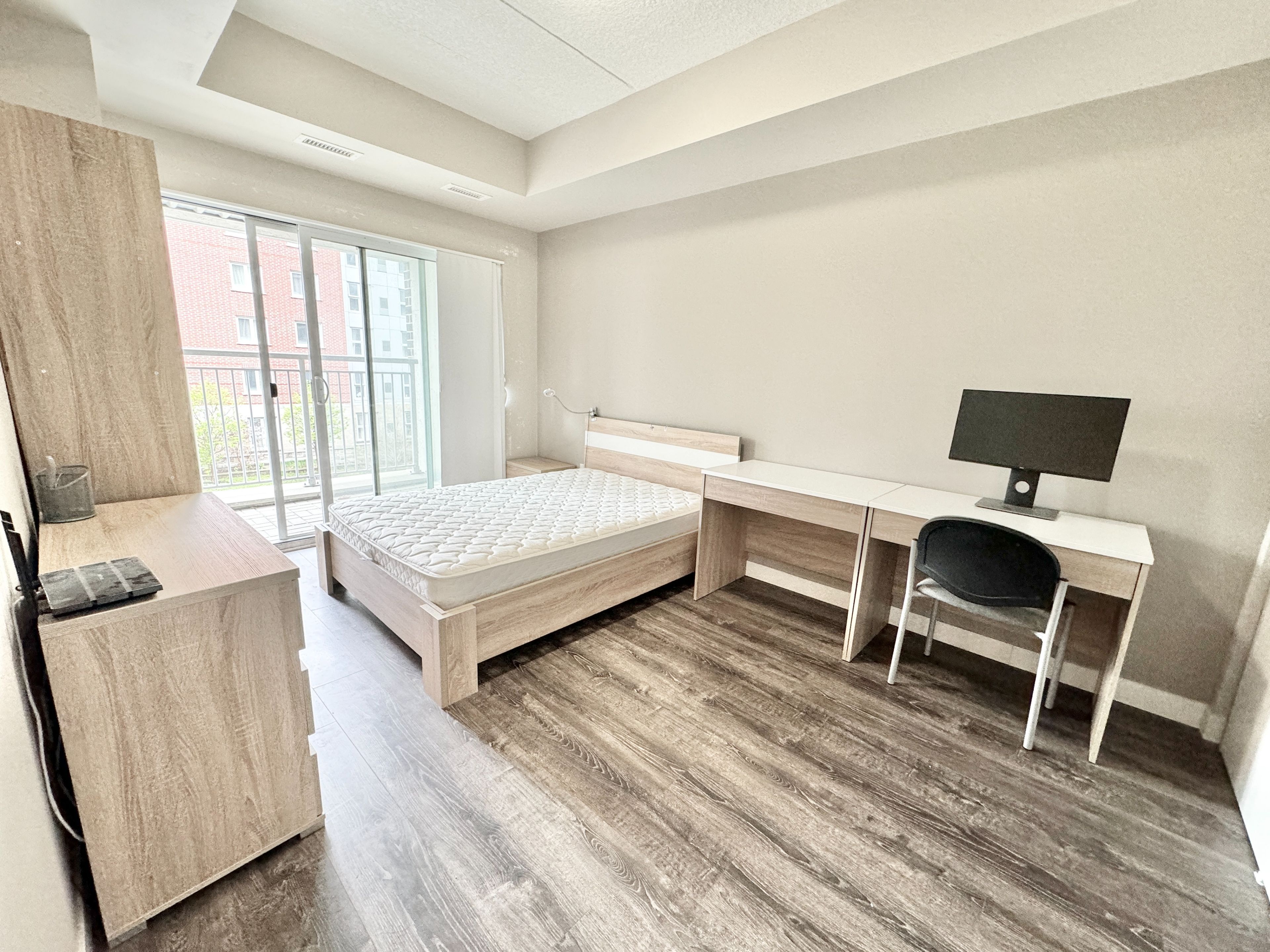 **ALL FURNITURE INCLUDED (EXCLUDING SOFA)**Ideal Student living Steps from Waterloo @ Sage condos! Bright and Spacious 1 + den w/door can be used as second bedroom. High 9' Ceilings. Tile & Laminate flooring throughout. Open concept kitchen w/quartz countertop, backsplash, stainless steel appliances & center island. Large sized bedrooms combined w/office. Large w/o Terrace w/South west exposure. onsite fitness facility & social lounge with smart TV + couches + meeting tables. Steps to Waterloo, public transit, parks, restaurants, supermarket. Close to hwys.