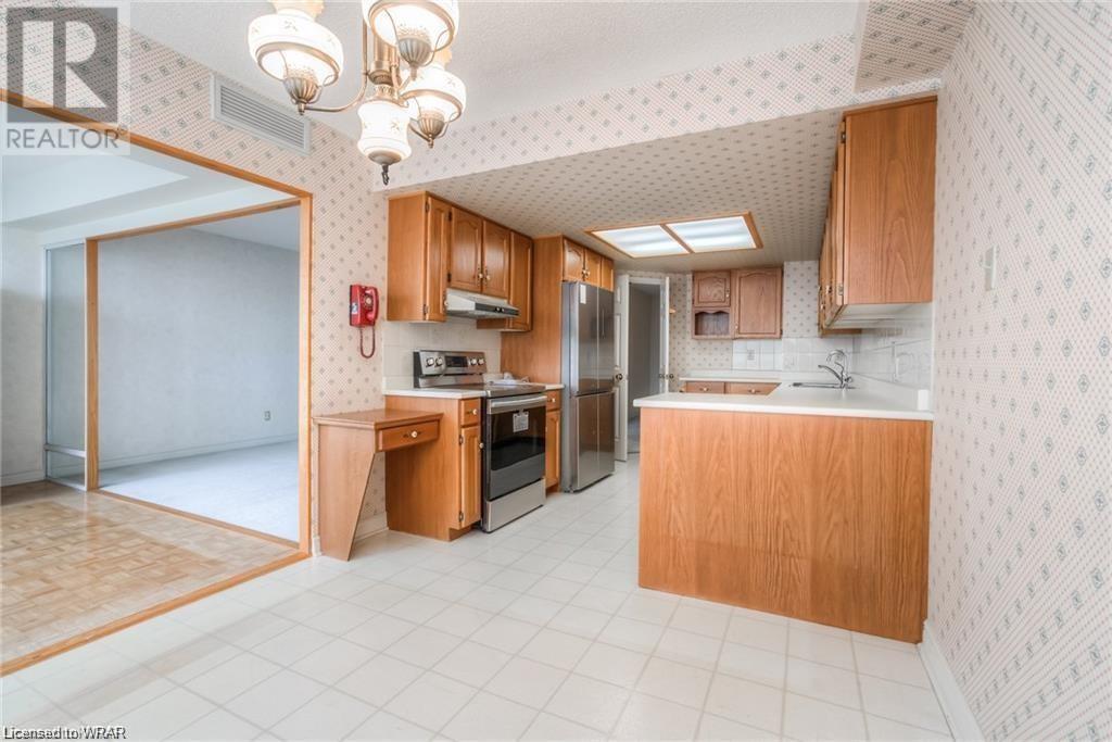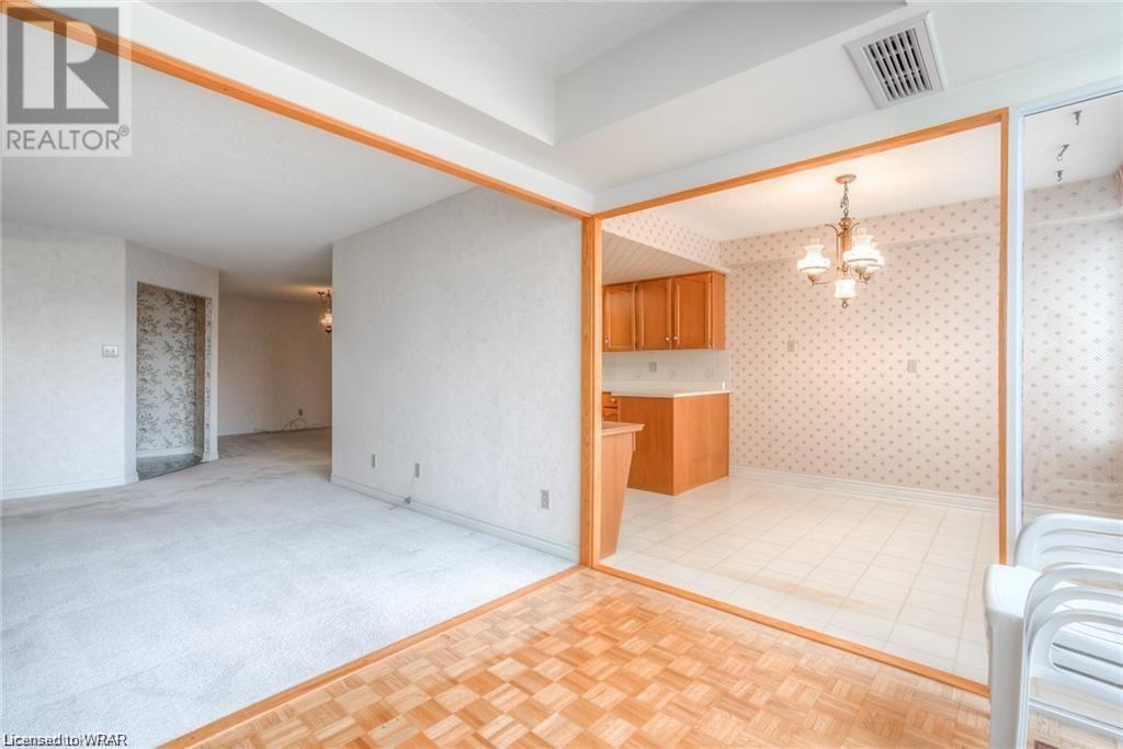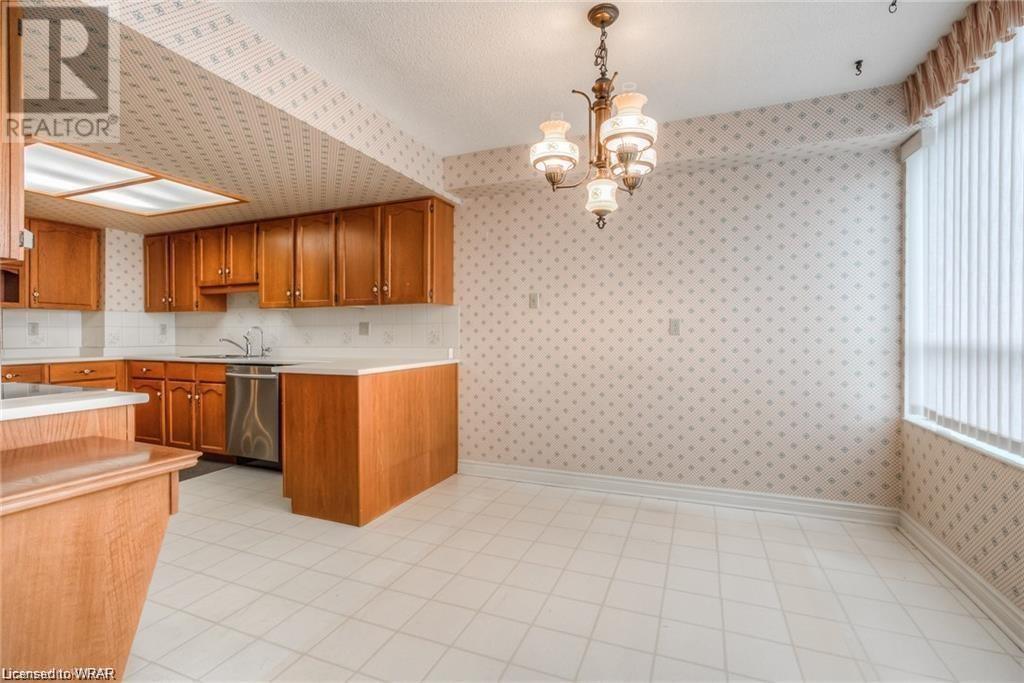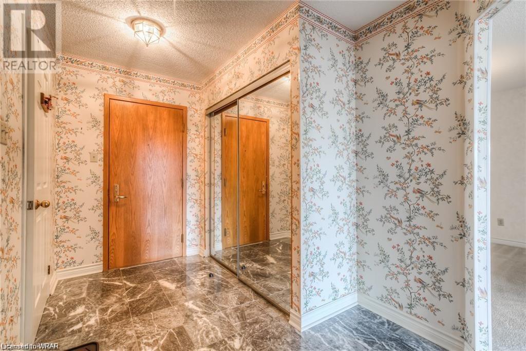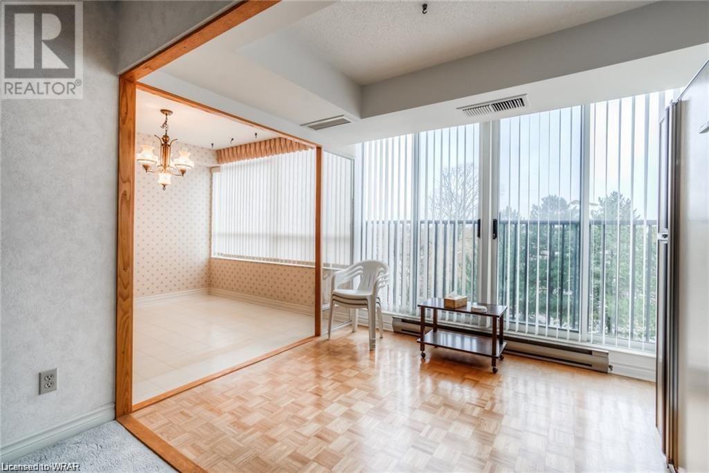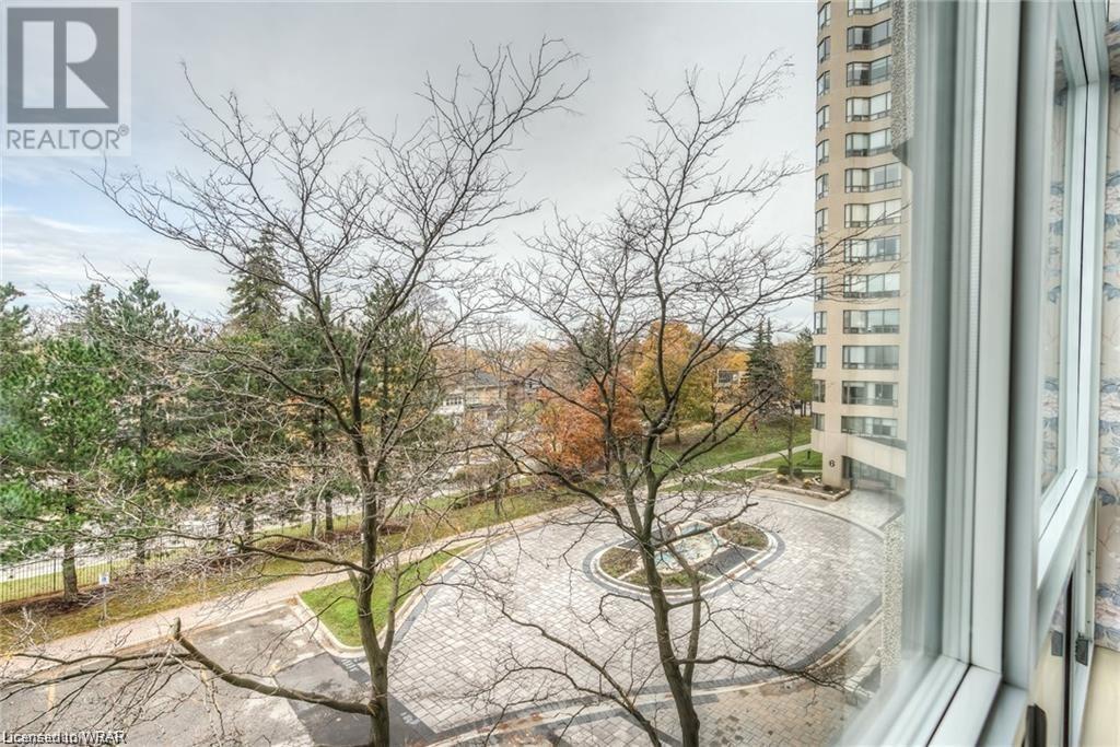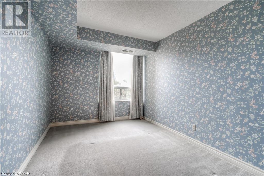 Welcome to luxurious Water Park Place, a mature condo development in the heart of Waterloo, nestled in a 5 acre park like setting and within a 5-minute walk to the shops and restaurants of bustling Uptown Waterloo. This attractive condo presents a large entrance foyer, a separate dining room adjacent to the great sized kitchen and dinette. The kitchen is outfitted with stainless appliances, loads of counter space, along with an expansive window with views of the surrounding neighbourhood. The living area has been opened up to include the Sunroom/Den providing city vistas through the wall of windows and sliding glass doors that open to the Juliette balcony. There are 2 generous sized bedrooms, with the master hosting both a walk-in closet and its own private ensuite. In-suite laundry with washer & dryer finishes the tour. With amenities that include an indoor pool, party room, sauna, fitness room, library and outdoor BBQ area, underground parking spot, and close proximity to Universities, the expressway & ION transit, this is carefree living at its best. (id:22211)