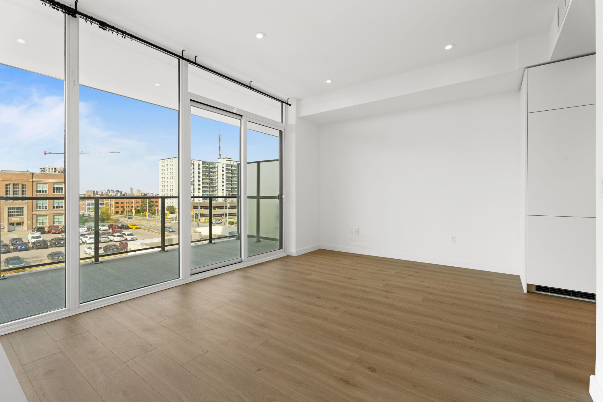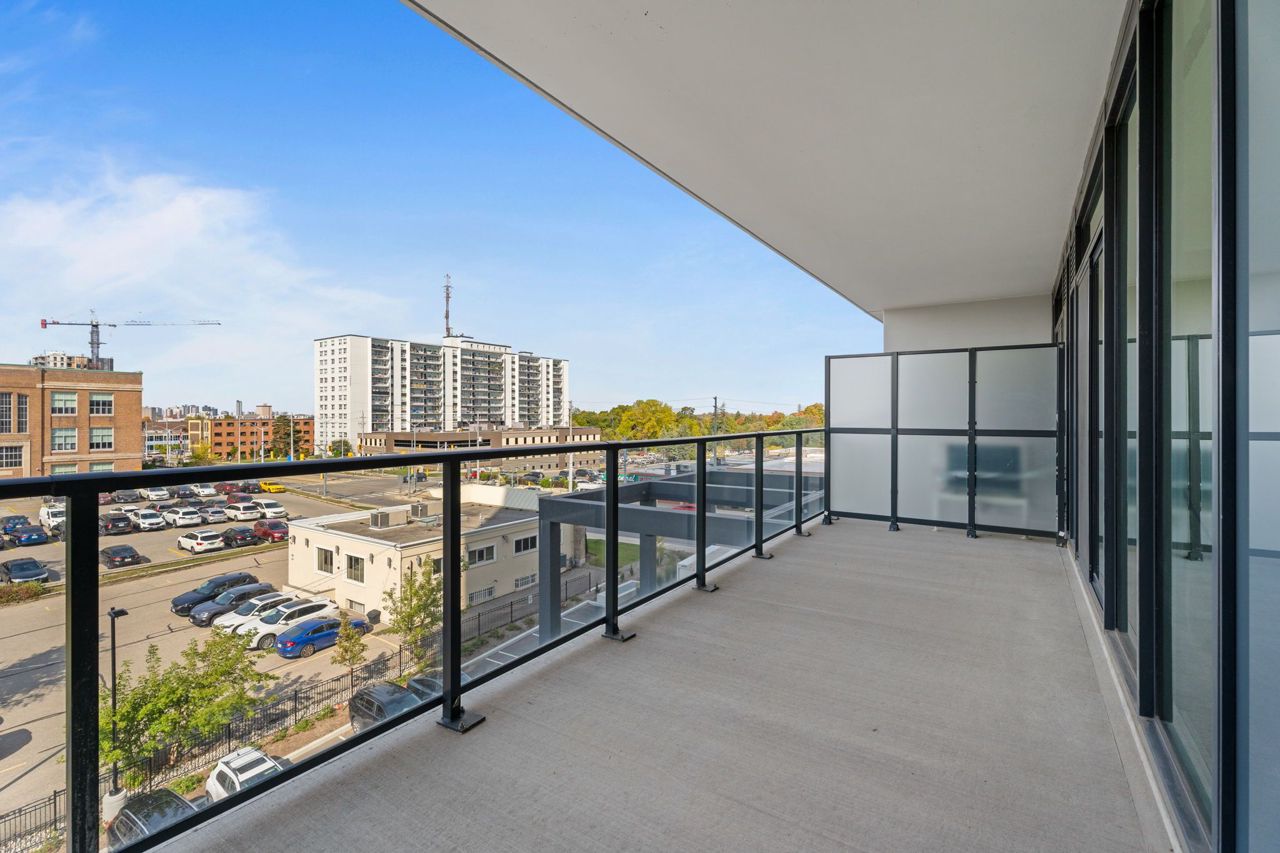 Spacious Studio Condo In One Of The Most Desired Kitchener Communities!! Completed In 2024! Gorgeous Finishes, Neutral Colours & Modern Kitchen With Integrated Appliances And Designer Hardware! Built-in Murphy Bed! Ensuite Laundry! Glass Shower! LED Pot Lights Throughout. Efficient Air Heating & Cooling System. Integrated Suite Security With Digital Main Door Lock & Touch Screen Control Panel. Extremely Bright Unit + A Massive 205 Sq Terrace with Breathtaking Views. Open Concept. High Demand Location. A Few Kms Away From The University of Waterloo and Laurier & Steps To The Google HQ, Sun Life HQ, KPMG, Grand River Hospital, LTR, Groceries & Much More ...Your New Luxurious / Convenient Condo Is Ready For You! ***Extras *** Lots Of Visitor Parking, Bike Storage & Outdoor Terrace With Two Saunas, Grand Communal Table, Lounge Area and Outdoor Kitchen/Bar. "Hygee" Lounge Includes Library, Cafe and Fireplace with Cozy Seating Areas.