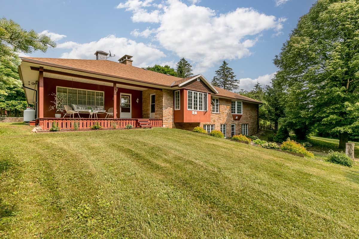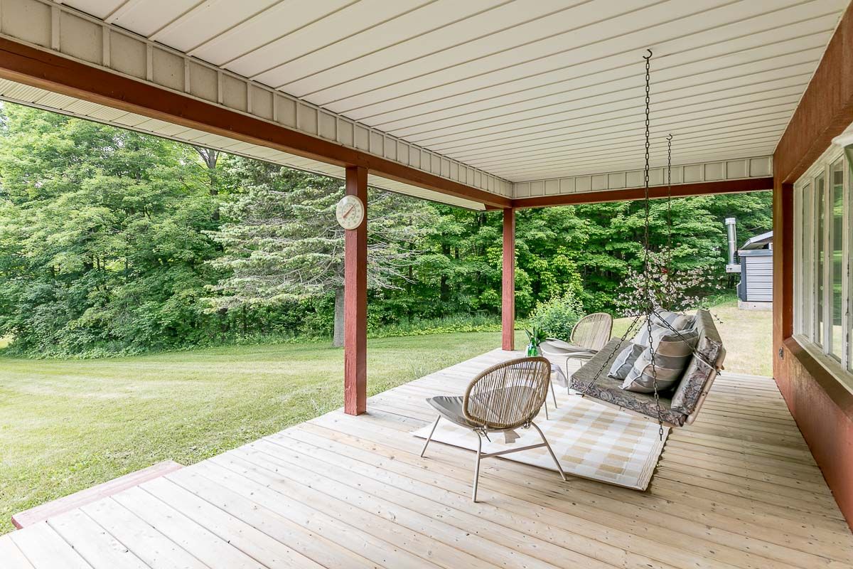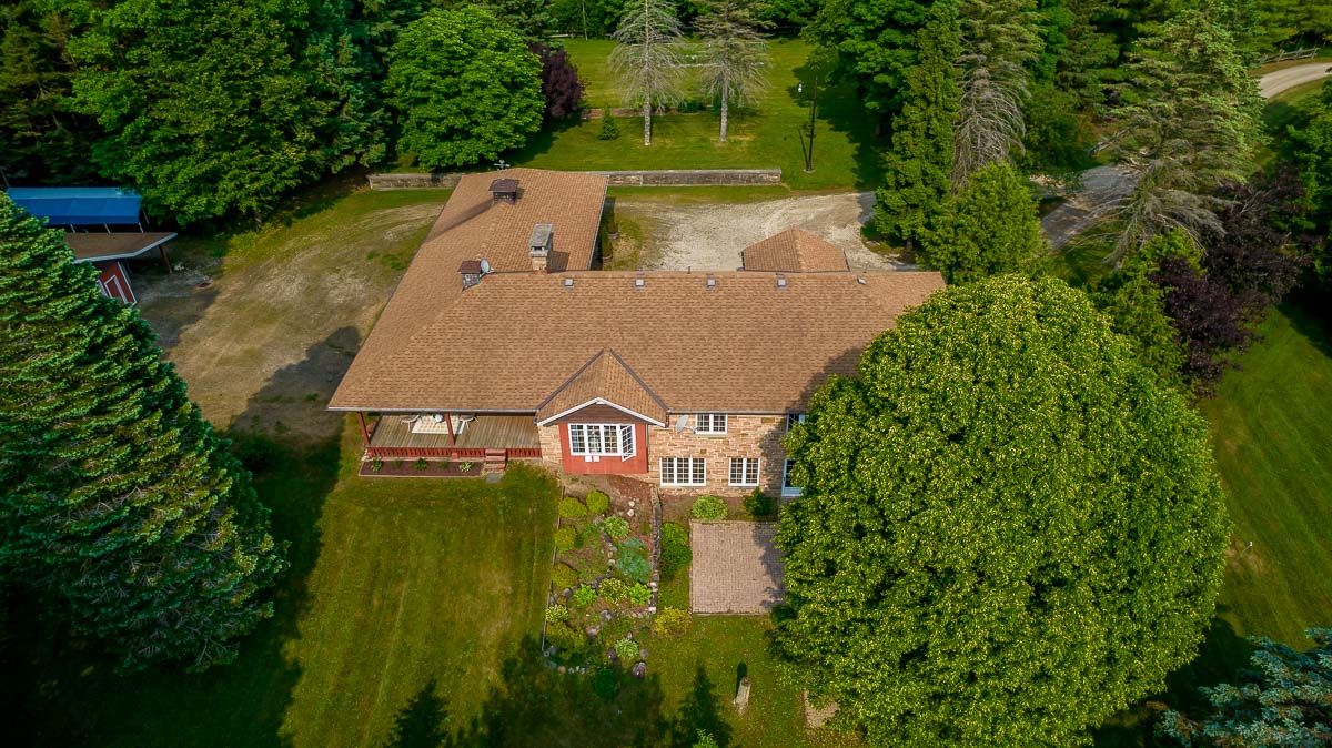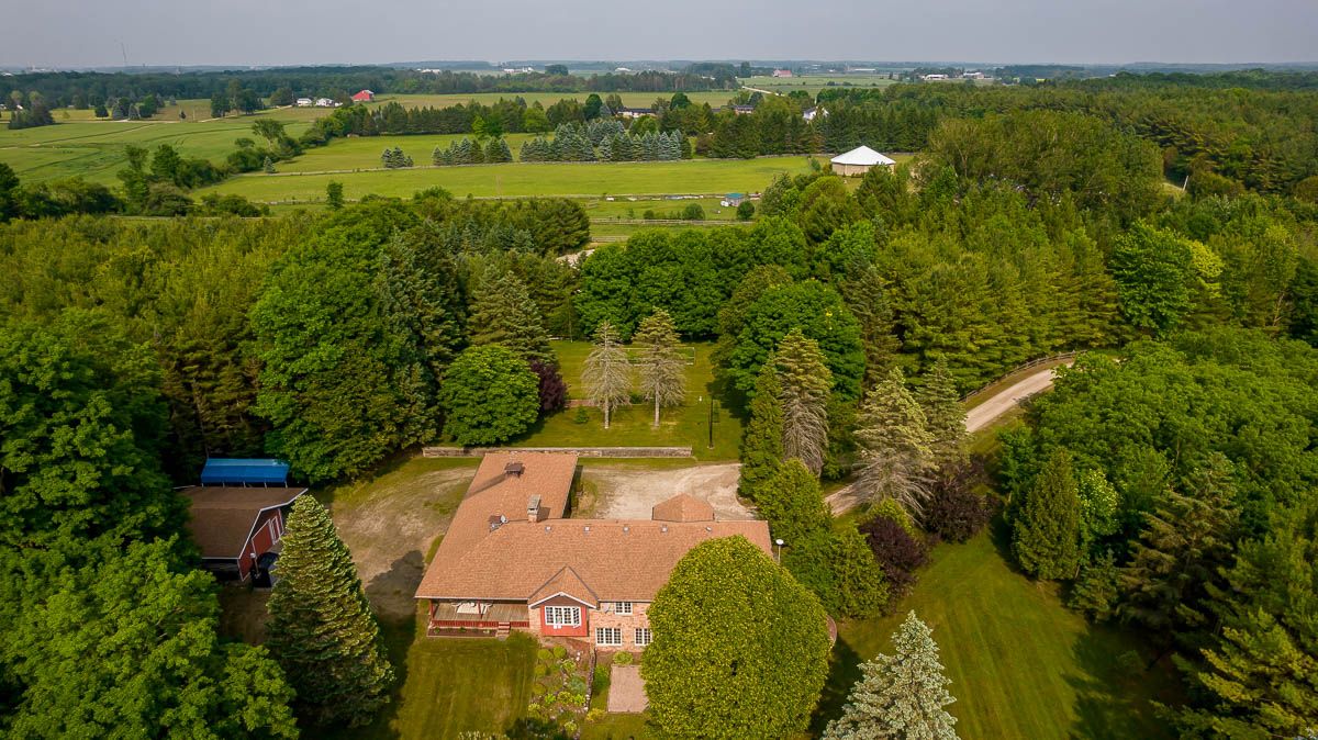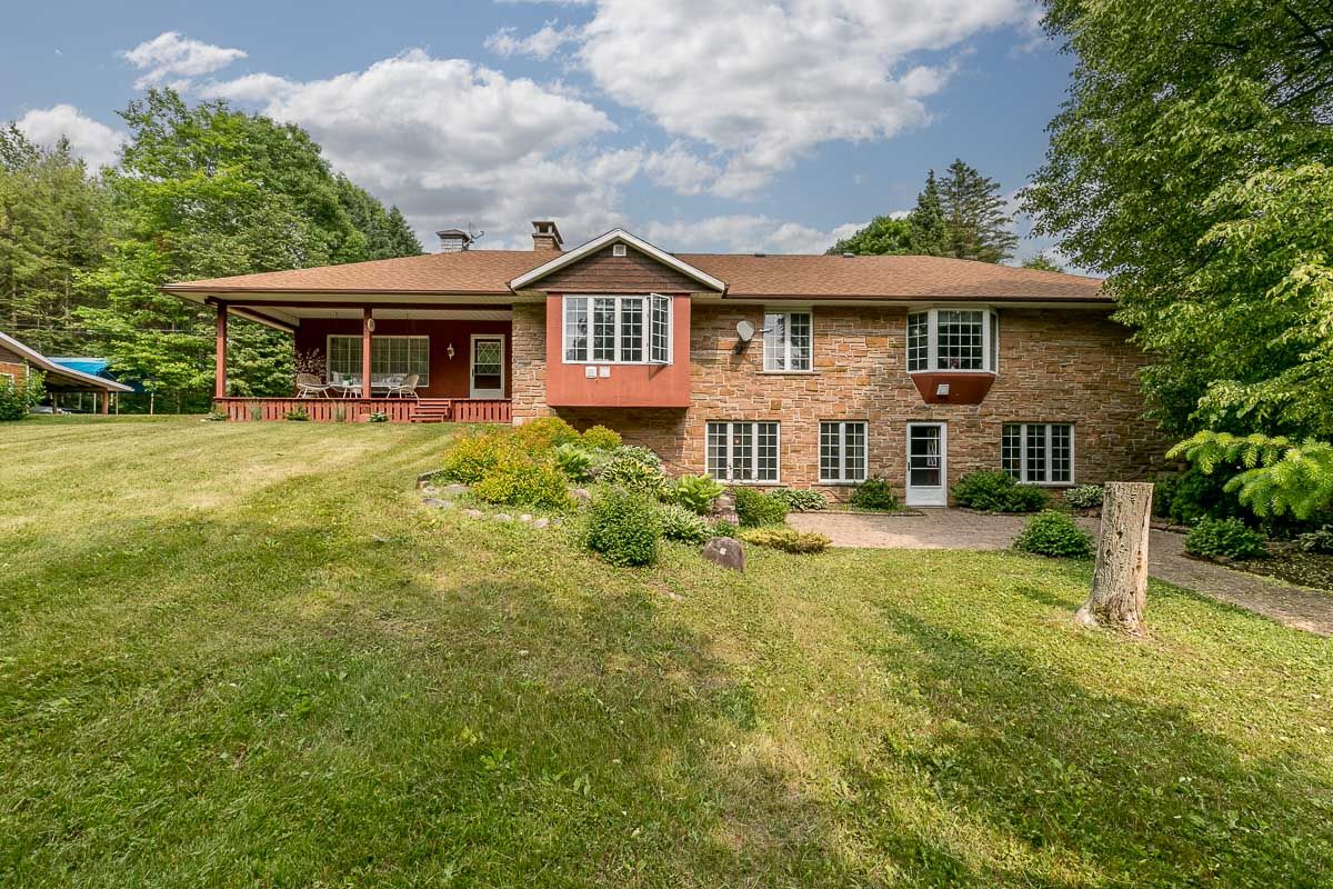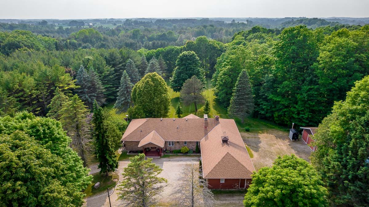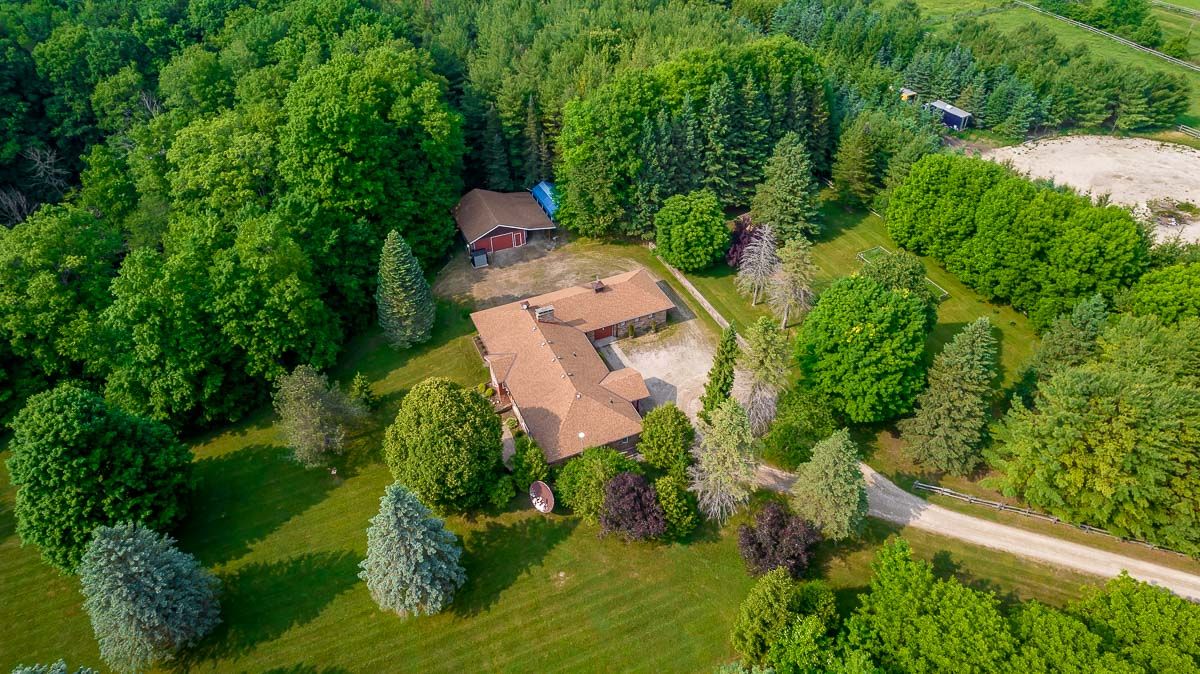 This stunning country property offers a peaceful & picturesque retreat on 5 acres of land. With 2+2 bedrooms & 2 bathrooms, this home provides ample space for the whole family. As you make your way up the driveway, you will take immediate notice of the lush green surroundings and serene countryside that provides a peaceful oasis away from the hustle and bustle of city life. Upon entering the home, you will be captivated by the open concept living area adorned with beautiful wood beams throughout. The spacious layout creates a warm and inviting atmosphere, perfect for both relaxation & entertaining. The natural light streaming through the large windows further enhances the charm & character of the home. Enjoy the fully finished basement with 2 additional bedrooms, a 4pc bathroom, open concept living space & a sizeable kitchen - perfect for hosting guests or live-in family! The basement further provides tons of natural light with above grade windows & a walk-out to the back patio.Large 2 car garage w/ multiple workshop rooms-one of which is insulated and offers additional heating with a wood stove! Enjoy having garage doors on each side for easy access! Adjacent 5.3 acre vacant lot also for sale MLS # X6187008