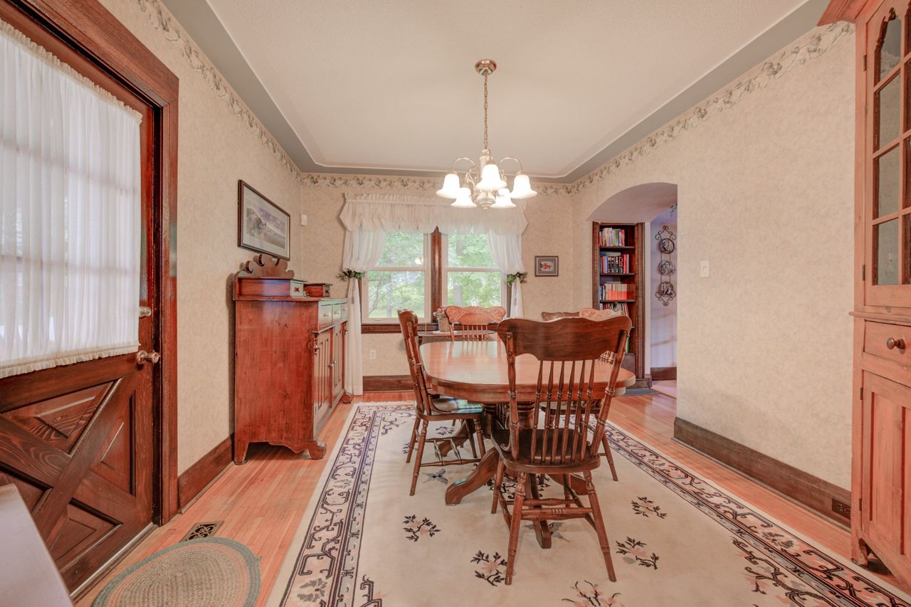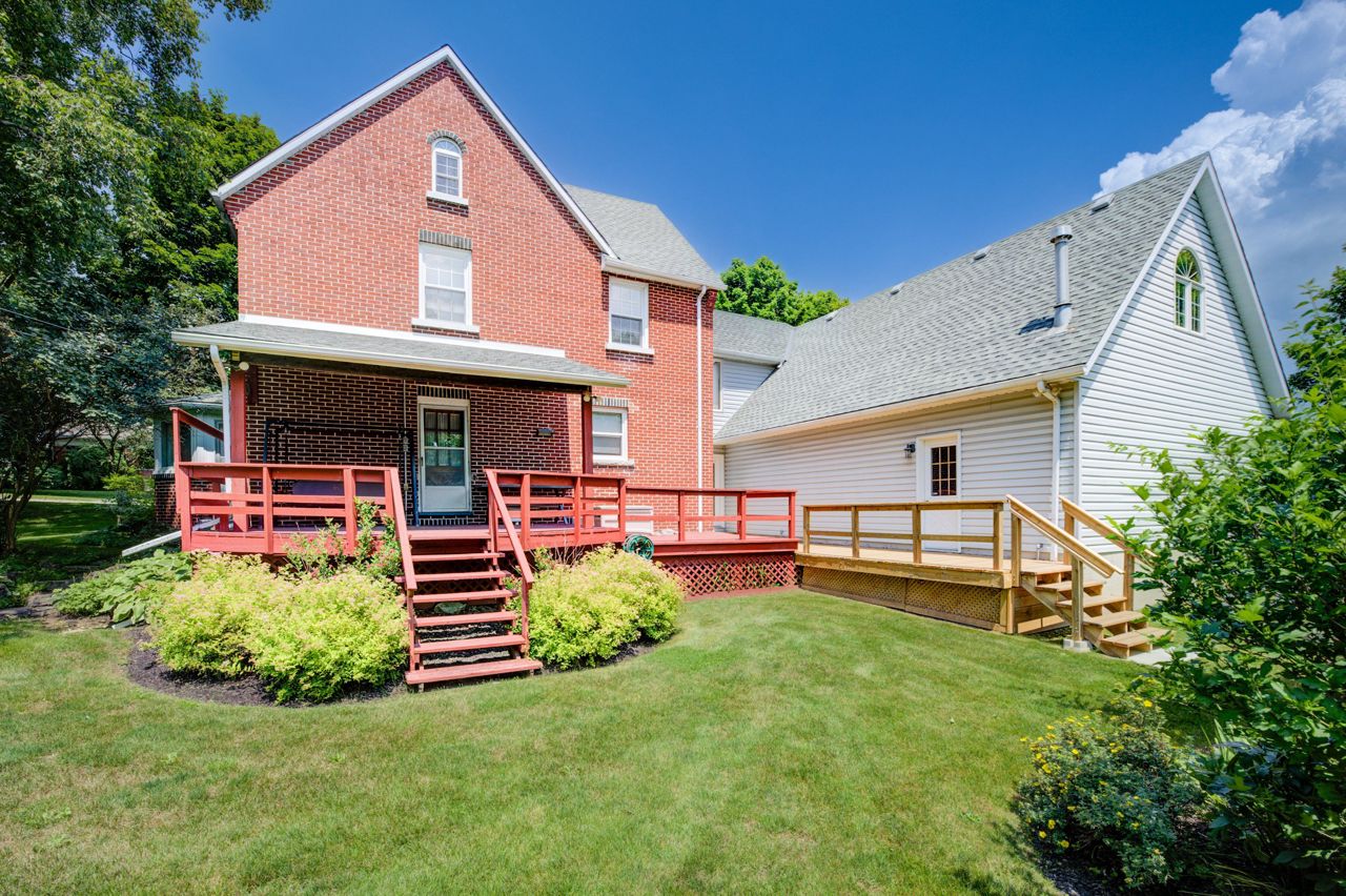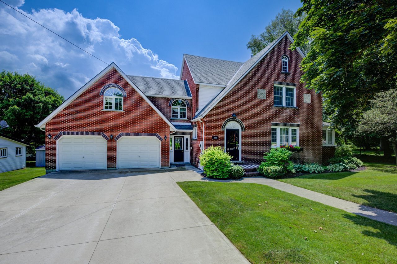 Come and be impressed with this beautiful all brick 4-bedroom home, located on a park-like setting. This 2.5 story home has 2400 square feet of living space that shows pride of ownership throughout. The home features beautiful original wood trimming, gas fireplace, and many large windows that lights and warms the home. Some bonus rooms, ideal for gathering, include the sun-room, second floor family room and a finished basement. There is also a walk-up attic that can provide extra storage space. The large porch overlooks the tastefully landscaped yard. Park 4 cars on the concrete driveway, and another 4 in the attached, heated garage. You will also find a 28-foot X 35-foot storage shed, and a 10-foot X 14-foot garden shed. Great location, close to downtown. Contact us today to schedule a viewing and make this house your new home.Additional inclusions: full length Mirror in 2nd Bedroom, Gas Furnace in garage, kitchen table chairs & bench, shelves in 2nd floor bonus room, metal shelf in garage, work bench & cabinets in utility room