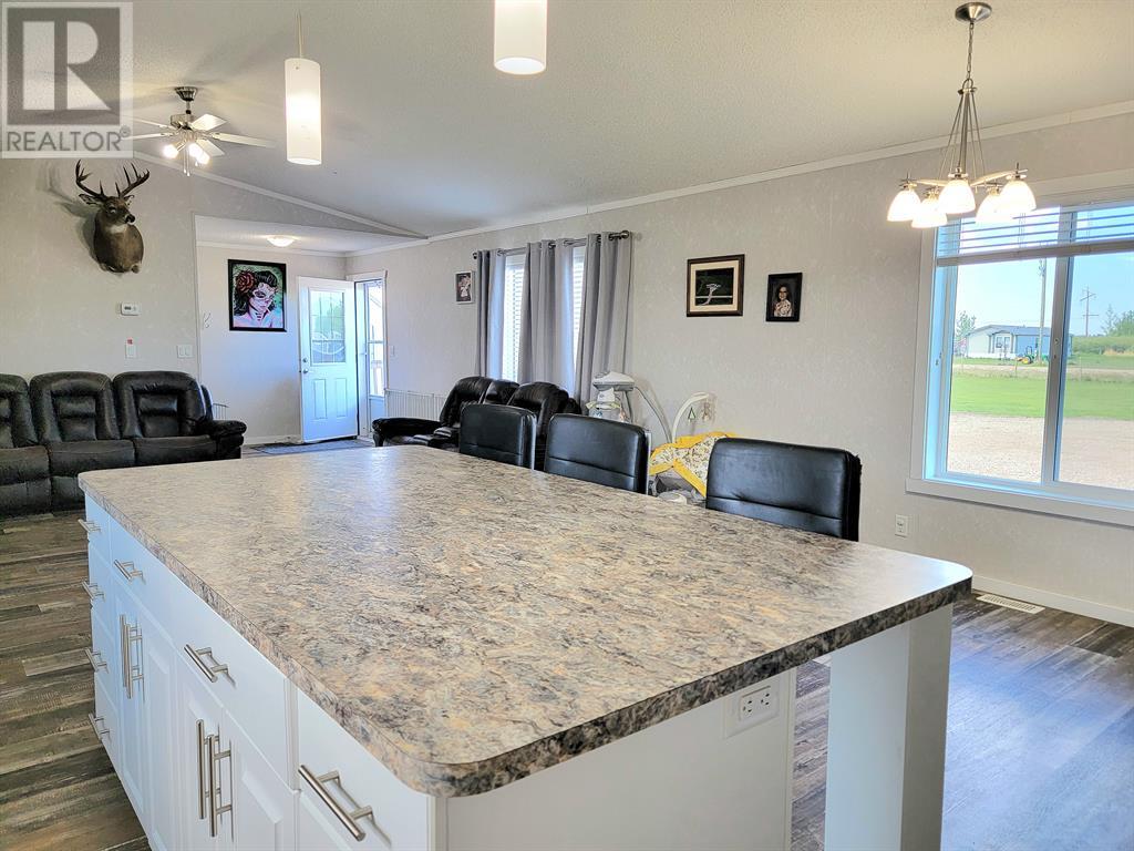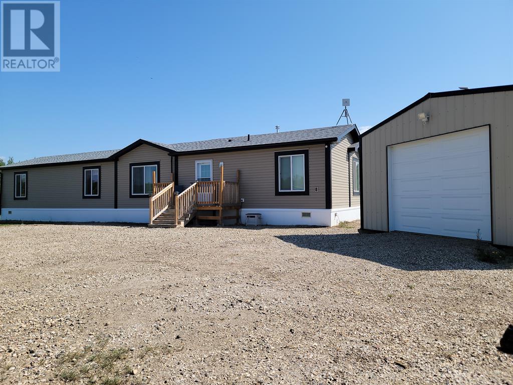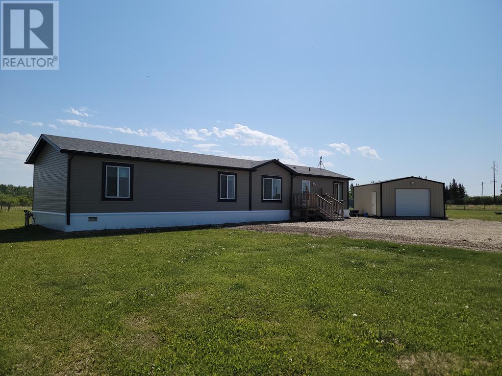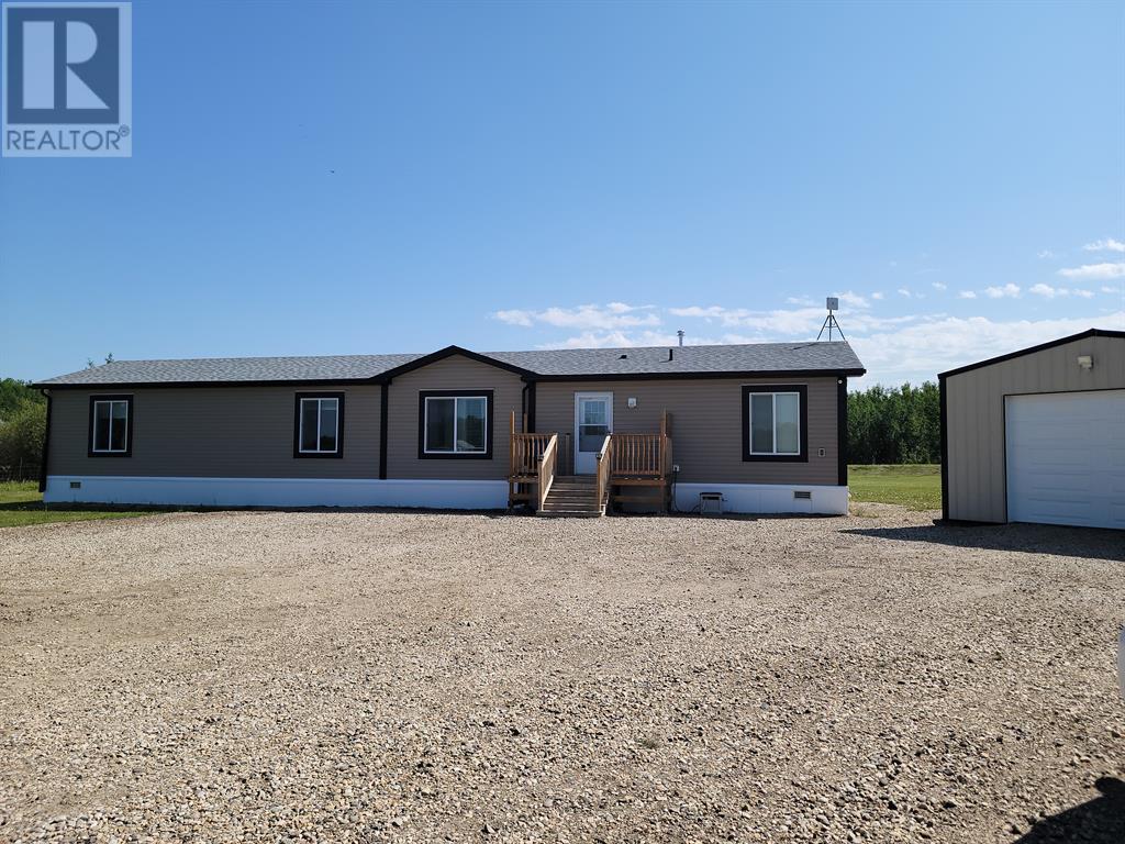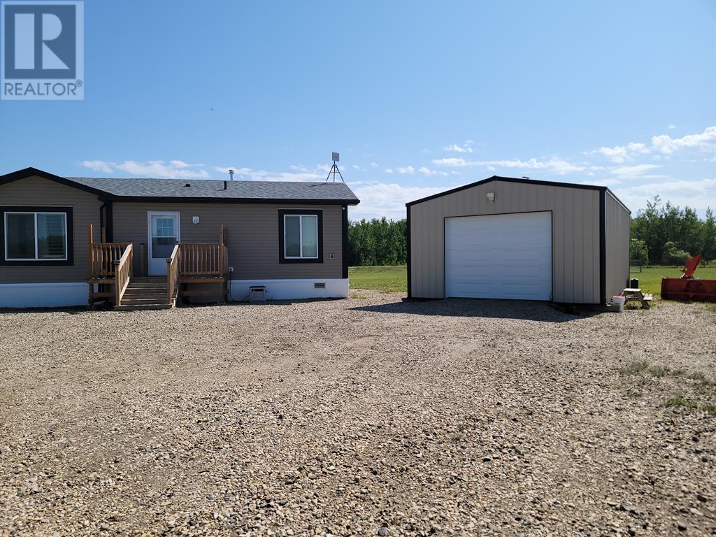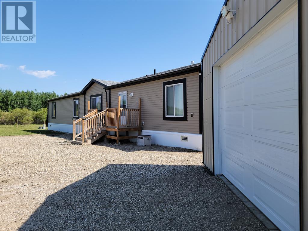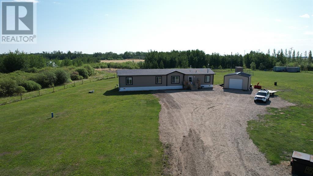 Welcome to your oasis in the country! This 2018 manufactured home offers a peaceful and private escape from the hustle and bustle of city living. Located on 4.42 acres, you will love immersing yourself in nature with plenty of room for outdoor activities and exploring. Inside, you’ll find a bright open concept space with durable vinyl plank flooring throughout that complements the beautiful finishings of this 3 bedroom, 2 bathroom home. The primary bathroom features a double vanity and a walk in closet with plenty of storage. Step outside onto your large rear deck – perfect for morning coffees or watching the sunrise while enjoying some peace and quiet away from it all! Your property is also fenced all around with a gated entrance as well as a detached garage to keep any machinery out of the elements. This is an opportunity not to be missed - come experience true country living today! (id:22211)