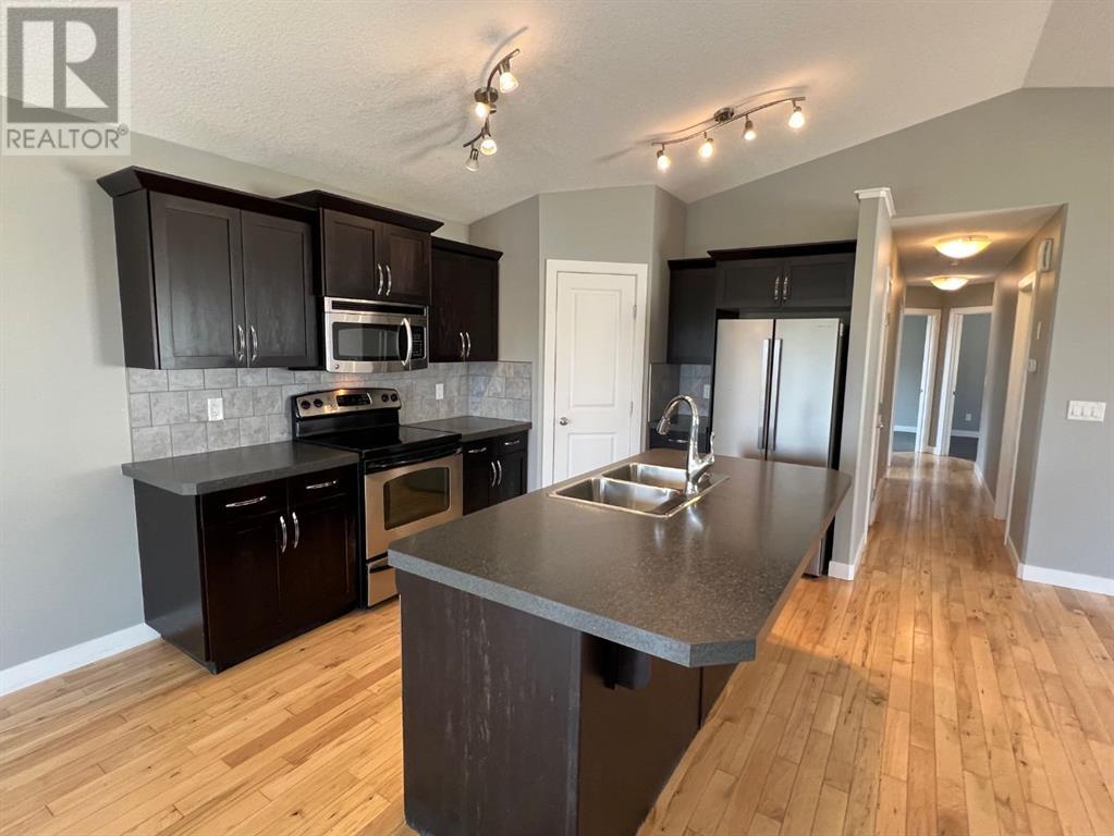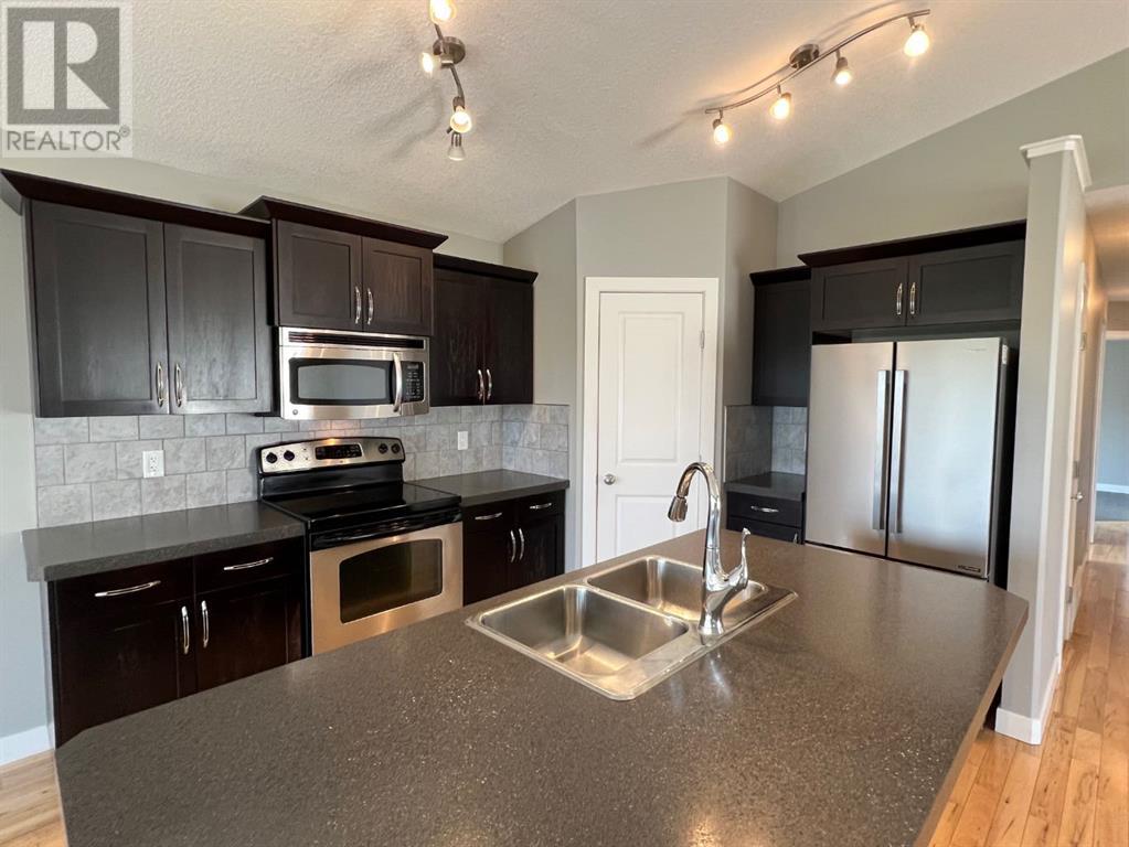 Looking for your next revenue property? You MUST check out this legally suited home in Wembley! Functional floorplan - upper level is open and has vaulted ceilings, large kitchen with stainless appliances, island and corner pantry and bright bay windows in living room. There are 3 bedrooms and 2 full bathrooms - the master bedroom has a walk in closet and full ensuite with tub. The basement suite has its own entrance at the back, 2 bedrooms, full bathroom and wide open kitchen with stainless appliances and a pantry. The dining and living room area are a great size . Separate laundry, furnace and hot water tanks for each unit ensure a hassle free tenancy experience! The yard is cross fenced to allow each suite to have its own fenced and landscaped outdoor space. There are also 2 sheds for extra storage. Quality tenants in place with fixed leases into 2024. Wembley is a great family oriented town, and the lower county taxes will make this revenue property a winner! Call your favorite REALTOR to add this to your revenue portfolio! (id:22211)