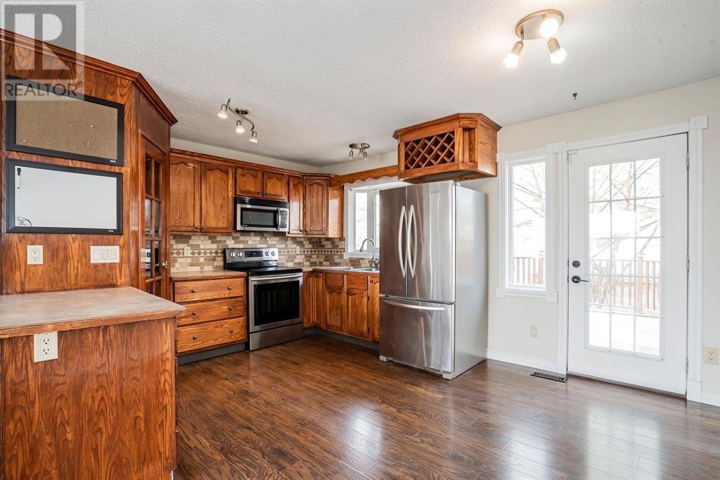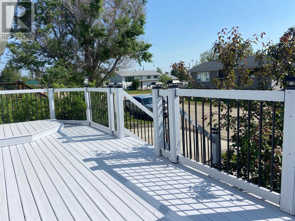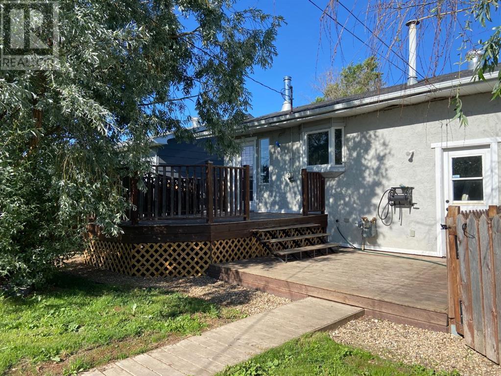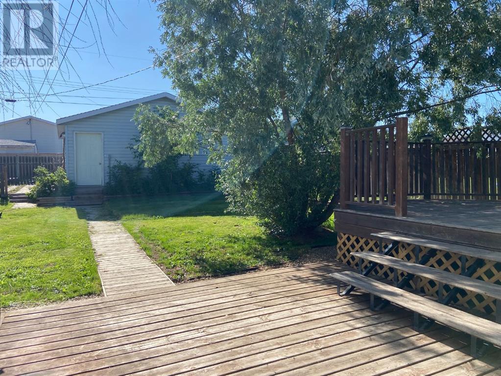 Fully developed bungalow in Wembley! Only 15 minute drive to Grande Prairie!! With 5 spacious bedrooms, 3 bathrooms, an open living concept, spacious living/rec room up and downstairs, this home is bursting with character and charm. This home has new carpet in the upstairs bedrooms, all new vinyl plank flooring downstairs, the entire home has just been freshly painted and ready for immediate possession. Step outside and discover your very own massive private yard! The yard features a private garden area, firepit, and a two-tiered deck - perfect for entertaining guests or simply enjoying the great outdoors. The shed, built-in dog run, and fully-fenced landscaped yard with beautiful perennials add even more appeal. And with a convenient alley entrance to your two-car detached garage, parking and storage will never be an issue.The front yard is equally impressive, with another deck and a large concrete driveway that has been completely redone. This is truly a must-see property that offers the best of both indoor and outdoor living. Schedule your viewing today! (id:22211)