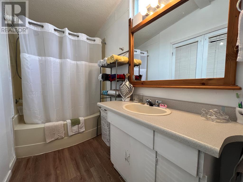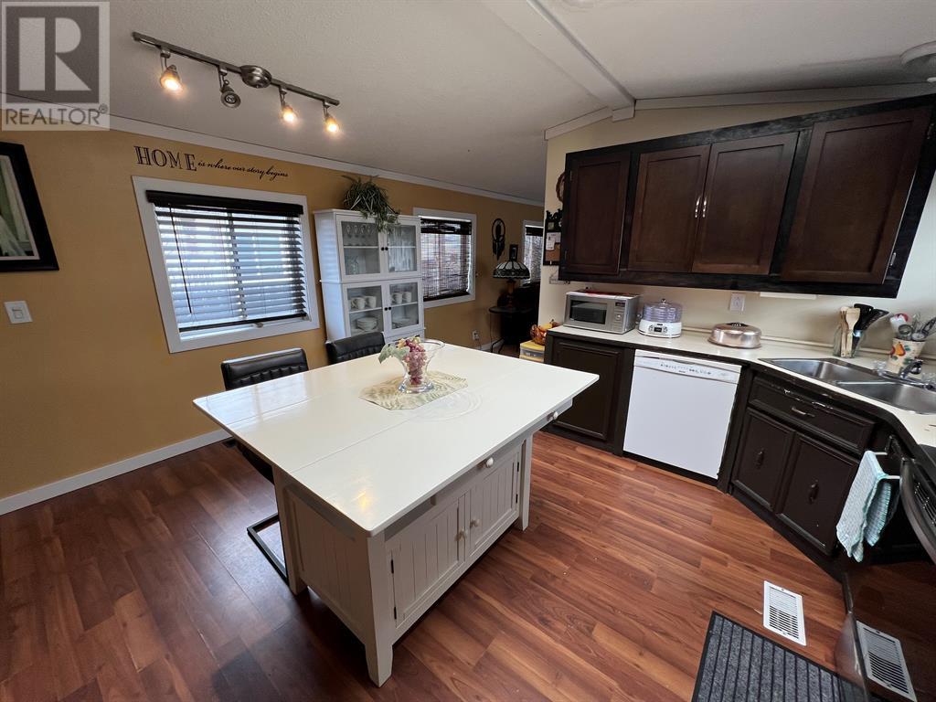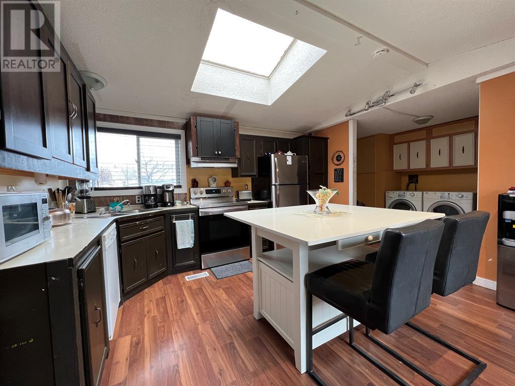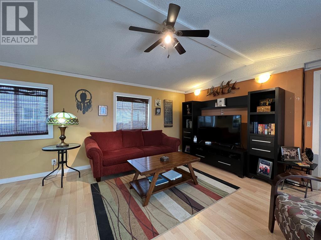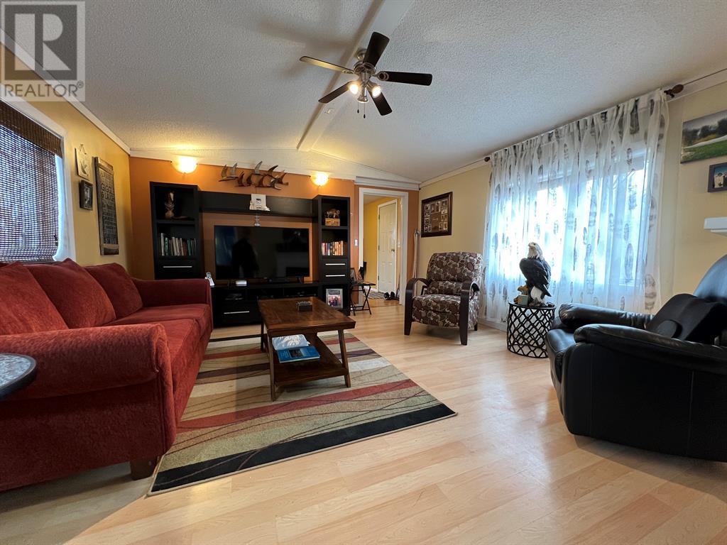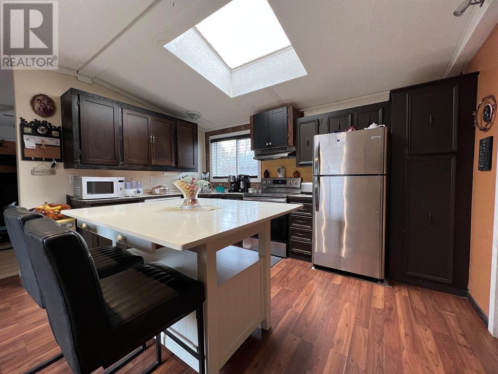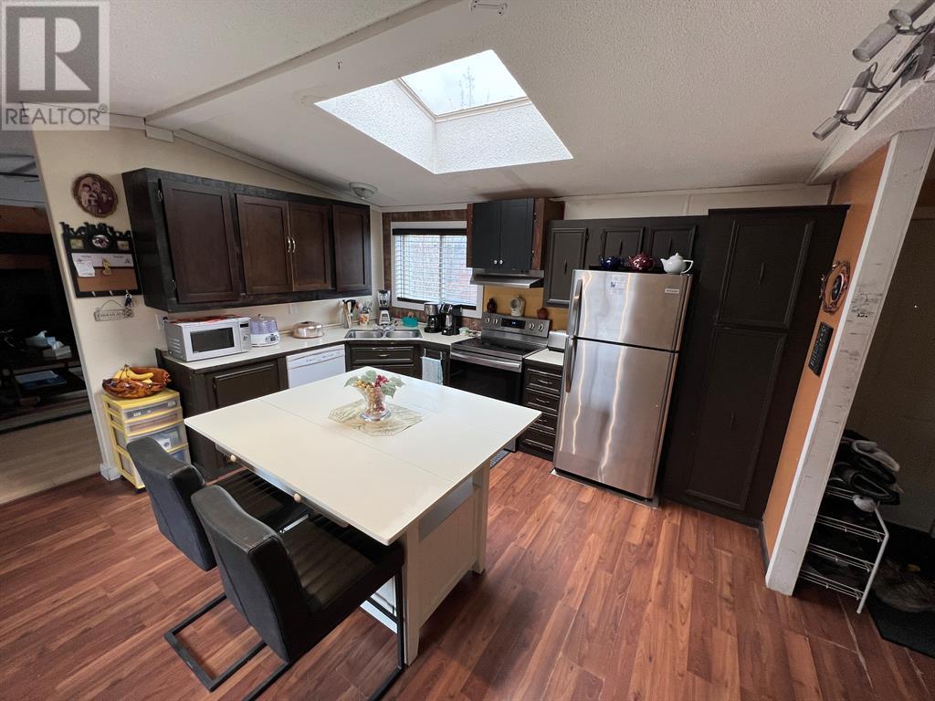 SUPER AFFORDABLE HOME - NO PAD RENT / OWNED LOT - Low County Taxes - On a huge lot in the heart of Wembley. You are within a few blocks of the gas station, liquor store, rec centre, two schools & convenience store. Triple rear parking pad with a big shed. The yard is fully fenced, landscaped and quite private. Over the years they have replaced most the windows, shingles, drywall, laminate, insulation, hot water tank and many other items. A great entrance way with laundry to the side. Kitchen has had cabinets refaced, window by the sink & skylight above. Master bedroom that is large with its own full ensuite. Other side of the kitchen is the generous sized living room and down the hall is the reading nook which could be converted back to a 3 bedroom by adding a wall & door. As it stands is the second bedroom and full bathroom. Let us help you get into your first home! (id:22211)
