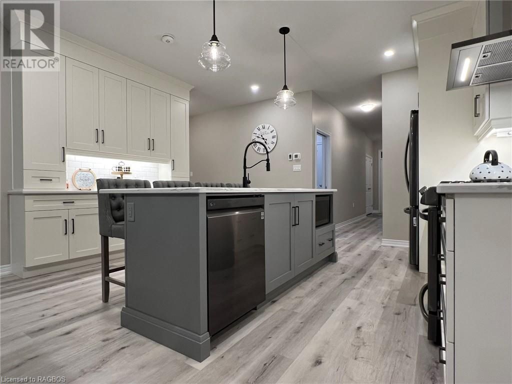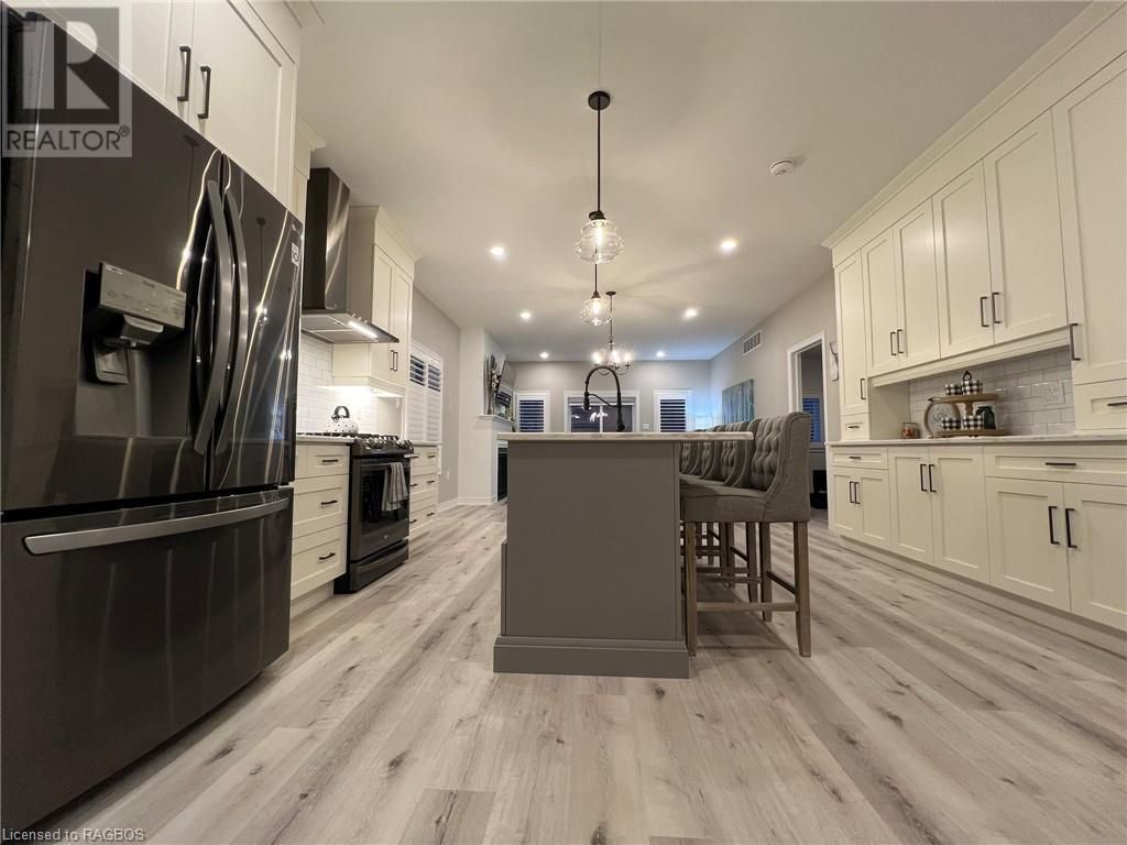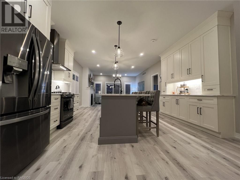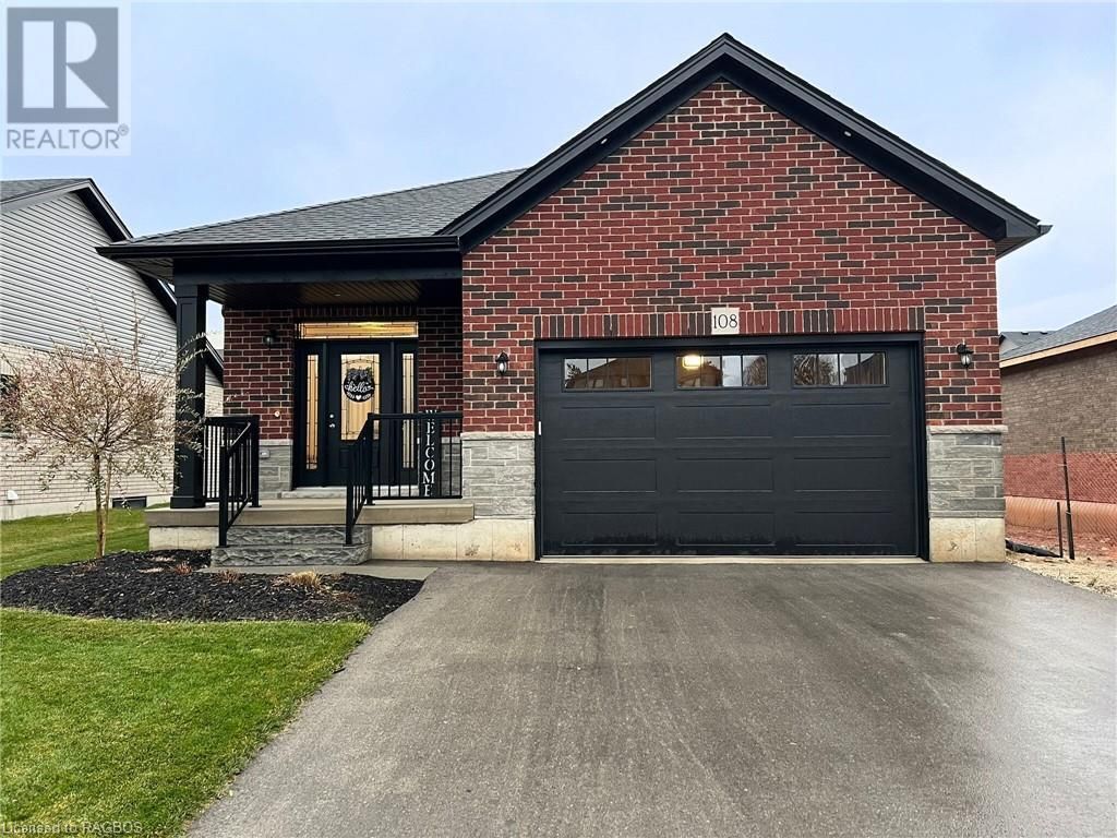 108 Emerson Way West Grey, This 2021 Sunvale 2 bed, 2 bath bungalow offers main floor, open concept living with seamless flow between kitchen, living & dining. Kitchen features large island with builtin microwave & dishwasher - ideal for entertaining. Function meets fashion with floor to ceiling cabinetry & a large pantry. This home offers many upgrades including the master bedroom with a modern accent wall, walkin closet & large 3 pc ensuite with heated floors. Second bathroom will leave guests in awe with newly installed up-scale tile floor, modern vanity & decor. The basement is an open canvas with rough ins for a two-piece bathroom, featuring large windows and the ability to build additional bedrooms or a large rec room. This property is perfect for the outdoor enthusiasts being close to the Saugeen River which is known for fly-fishing, kayaking, and canoeing, as well as the Durham Conservation area which offers hiking, crosscountry skiing & seasonal camping.All ELFs & window coverings, b/i microwave, dishwasher, dryer, garage door opener, range hood, fridge, washer, tire storage rack, water softener