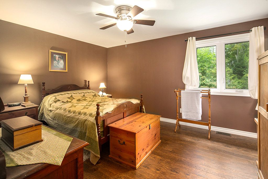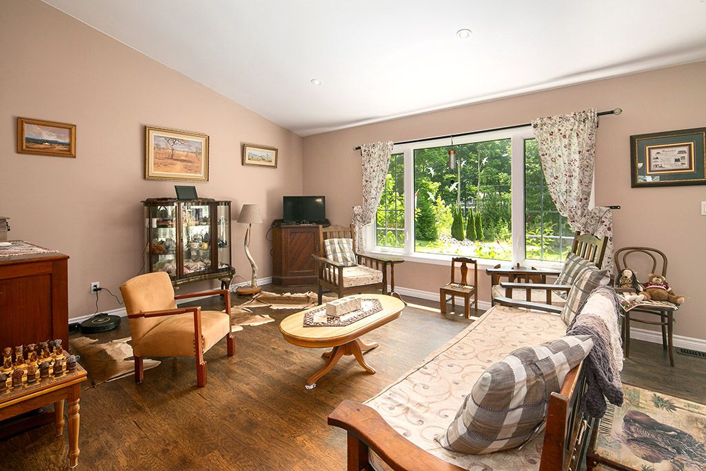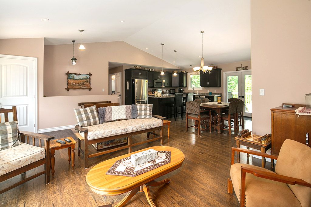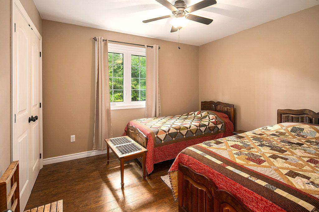 Well-built bungalow minutes from town in popular country estate community. Open concept ML offers plenty of living space with bright & airy Great Room at heart of it all, 3 bdrms (primary w 3pc ensuite) & Mudroom/Laundry & walk-in closet + entry to Garage. Fully finished LL has 2 more rooms (walk-in closets) used as bedrooms, could be craft room/office (fibre optic high-speed internet through Eastlink = no trouble working from home). Lower level also has generous Family Room w high ceilings, propane fire hook-up & more than enough space for pool table, movie nights or family gatherings + convenient w/o to yard. Outdoors, a landscaped, elevated & private 1 acre lot w mature trees, gardens, flagstone fire pit & enviable 14x28 stamped concrete patio perfect for dining alfresco or a seat in the shade under the pergola. Enjoy the country setting knowing you’re just minutes from schools, groceries, the new hospital, skiing, swimming, paddling, golf, hiking & more!Attached dbl garage insulated & 220 amp outlet + warm water tap. Gutter guards in place. Garden shed w electricity + separate 30 amp hook-up for RV. Large cover-all. Hook-up for gas generator at panel on exterior garage wall.