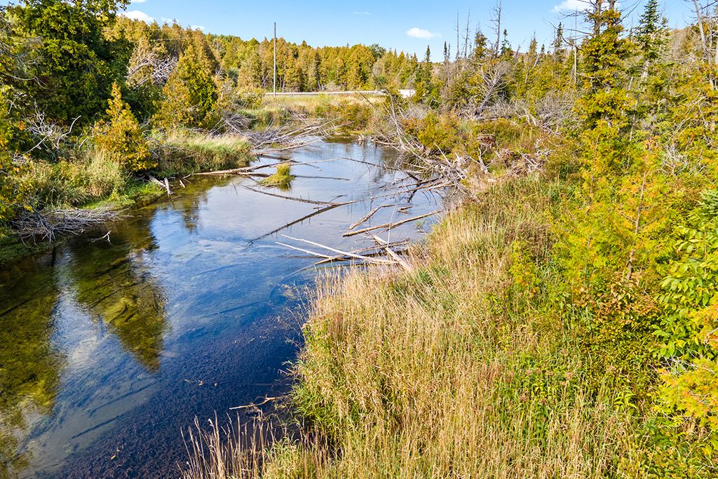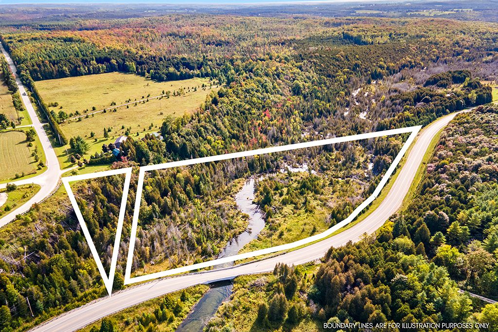 Discover your own piece of untouched natural beauty with this remarkable 8+ acres of vacant land, nestled atop a rugged hill, boasting awe-inspiring views and a pristine stretch of the Rocky Saugeen River running through its lower terrain. Located in NE (natural environment) zoning, this property provides a unique opportunity for those who cherish the serenity of nature and have a passion for fishing. Perched high on the hill, this property offers sweeping vistas that youre sure to love. From here, you can relish in the beauty of every season, from the lush greenery of spring and summer to the vibrant foliage of fall, and the serene, snow-covered landscape of winter. Approximately 966 feet of the Rocky Saugeen River meanders through the lower portion of the property, providing not only a stunning natural feature but also an ideal spot for fishing enthusiasts. Spend your days casting your line, enjoying the soothing sounds of the flowing river. While this land presents a canvas for your dream escape, it's important to note that development possibilities will require permission from the local conservation authority. The status of such permissions is currently unknown, and the responsibility for inquiring about development permits lies with the prospective buyer. This ensures that the property's pristine natural state is preserved and allows you to explore the potential for your vision within the bounds of local regulations. Fronting on Sideroad 40 and running along Grey Road 12, this property offers convenient access to nearby amenities and outdoor recreational activities. Whether you're seeking a tranquil retreat or an opportunity to create a nature-inspired haven, this property's location provides a perfect balance of seclusion and accessibility. *Note, the boundaries on Geowarehouse are different than on Grey County maps. No survey is available.
