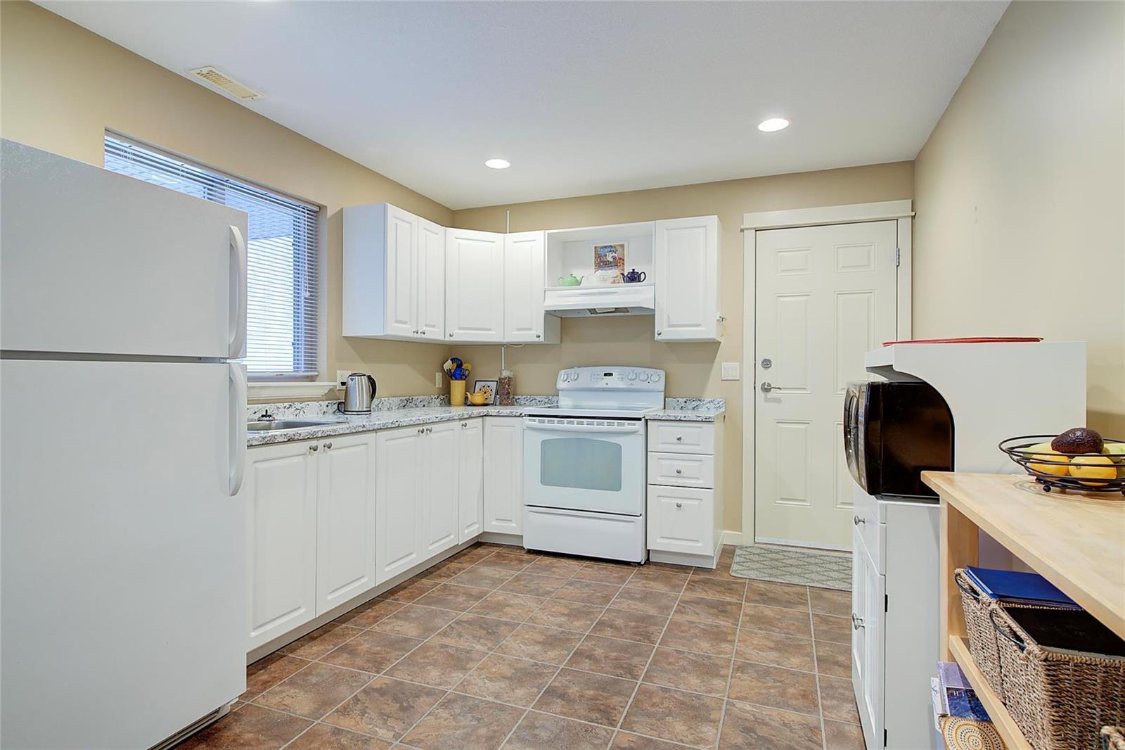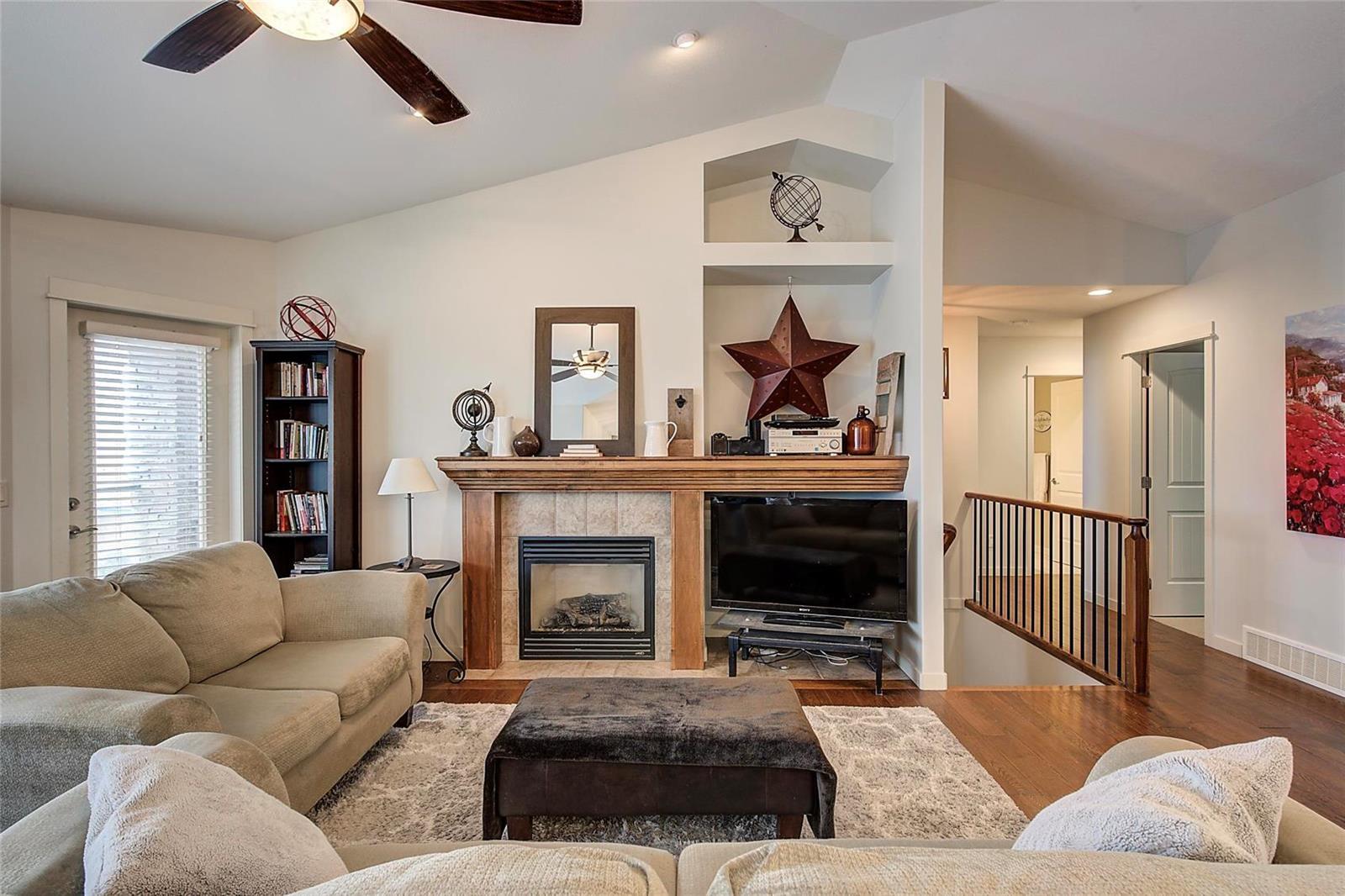 LAKE VIEWS & A LEGAL SUITE! First time on the market! This freshly painted, well-appointed home has a fantastic layout with three bedrooms up, and a great view of the lake from the primary bedroom, living area and kitchen. There is an office just off the entrance (could be a bedroom) and a legal one bedroom suite at ground level. The suite entry is on the ground floor - with no stairs - making it ideal for ageing parents, tenants or students alike! Enjoy the large private backyard, complete with a (negotiable) luxury swim spa, and a separate covered outdoor patio area for your tenant. Upstairs, you'll enjoy a beautiful lake view from your living room, which has a cosy gas fireplace and large east-facing patio to enjoy all summer long. The open plan kitchen has stainless steel appliances, a brand new dishwasher, new carpet on the stairs, and a lovely bright dining area! The back door opens out to a barbeque area and back patio, which leads you down into the yard. Ask about the potential for adding onto the driveway to park your boat or RV. Quiet no-through wide road with plenty of street parking. This is a GREAT DEAL with a mortgage helper, in a fantastic neighbourhood! Virtual tour & floor plans are available. Book your showing today! (id:22211)