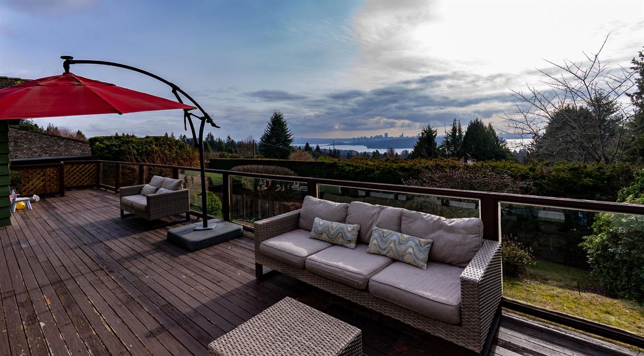 Absolutely prime West Van location. The nice level lot over 13,000 Sqft with unobstructed View of Ocean, Downtown, Lion's gate bridge and Stanley Park. Well maintained cozy house locates at a quiet cul-de-sa with great condition. The house offers 4 bedrooms and 3 bathrooms. Large decks area, beautiful gourmet kitchen, oak floors under carpet on main. Most windows have been updated, inground sprinkler system. Full height walk out basement with views and spacious back yard for family entertainment all year round. Mins drive to the Ridgeview Elementary, West Van Secondary, Park Royal Mall etc.