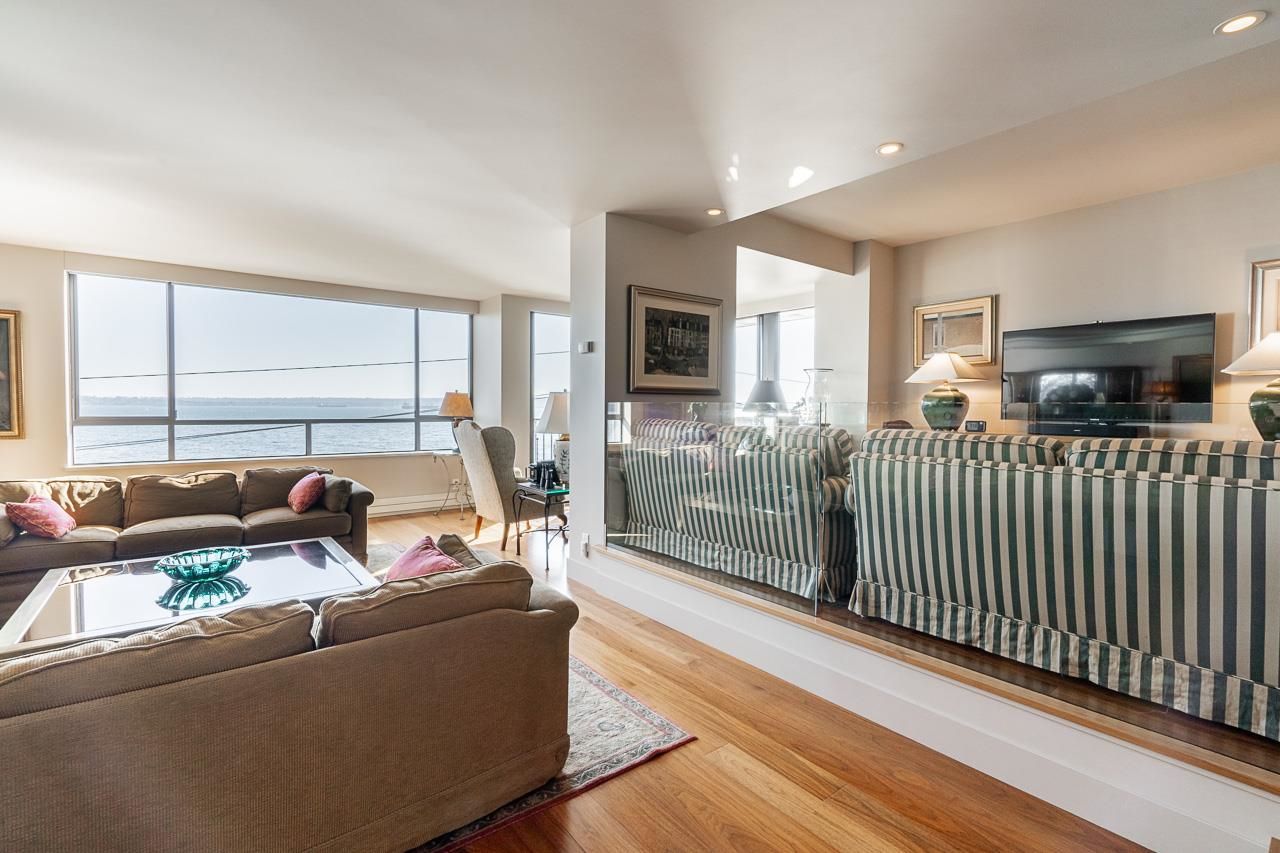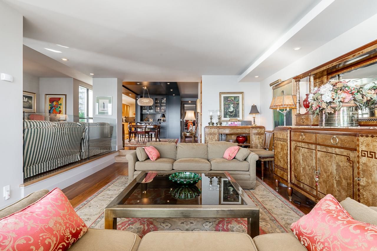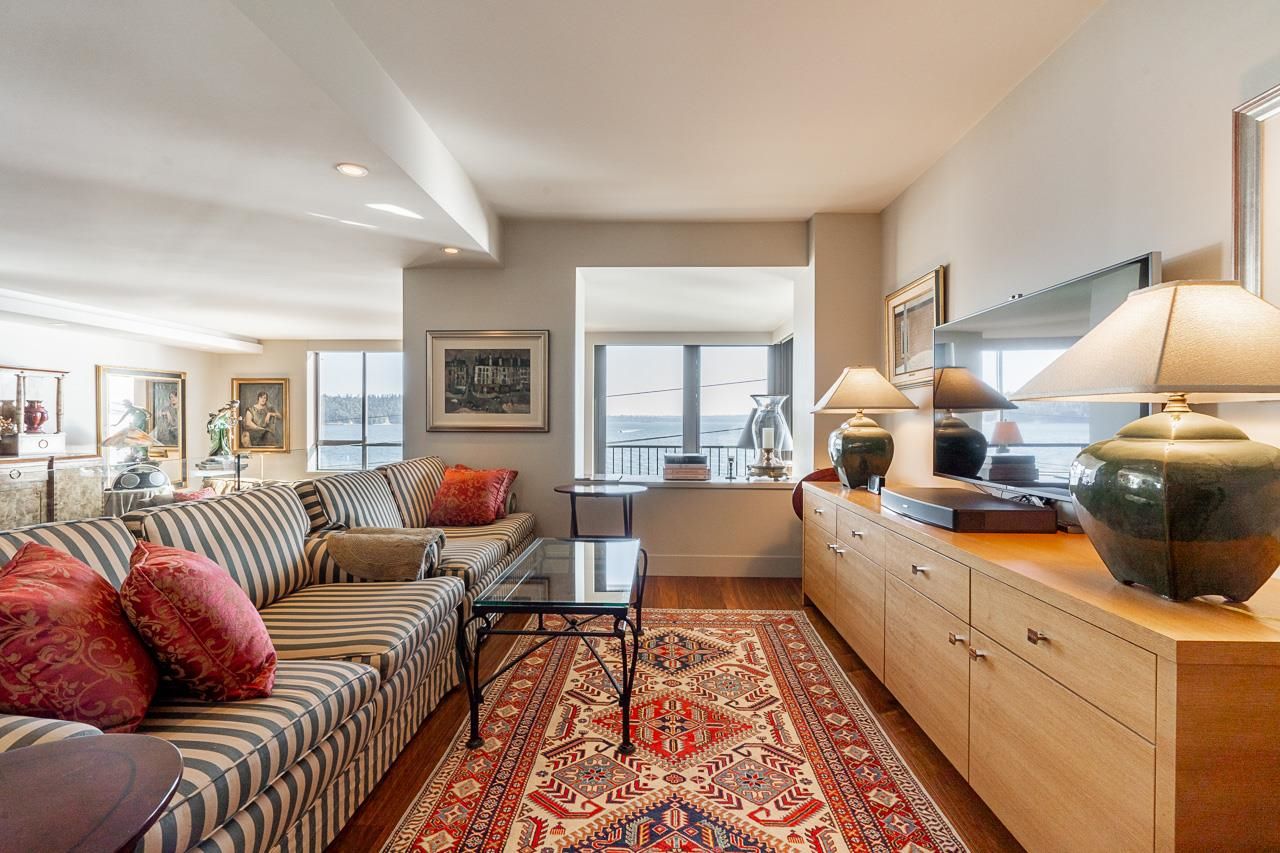 The Seawind - West Vancouver's premier waterfront condo residence. Spanning approximately 2,000 sq.ft., this luxurious unit boasts 2 spacious bedrooms and 2 pristine bathrooms. Its open design encompasses a formal living space, a cozy family room, and a captivating seaside lounge with panoramic ocean and city vistas. The kitchen is a culinary enthusiast's dream. Complete with in-unit laundry, dedicated storage, and two adjacent par