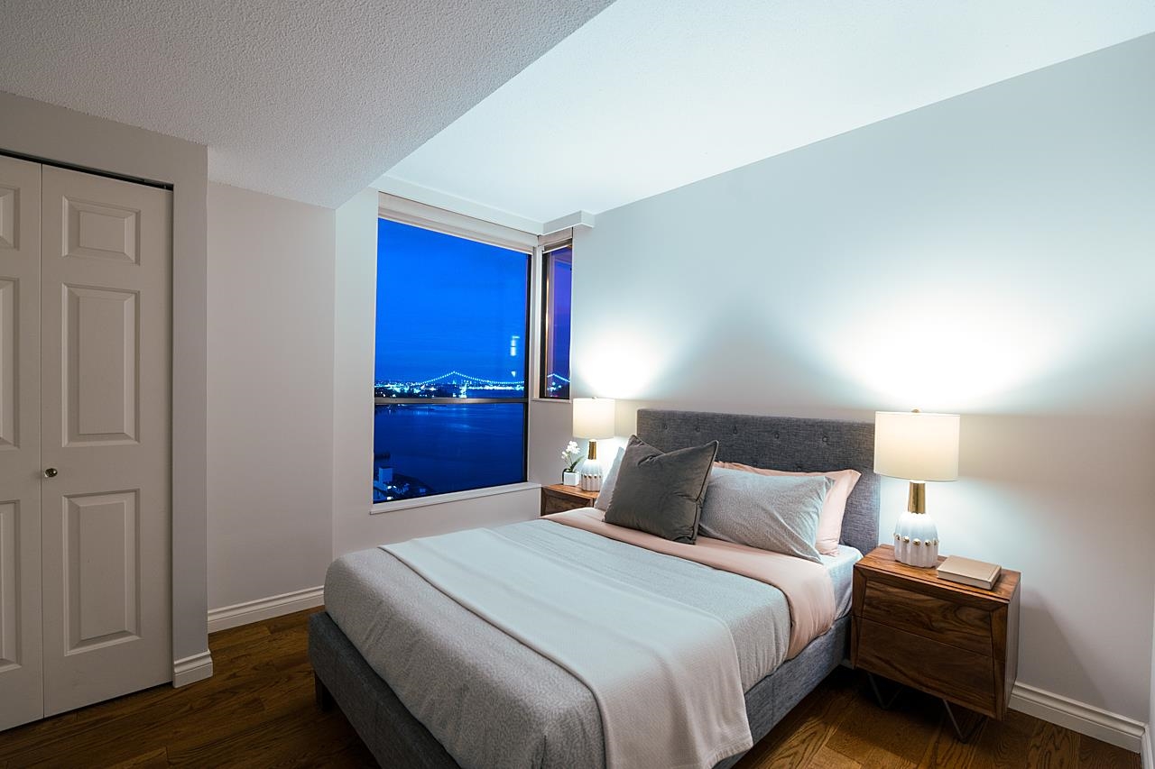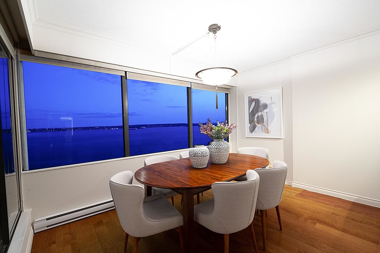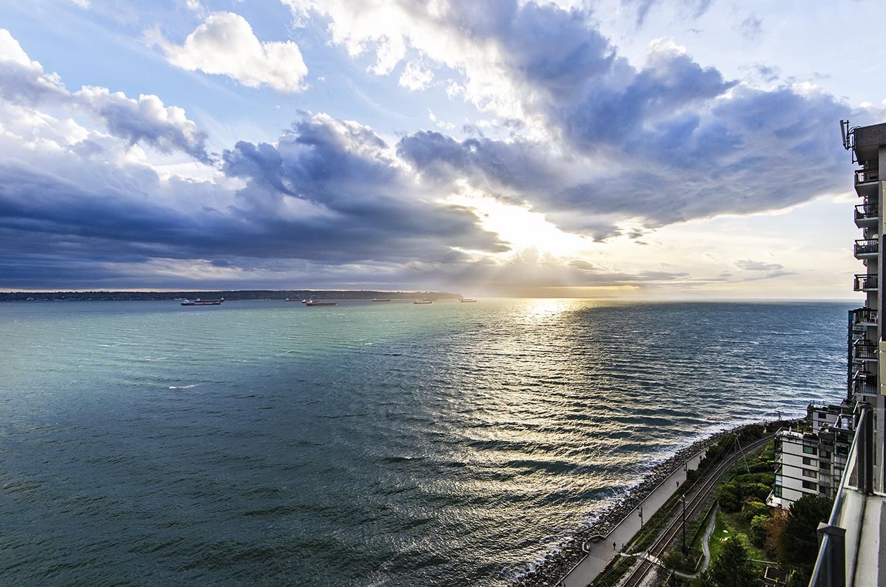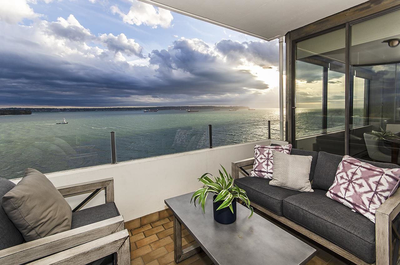 The SUB-PENTHOUSE at the Waterford! The 17th floor is above all neighbouring buildings. You can see forever - sunrises and sunsets! The South facing patio is protected from the ocean breezes and is a beautiful place to sit, meditate and watch the ships sail by. 3 large bedrooms and plenty of space for all your house furniture. Enclosed north balcony works as a den. Hardwood floors. Fireplace. Live in building manager also acts as concierge and oversees the gorgeous new lobby. Bring your cat or small dog!