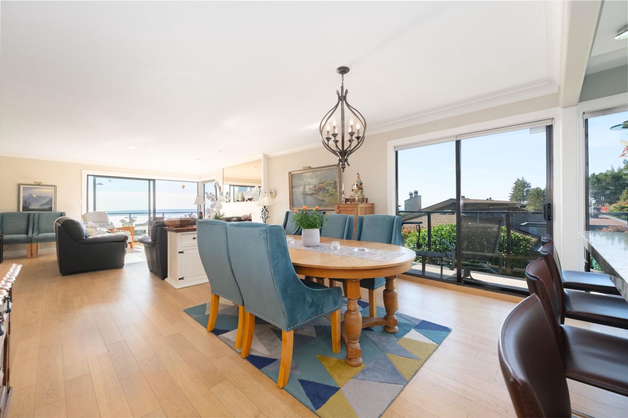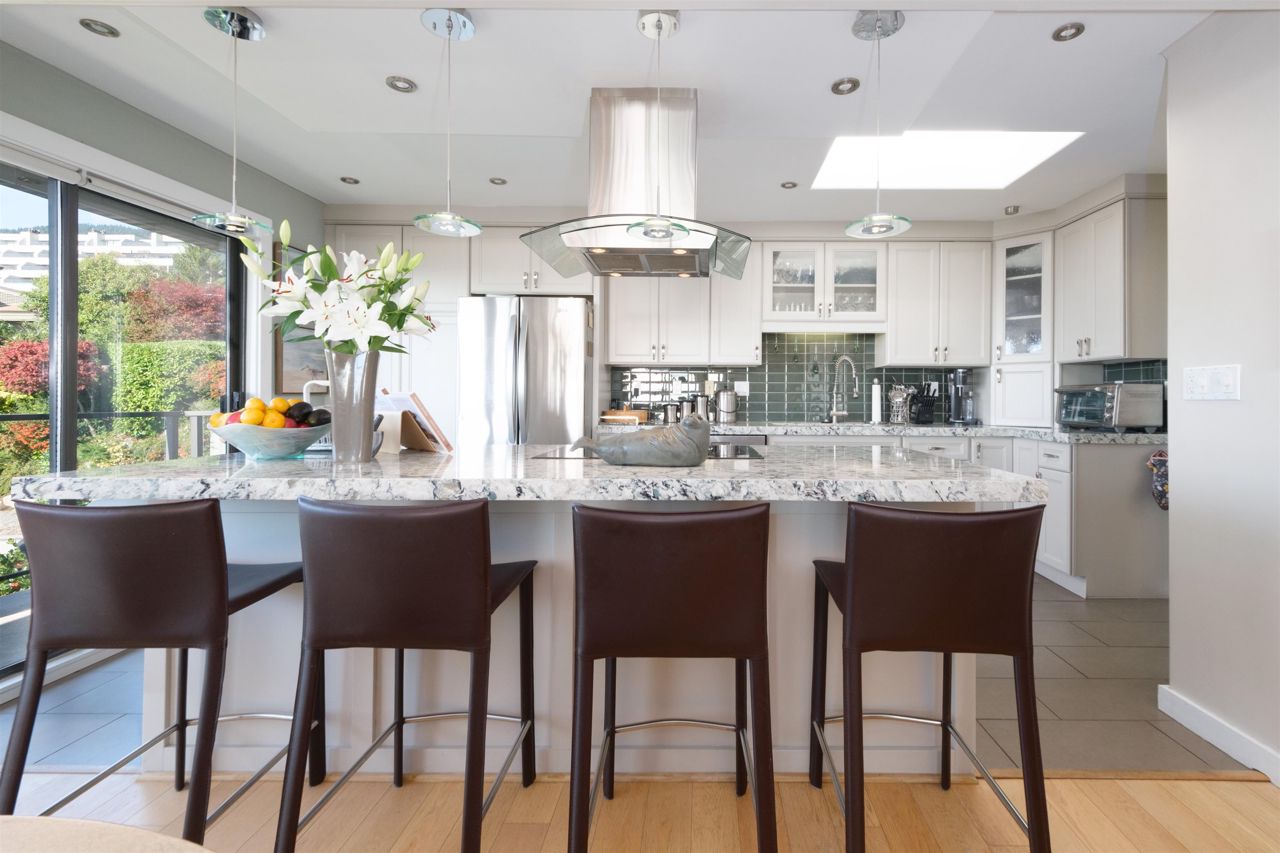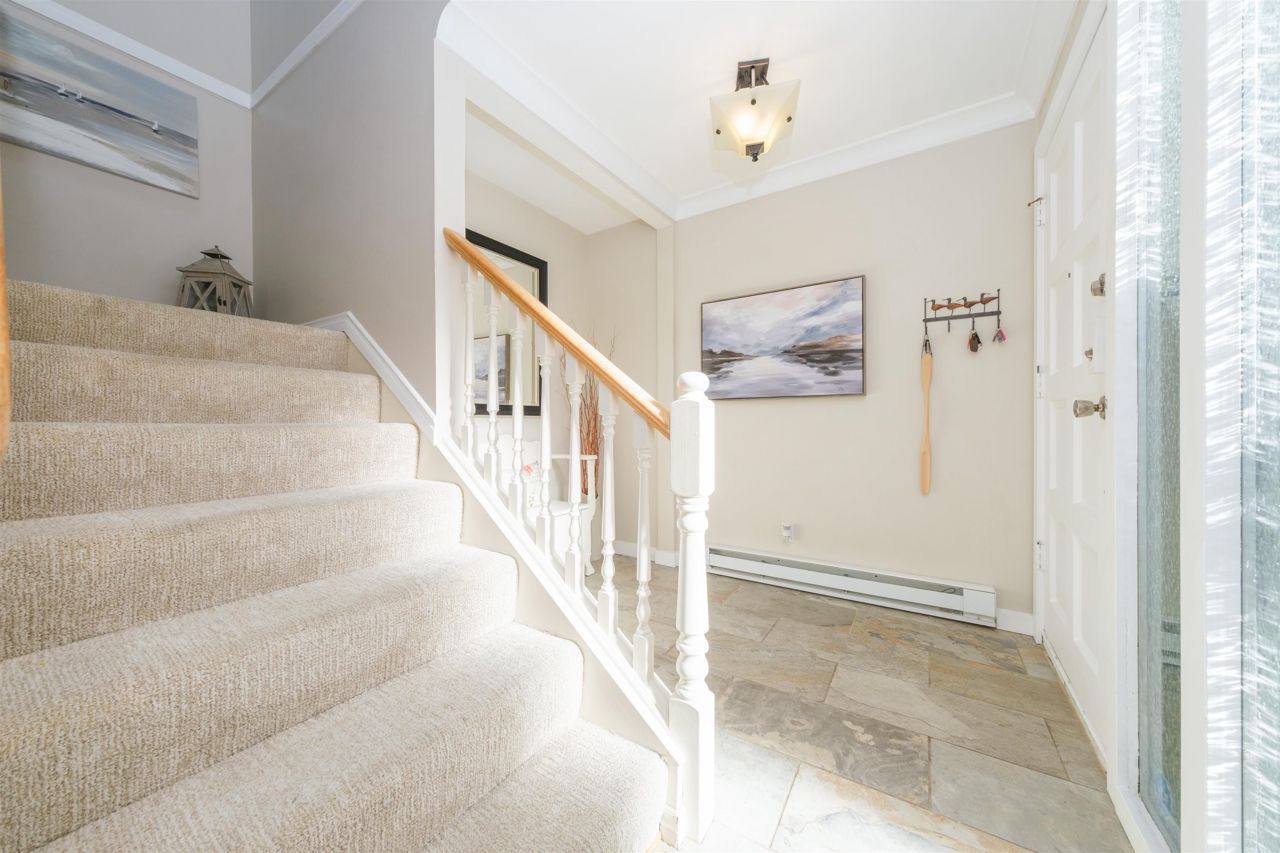 Discover the finest townhouse within this complex. This corner home boasts breathtaking ocean views and is bathed in natural light thanks to numerous skylights and expansive south-facing doors and windows on three sides. With three bedrooms and three full bathrooms, this home is beautifully and tastefully renovated. Cozy up to the wood-burning fireplace in the living room. The gourmet-style kitchen is equipped with solid Quartz Caesar Stone countertops, Martha Stewart cabinets and an induction stovetop, perfect for hosting elegant dinner parties. Abundant storage space, including your own workshop. Embrace the elegance of 2,550 square feet of living space, (as per the strata plan). Pet friendly!!!. Huge amount of Storage!!!