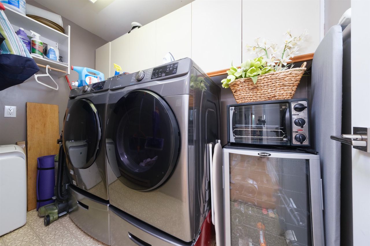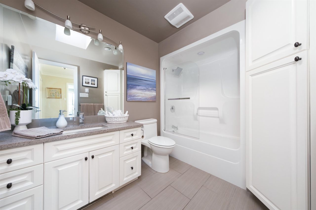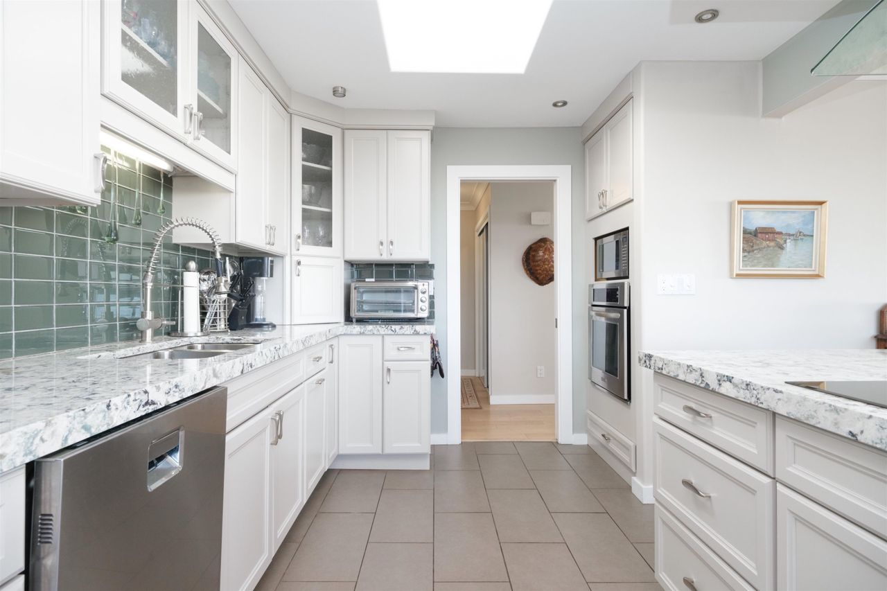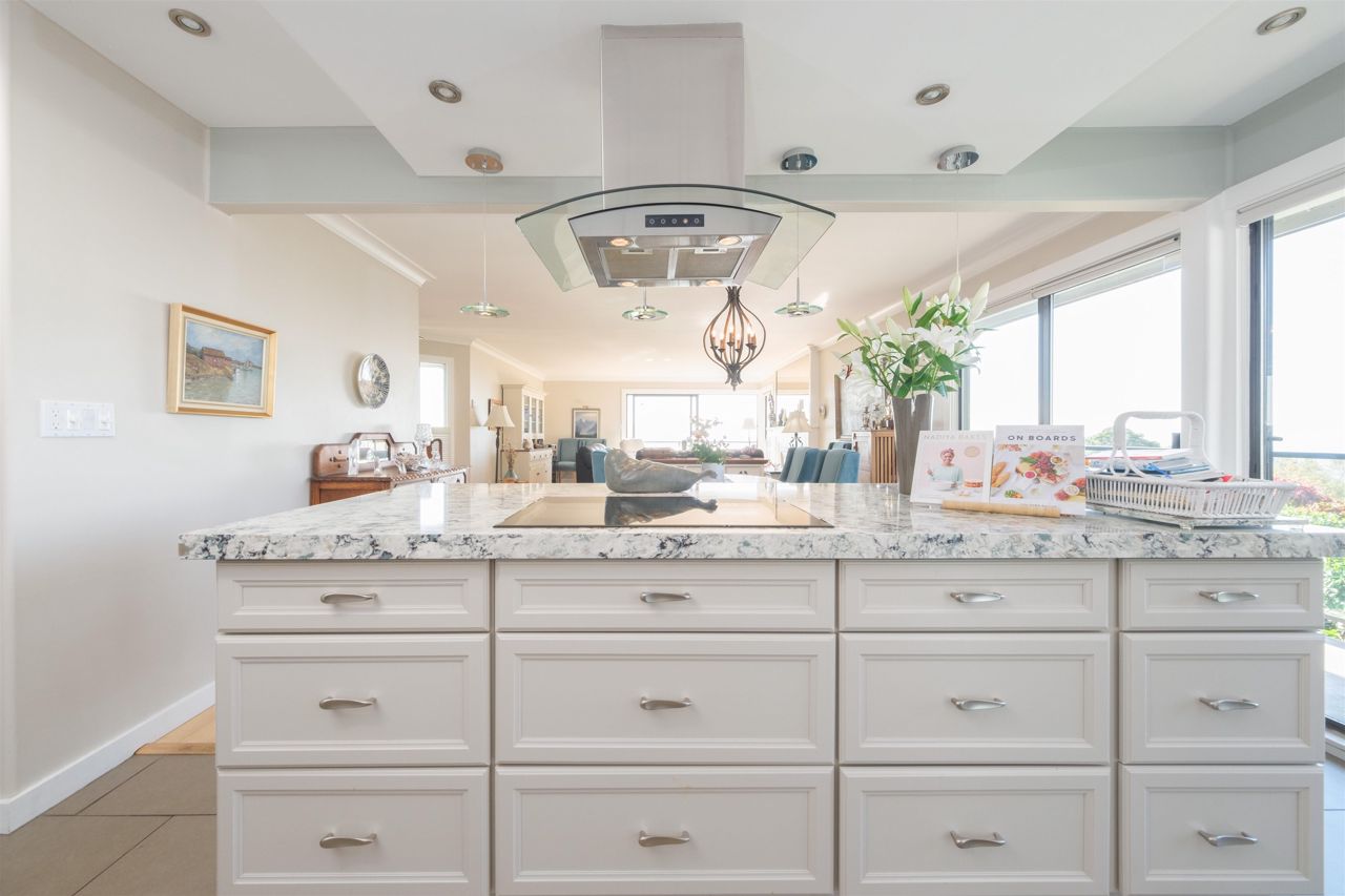 Discover the finest townhouse within this complex. This corner home boasts breathtaking ocean views and is bathed in natural light thanks to numerous skylights and expansive south-facing doors and windows on three sides. With three bedrooms and three full bathrooms, this home is beautifully and tastefully renovated. Cozy up to the wood-burning fireplace in the living room. The gourmet-style kitchen is equipped with solid Quartz Caesar Stone countertops, Martha Stewart cabinets and an induction stovetop, perfect for hosting elegant dinner parties. Abundant storage space, including your own workshop. Embrace the elegance of 2,550 square feet of living space, (as per the strata plan). Pet friendly!!!. Huge amount of Storage!!!