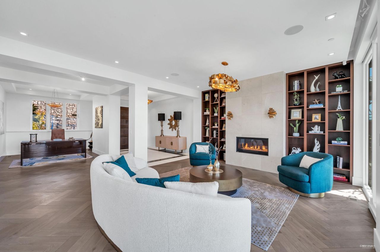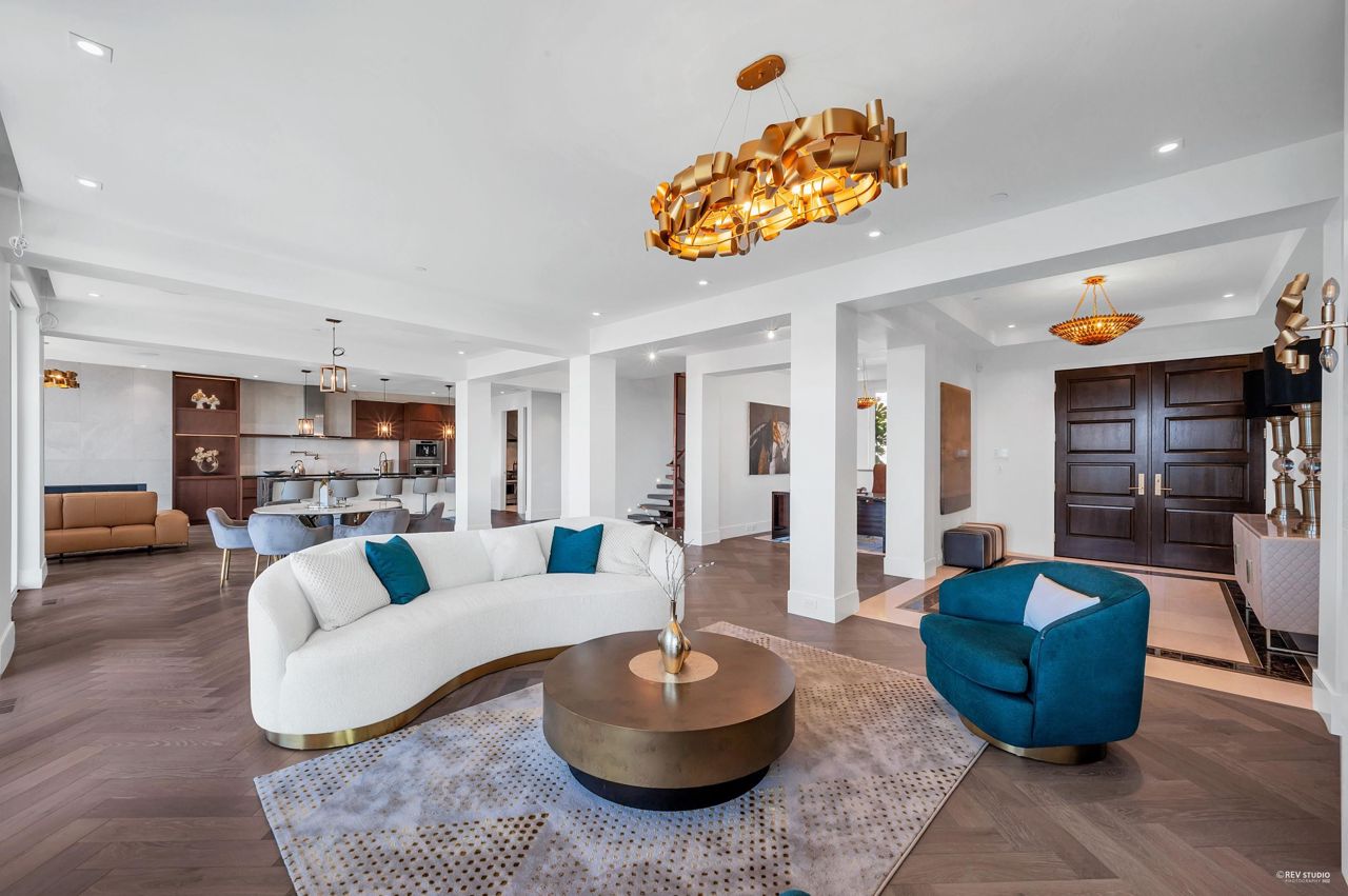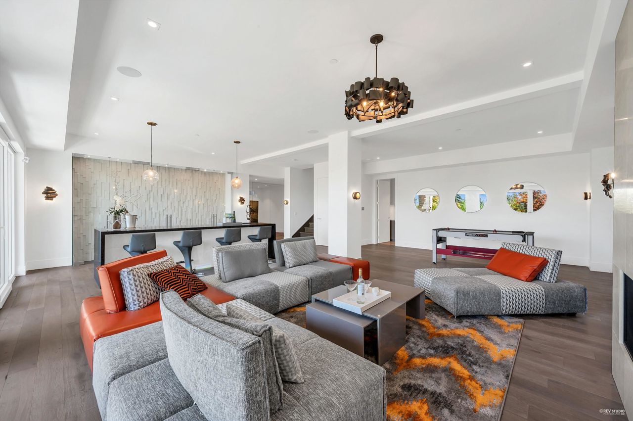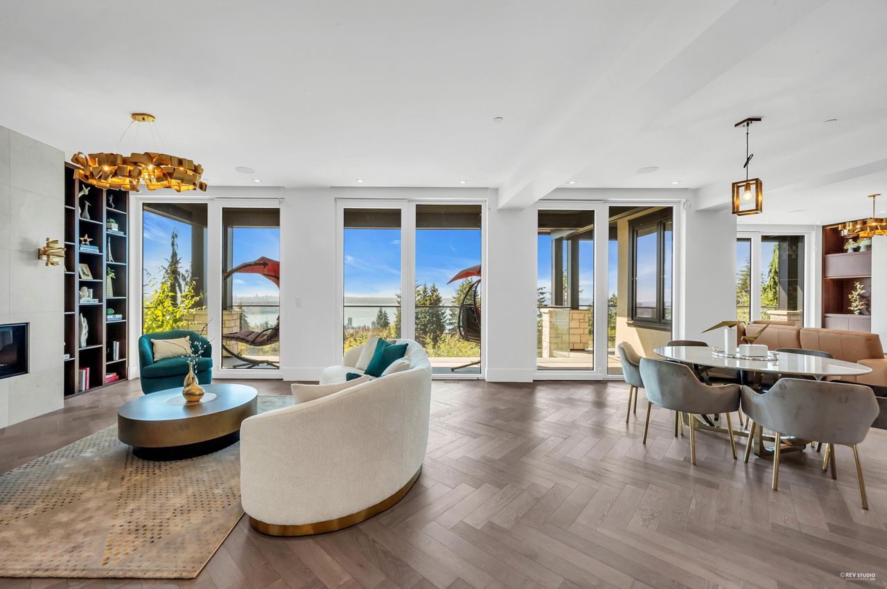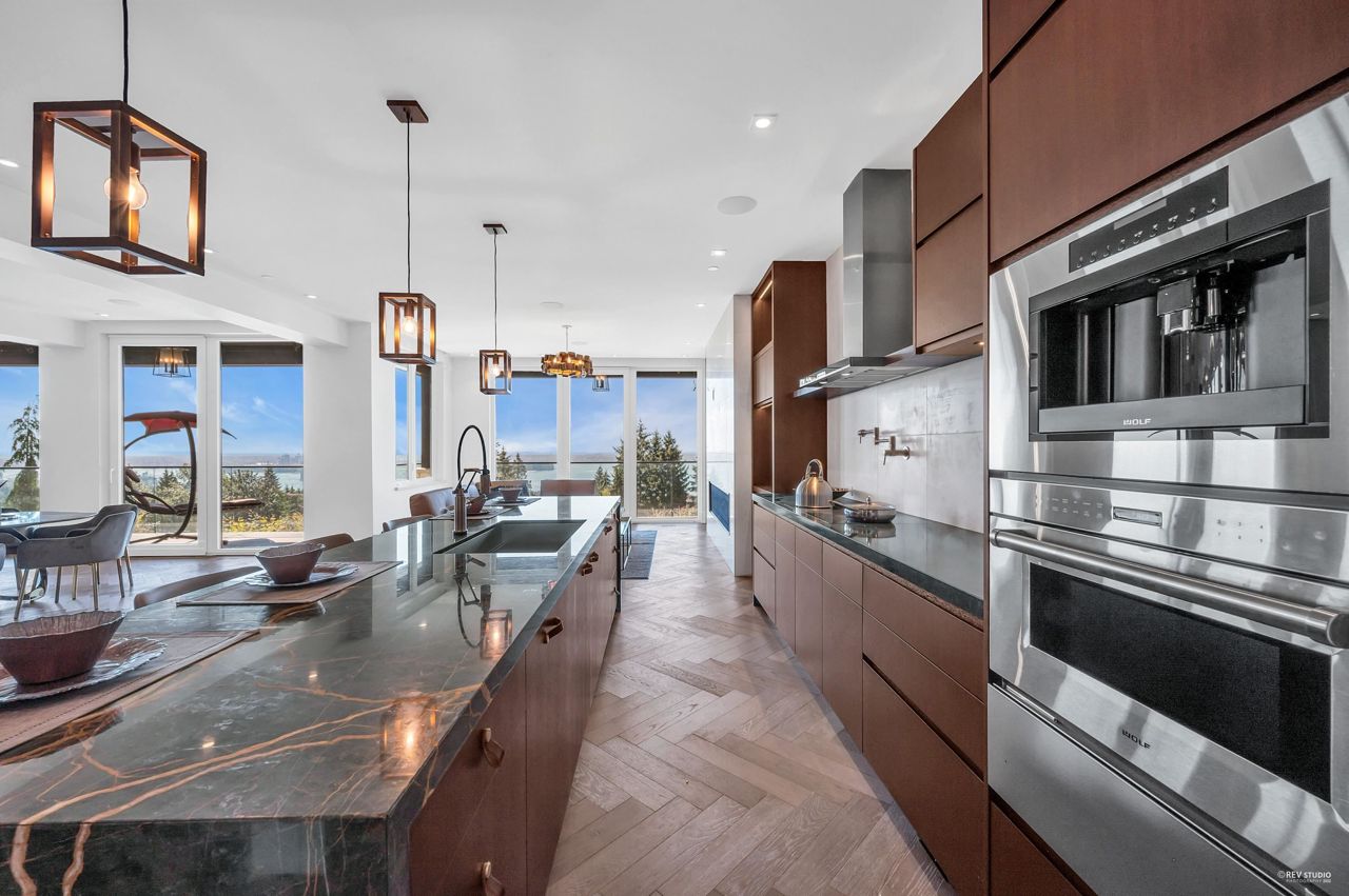 Proudly introducing Amber Rise Estates! This home design inspired by the legacy of LOUIS VUITTON w/ a unique interpretation of the remarkable beauty of Canada’s West Coast. Over 6,000sqft of luxury living on 11,314sqft lot that tranquility & serenity w/ panoramic water & city views. Open concept main feat. comfort living & dining, herringbone flooring flr, custom lights, cooper staircase, signature fireplace, gourmet dream kitchen w/ 14 ft marble island, leather handles drawers, top line appliances + wok kitchen all open onto a lg patio w/ breathtaking view. 4 ensuite beds upstairs, incl. master w/ W.I.C. & spa-like ensuite. Lower offers great entertainment area w/ wet bar & wine cellar, media rm, exercise rm w/ sauna. Close to everything!