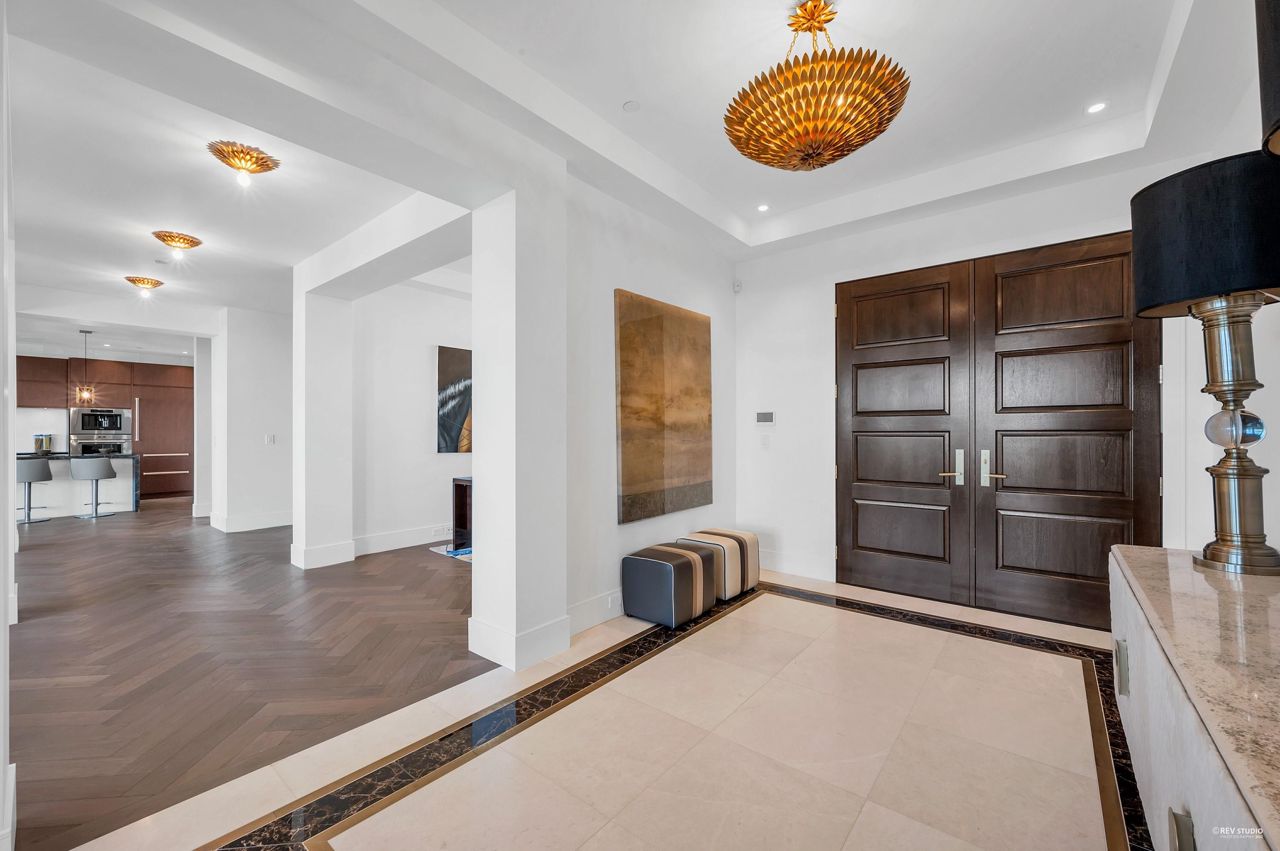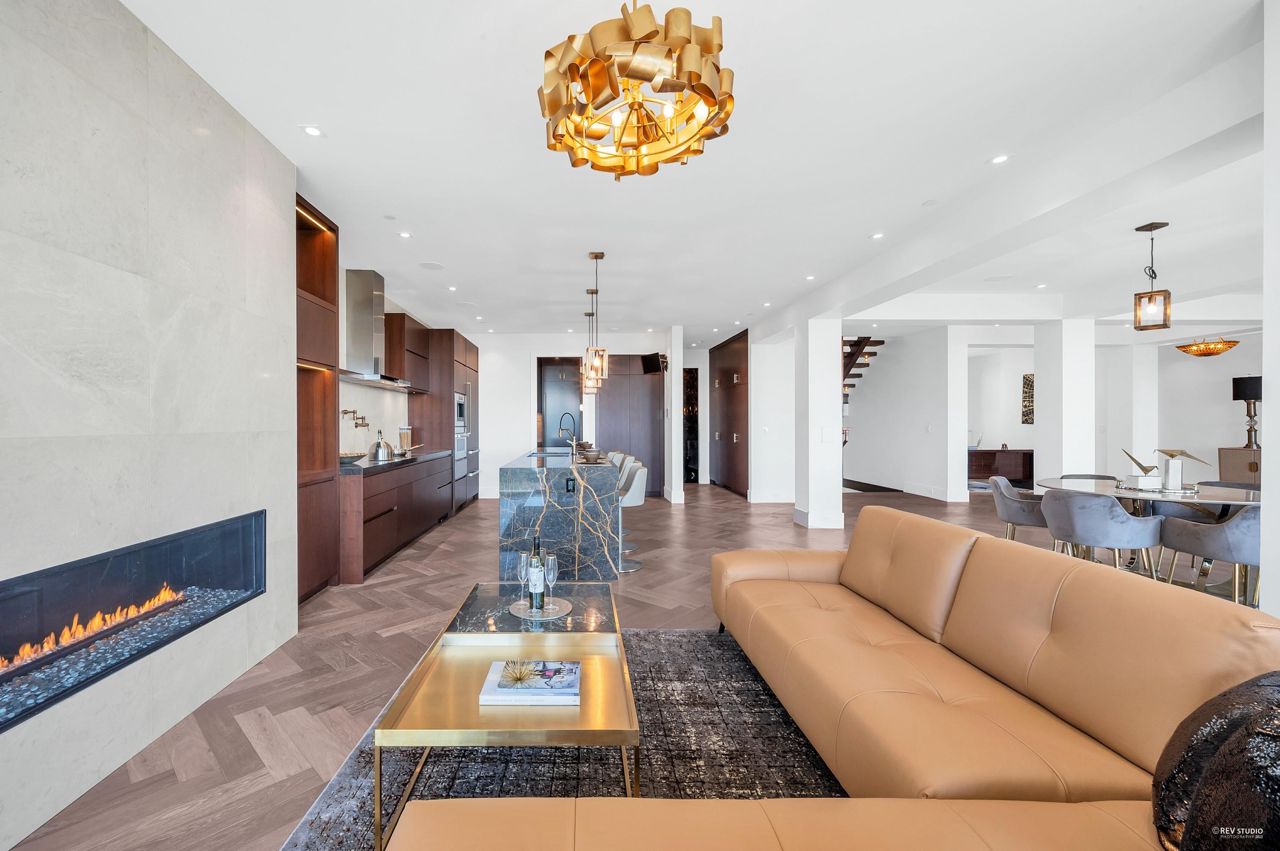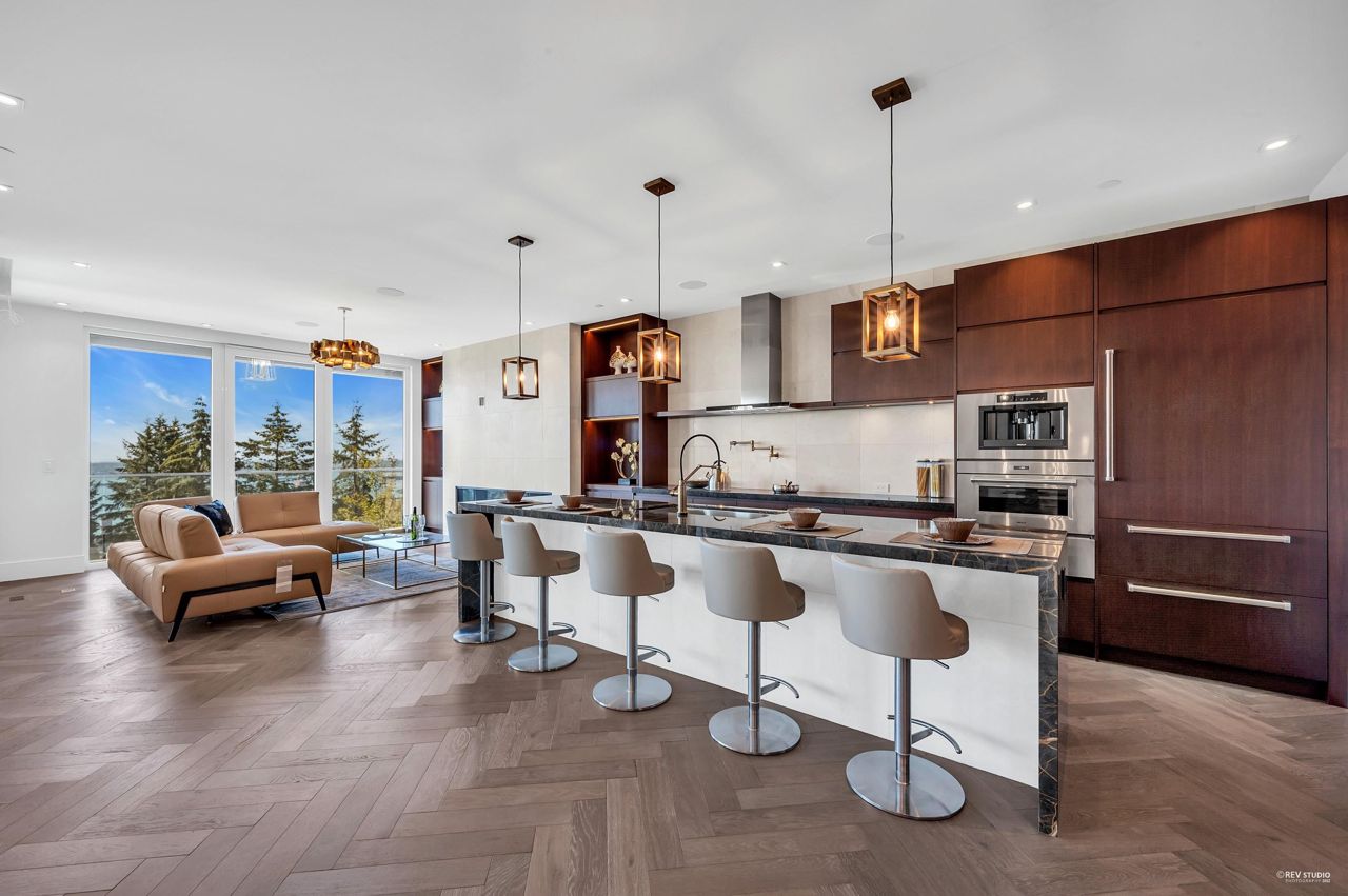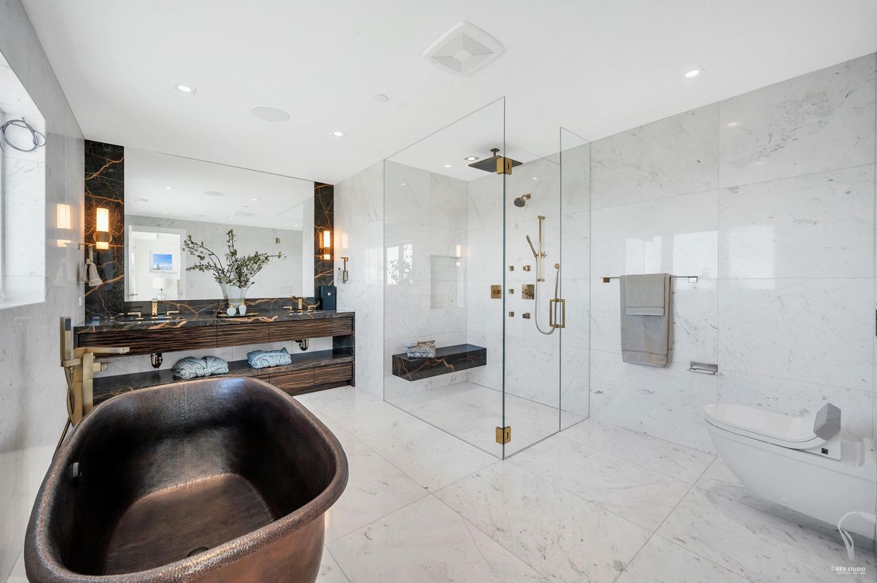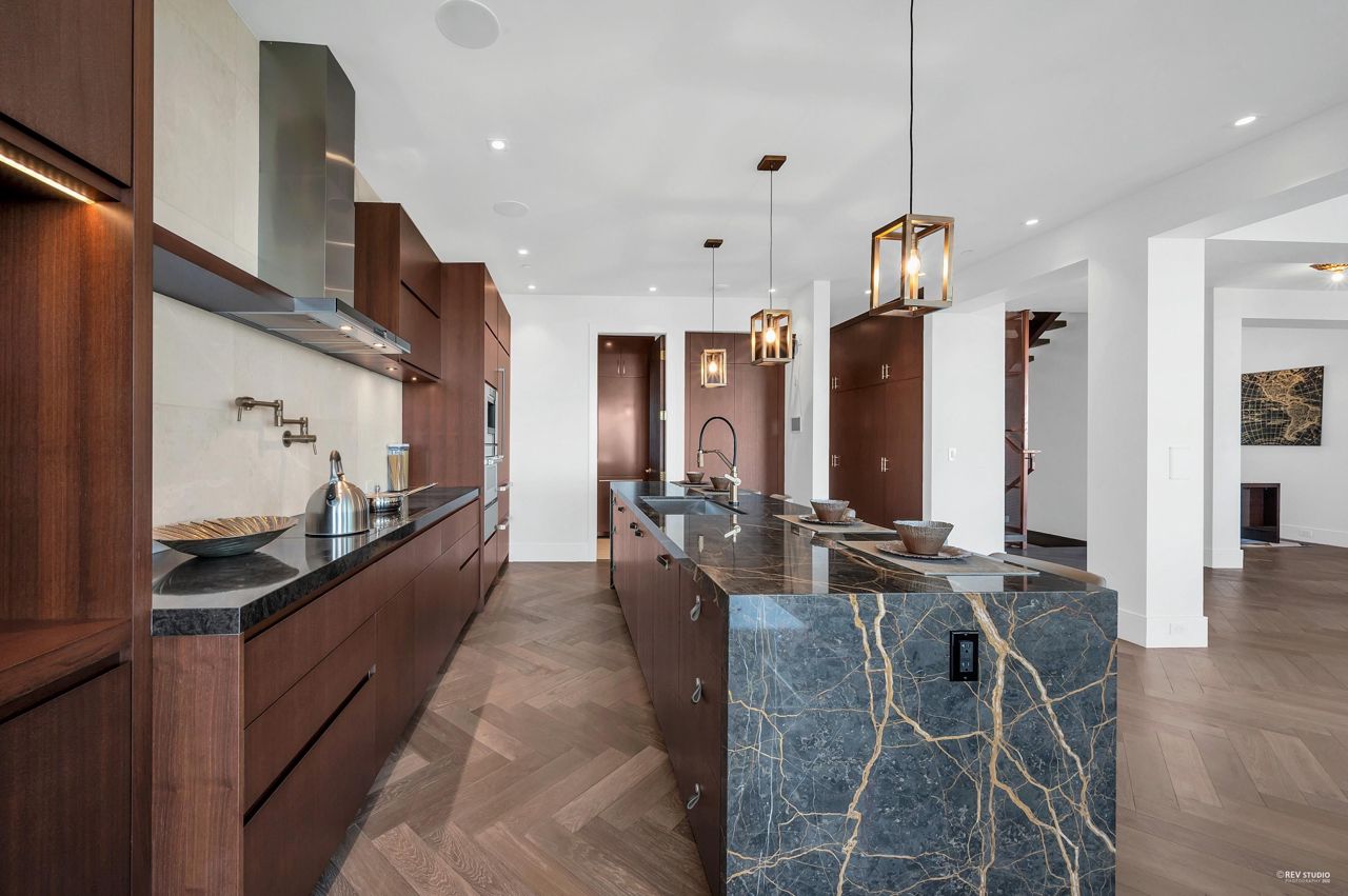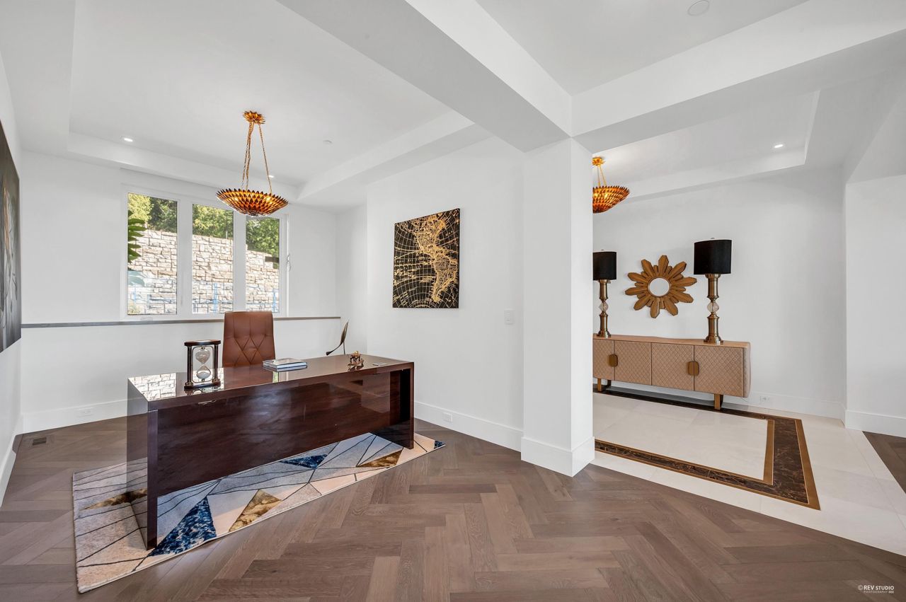 Proudly introducing Amber Rise Estates! This home design inspired by the legacy of LOUIS VUITTON w/ a unique interpretation of the remarkable beauty of Canada’s West Coast. Over 6,000sqft of luxury living on 11,314sqft lot that tranquility & serenity w/ panoramic water & city views. Open concept main feat. comfort living & dining, herringbone flooring flr, custom lights, cooper staircase, signature fireplace, gourmet dream kitchen w/ 14 ft marble island, leather handles drawers, top line appliances + wok kitchen all open onto a lg patio w/ breathtaking view. 4 ensuite beds upstairs, incl. master w/ W.I.C. & spa-like ensuite. Lower offers great entertainment area w/ wet bar & wine cellar, media rm, exercise rm w/ sauna. Close to everything!