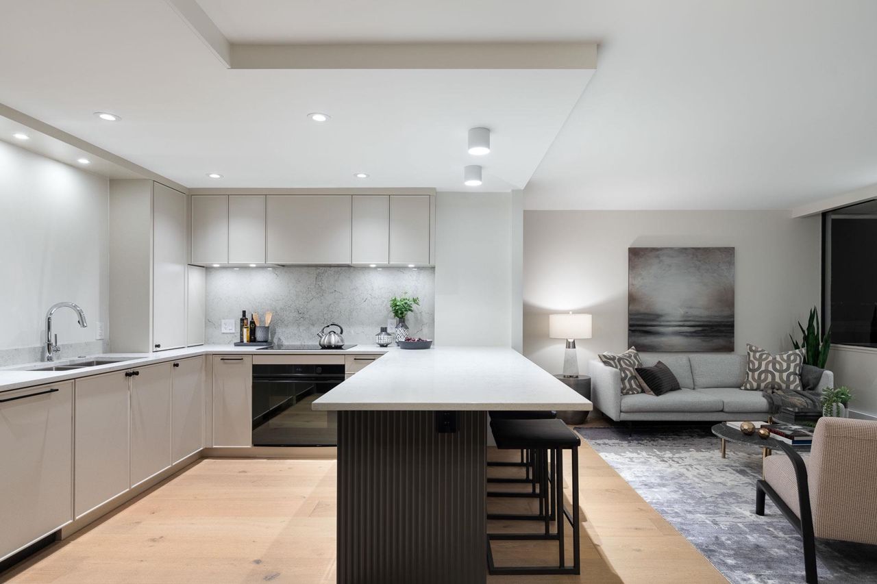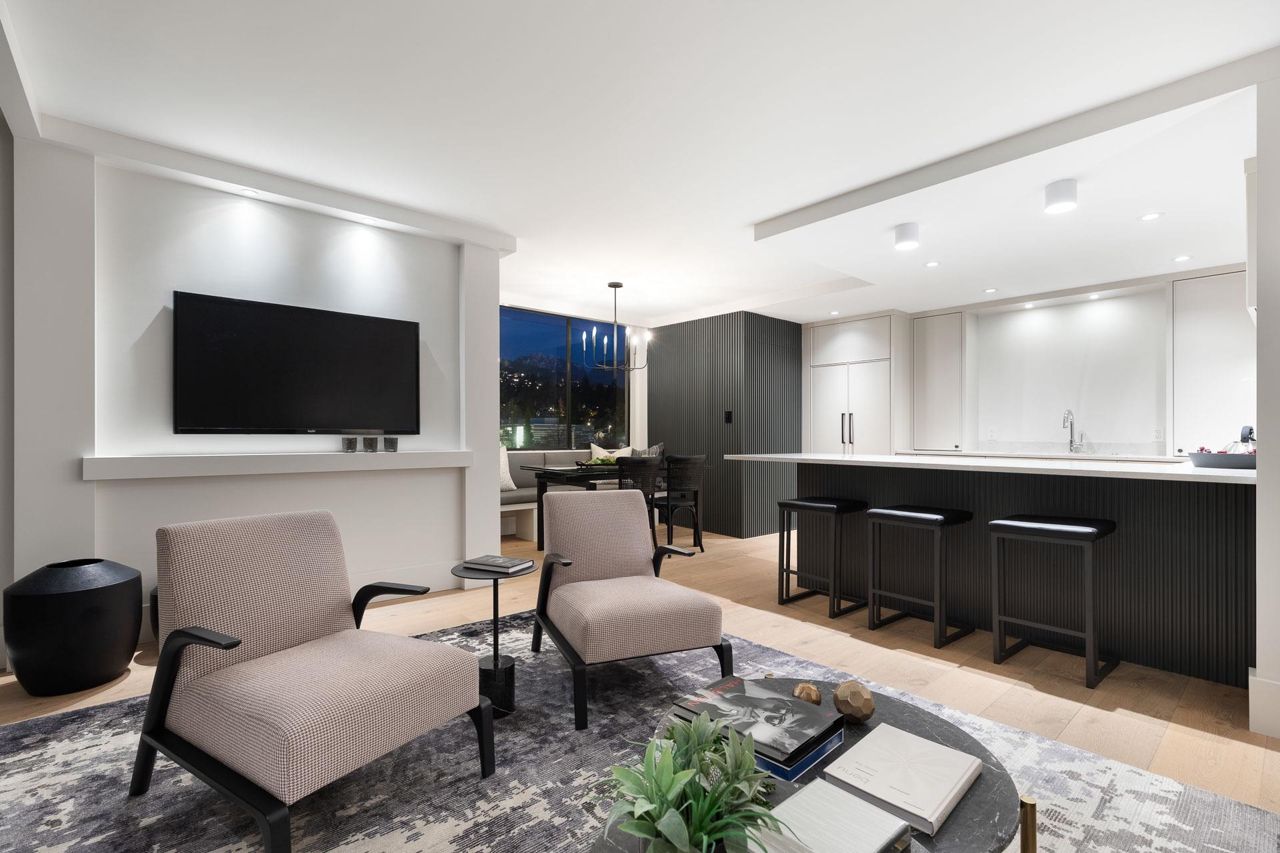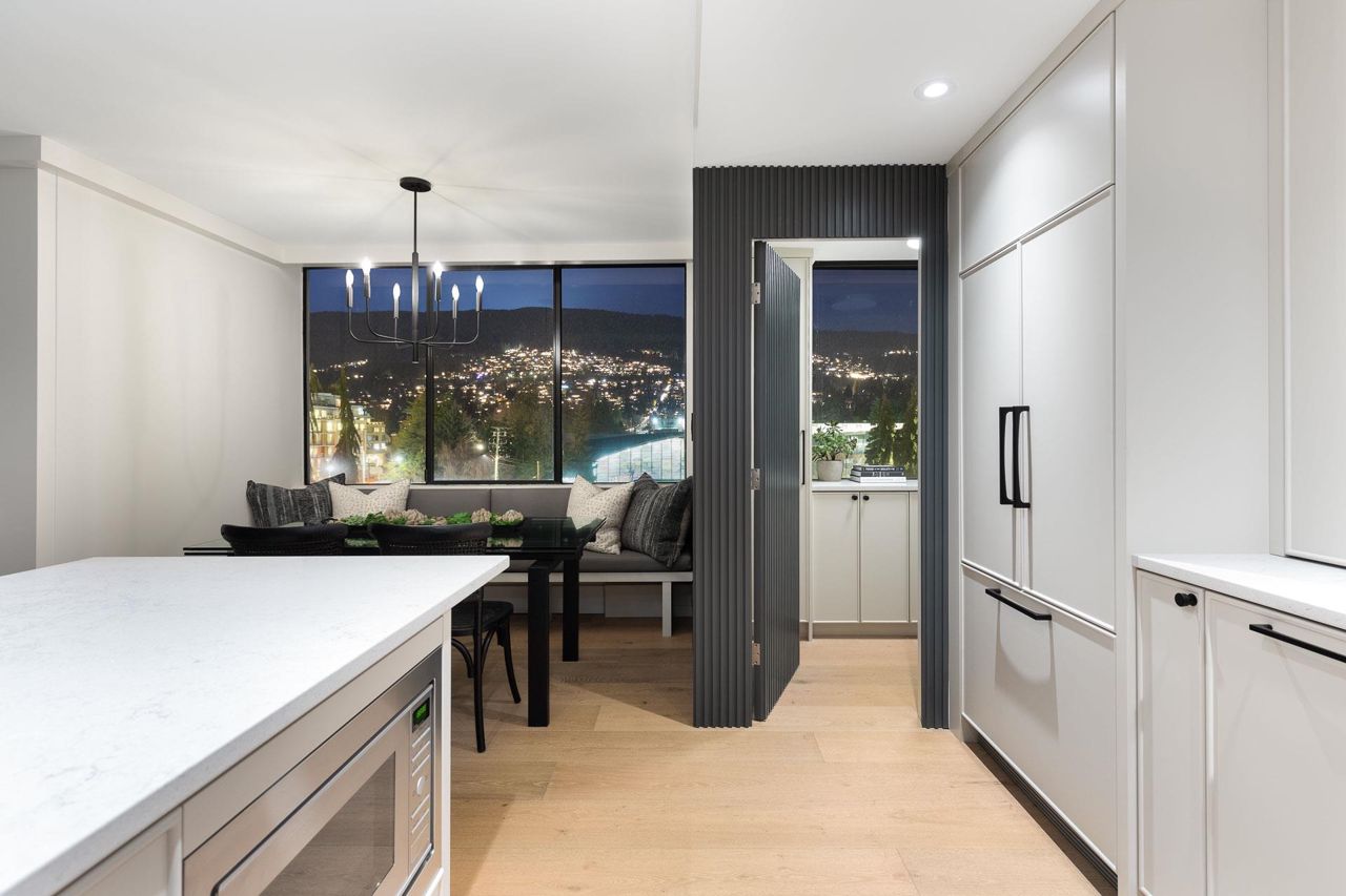 Beautifully redesigned & exceptionally appointed by Linda & Michelle Burger this stunning suite has beautiful views from every room and is located in prime Dundarave just steps to the Seawall, restaurants and WV Community & Seniors Centres.What was once your average 2 bedroom/2bathroom apartment has now been transformed into a stunning suite that shows like new with superior finishings, gorgeous gourmet kitchen with a walk-in pantry, beautiful living & dining areas with wide plank flooring that open onto a pretty exterior deck. The spacious bedrooms have amble separation for privacy, two beautifully updated spa-like bathrooms, stunning entry foyer plus a laundry “room”. With only three suites per floor, two elevators and a lovely outdoor pool setting this is the perfect place to call home!