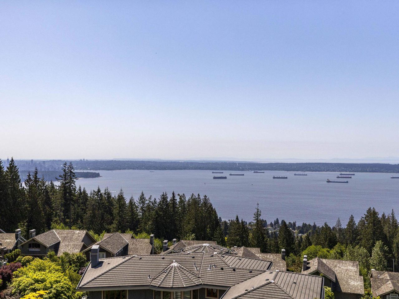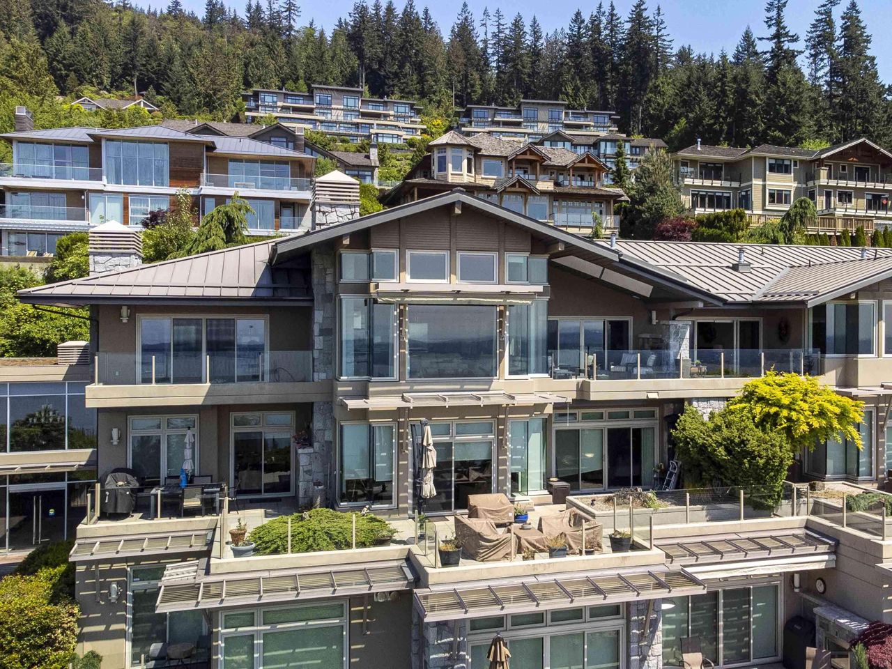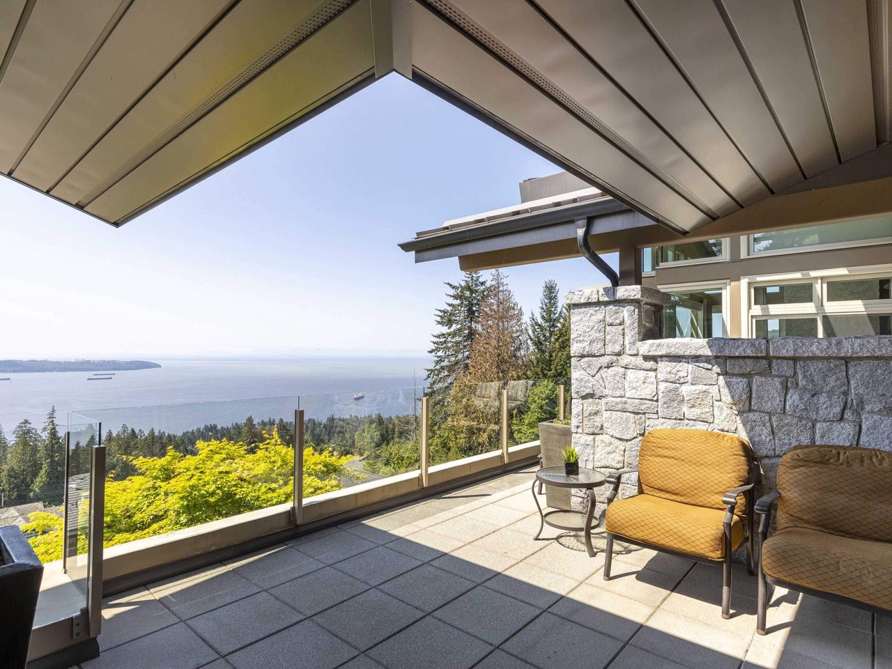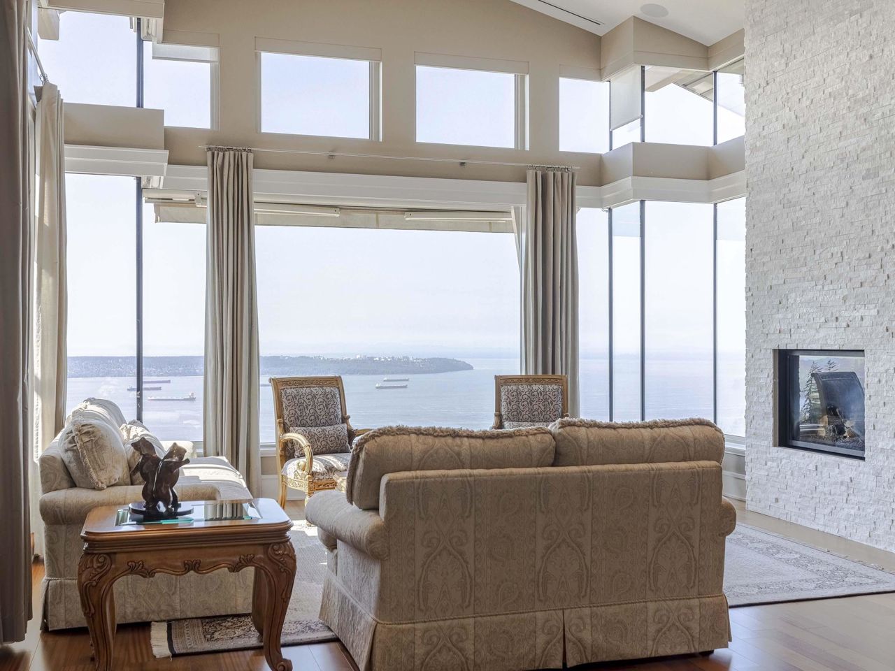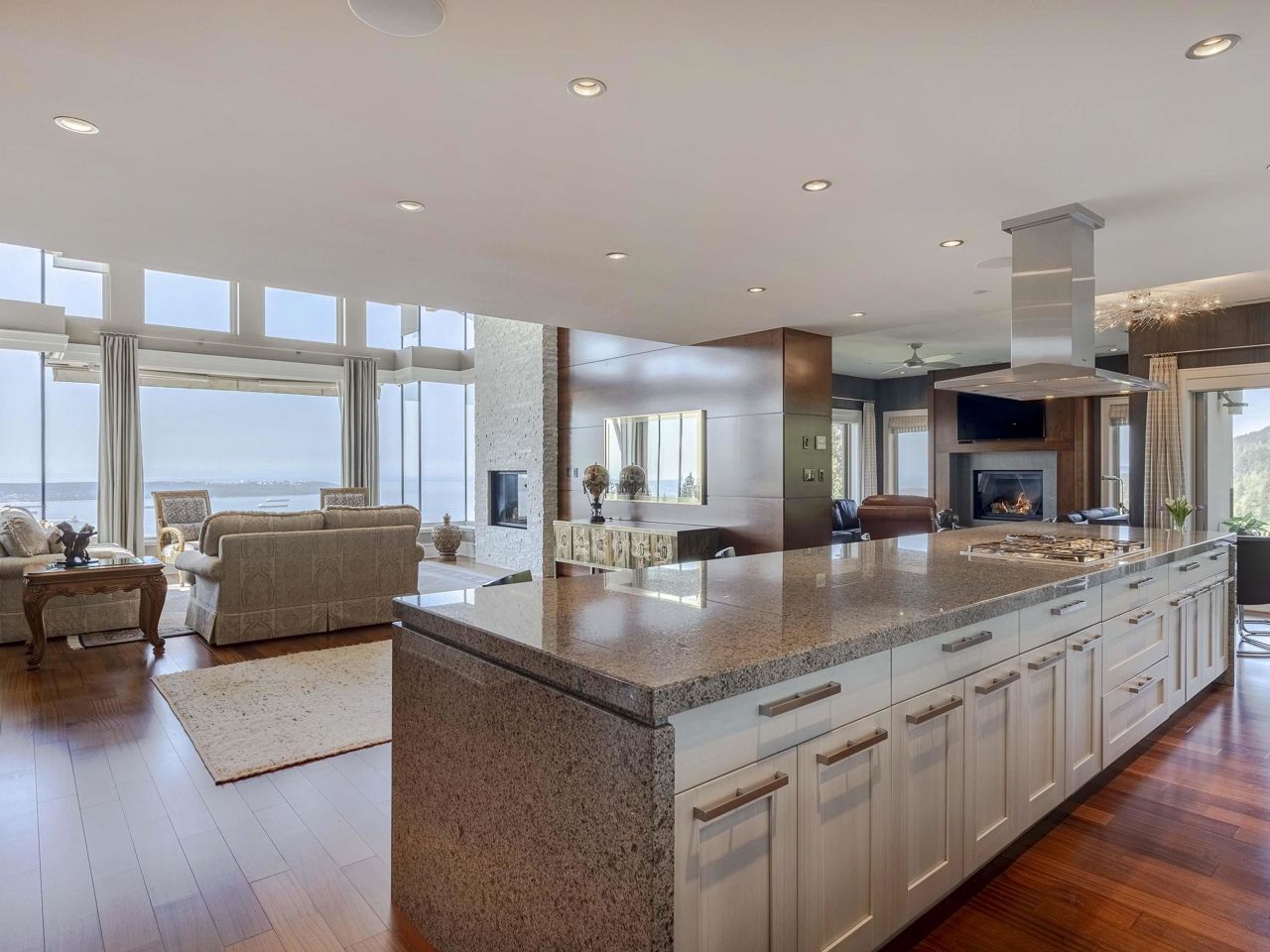 World Class Penthouse in The Aerie–This penthouse is one of eight executive residents built by the prestigious British Pacific Properties in the exclusive Whitby Estate, West Vancouver. This spectacular top floor end unit boasts an expansive one level open plan with a private elevator to your enclosed garage. This former show home features sweeping panoramic views, impressive 16’ high ceiling over the living room, floor to ceiling windows with stunning ocean, mountain & city views. Gourmet kitchen features an oversized granite island, perfect for entertaining your friends & family.