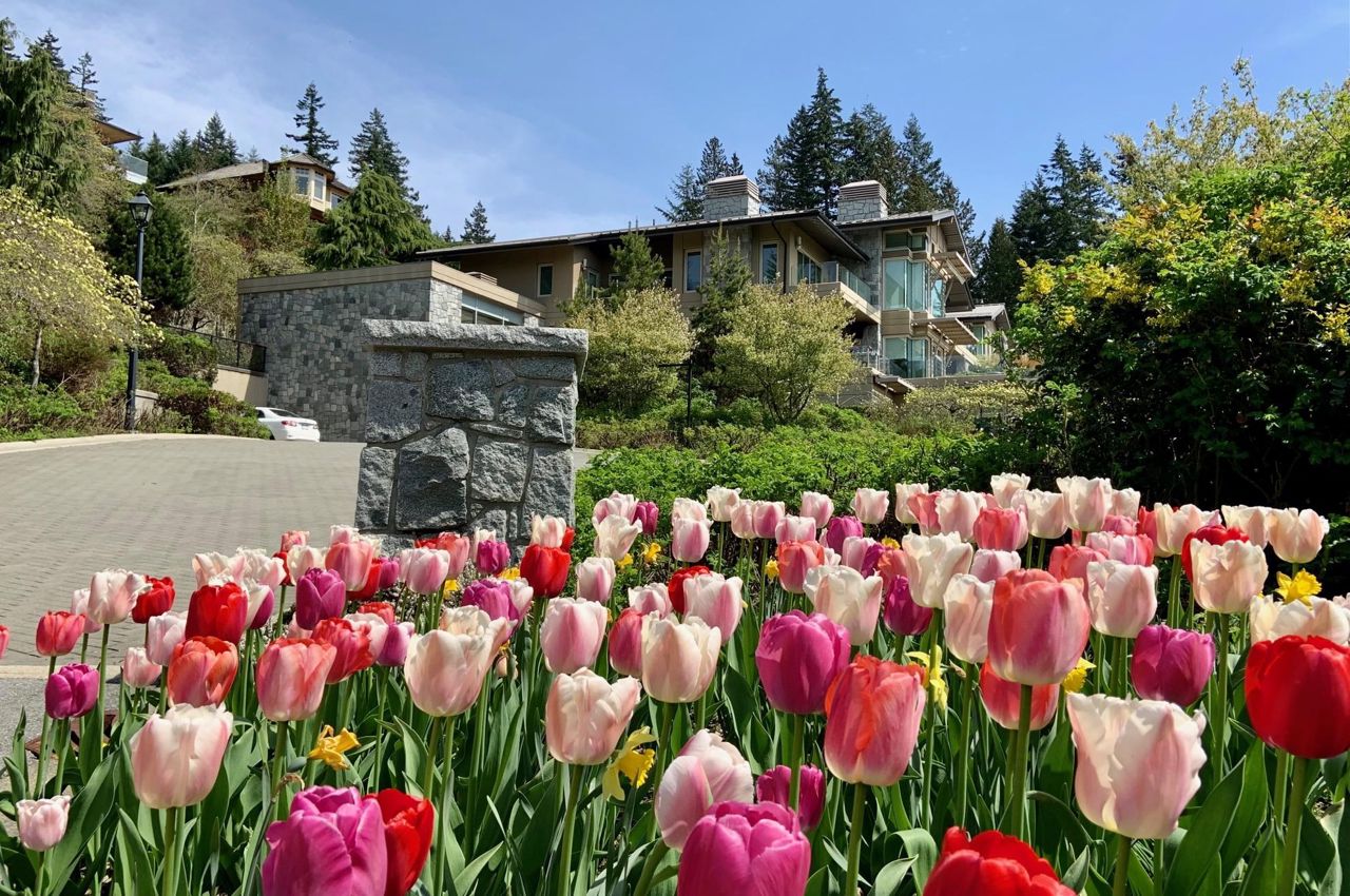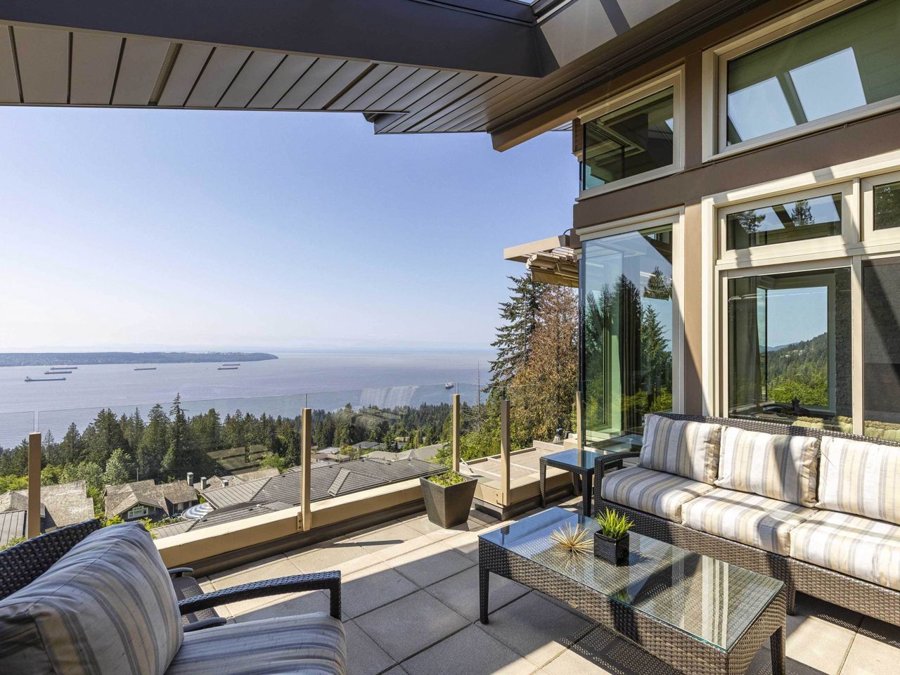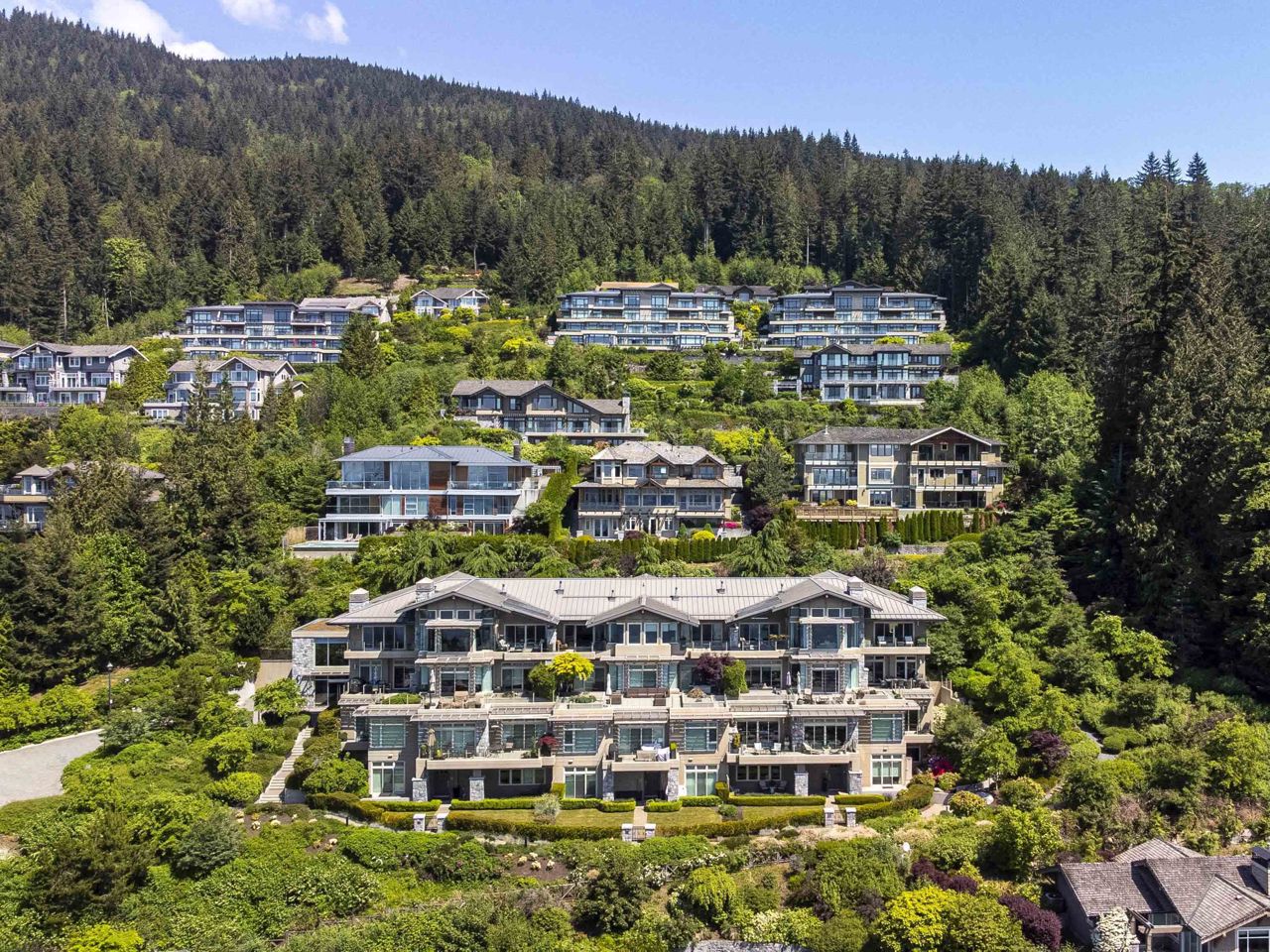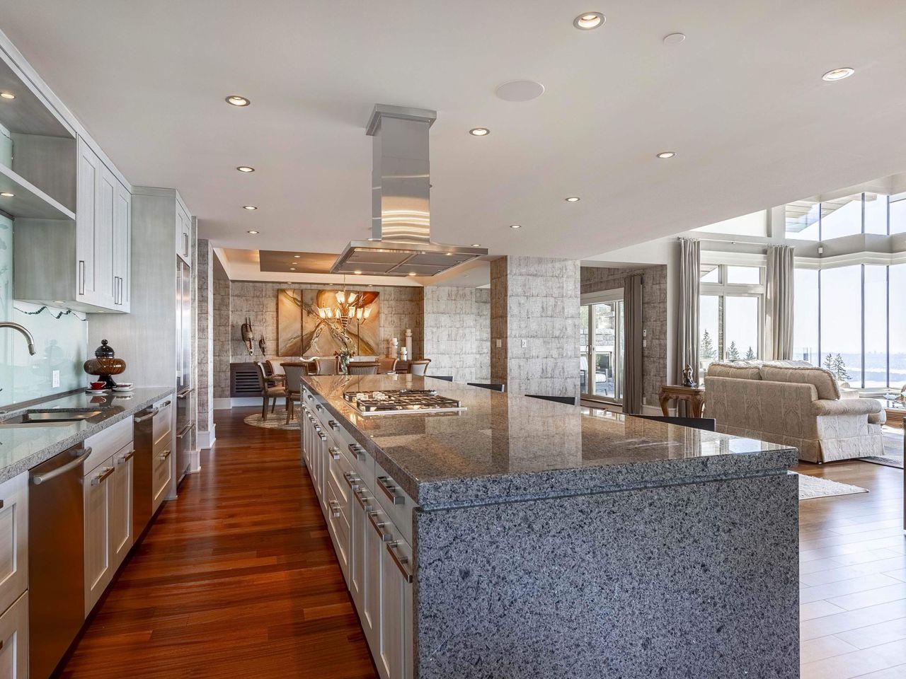 World Class Penthouse in The Aerie–This penthouse is one of eight executive residents built by the prestigious British Pacific Properties in the exclusive Whitby Estate, West Vancouver. This spectacular top floor end unit boasts an expansive one level open plan with a private elevator to your enclosed garage. This former show home features sweeping panoramic views, impressive 16’ high ceiling over the living room, floor to ceiling windows with stunning ocean, mountain & city views. Gourmet kitchen features an oversized granite island, perfect for entertaining your friends & family.