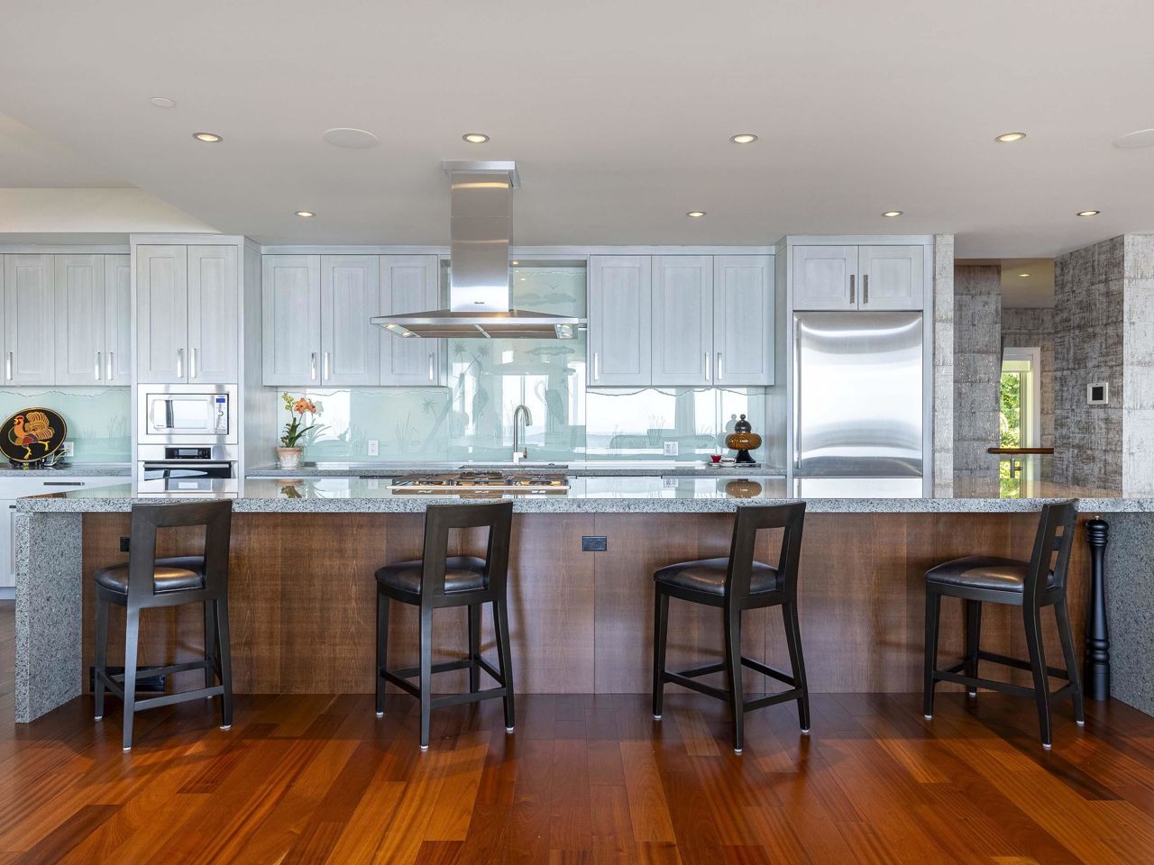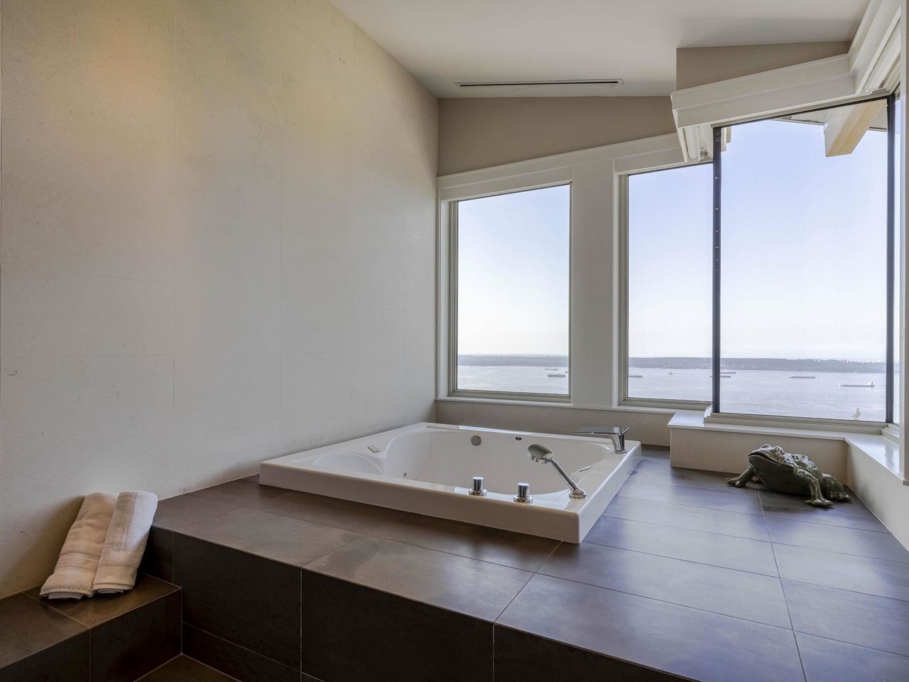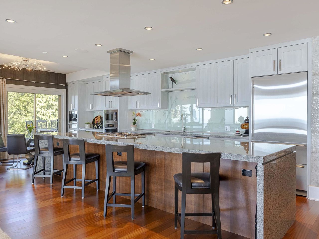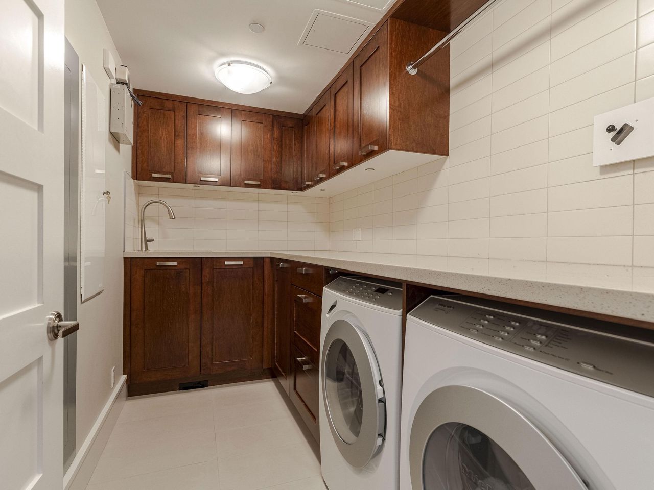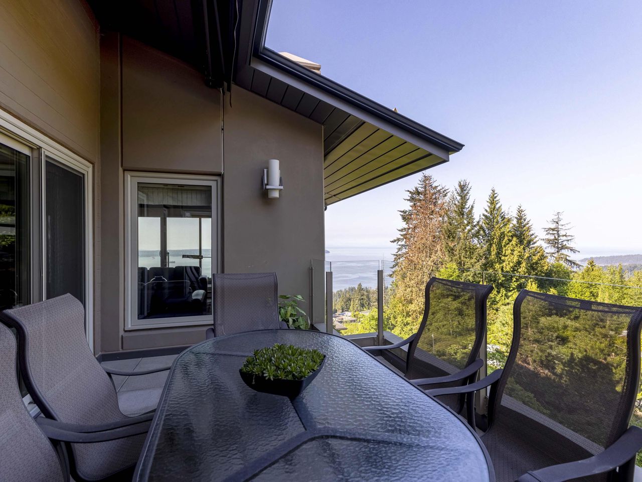 World Class Penthouse in The Aerie–This penthouse is one of eight executive residents built by the prestigious British Pacific Properties in the exclusive Whitby Estate, West Vancouver. This spectacular top floor end unit boasts an expansive one level open plan with a private elevator to your enclosed garage. This former show home features sweeping panoramic views, impressive 16’ high ceiling over the living room, floor to ceiling windows with stunning ocean, mountain & city views. Gourmet kitchen features an oversized granite island, perfect for entertaining your friends & family.