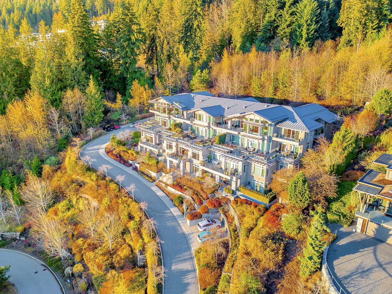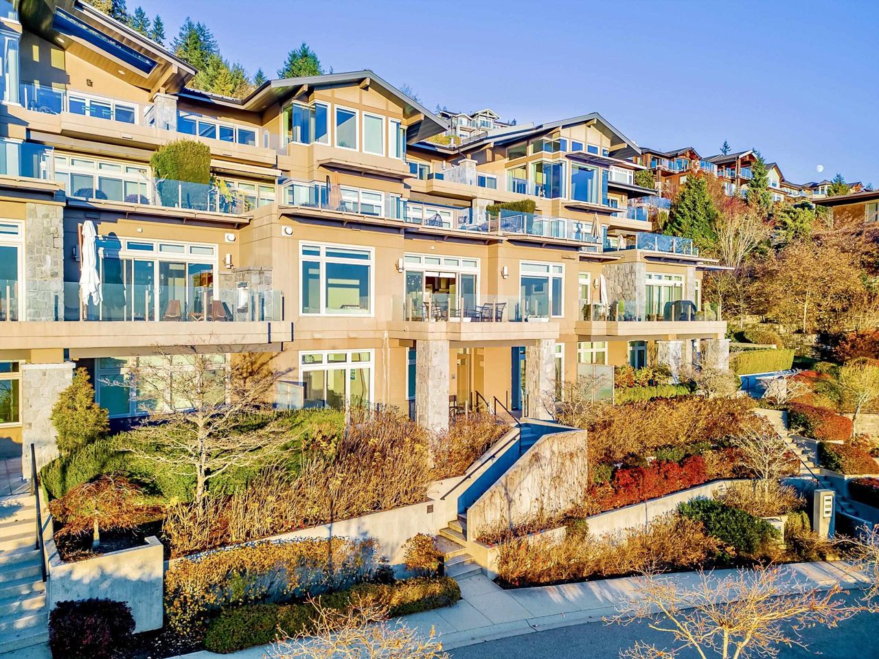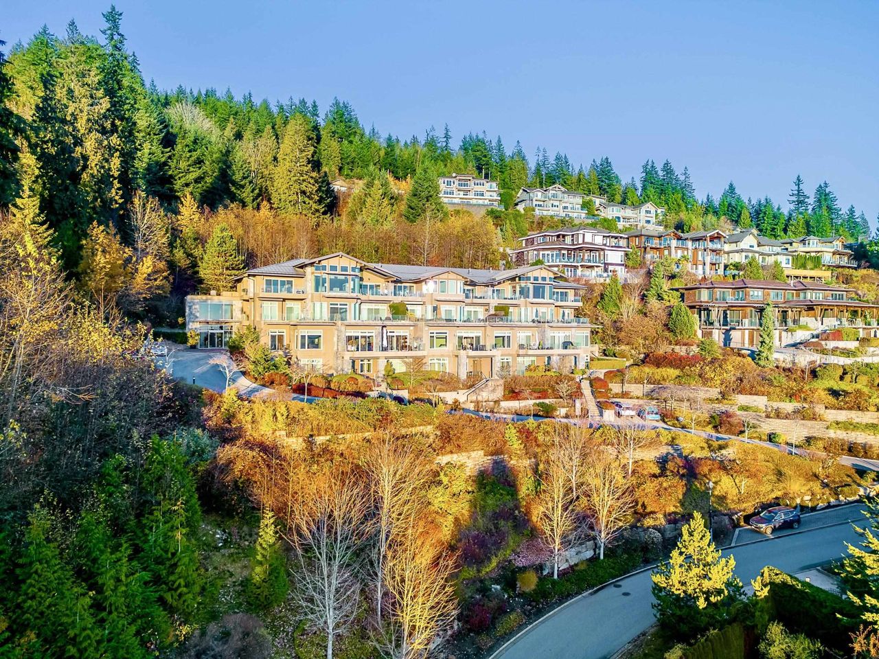Aerie II - 8 Exclusive residences built in concrete & stone by British Pacific Properties with sweeping panoramic views. A very elegant 2 level 'open plan' townhome with spacious living and dining rooms, floor/ceiling windows and a large entmnt terrace looking out to the city lights and harbour views. A bright state of the art kitchen equipped w/ Sub zero & Miele appliances, combined with family room & office/media room on the main floor. 2 spacious Mst suites w/ private view patios plus a den/office with separate entrance on lower garden level, huge laundry & storage room. Many extra's including geothermal heating, A/C & private 2 car garage, heated driveway. Aerie II is conveniently located in Whitby Estates, walking distance to Collingwood Jr School,Hollyburn Club & hiking trails.