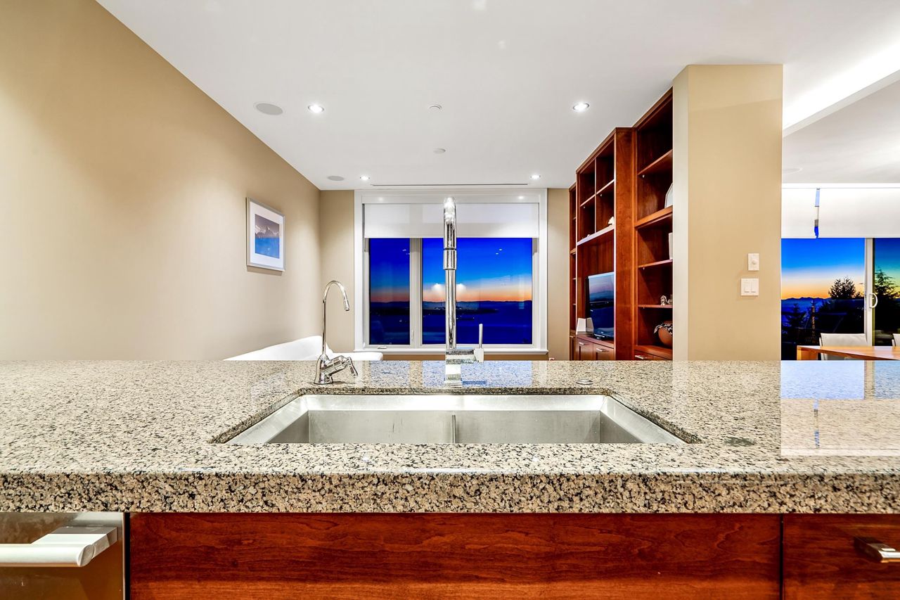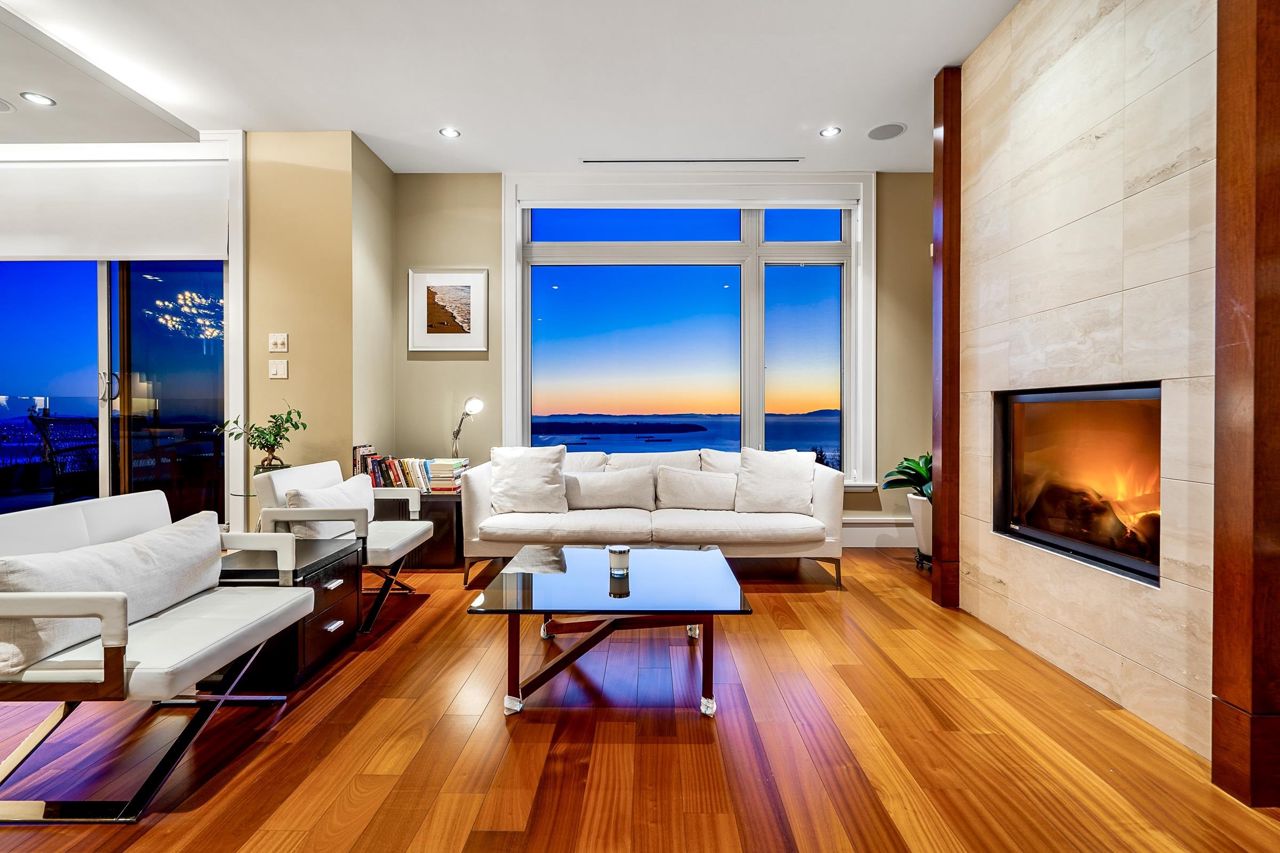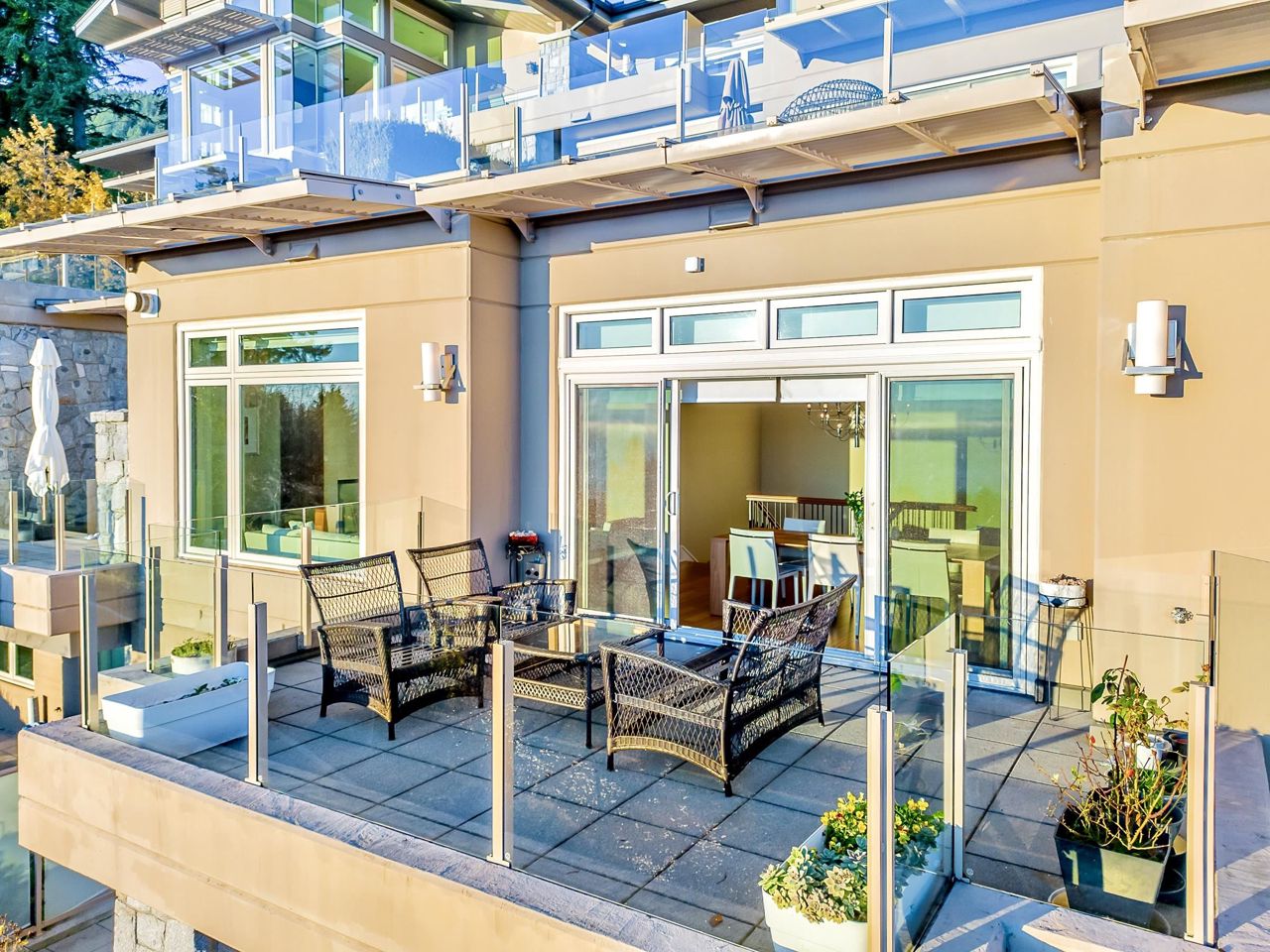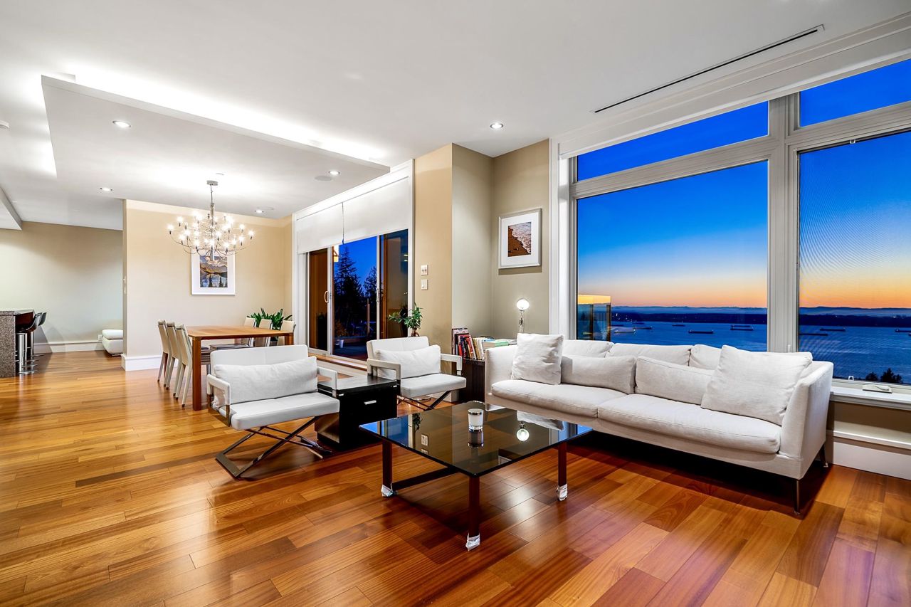 Aerie II - 8 Exclusive residences built in concrete & stone by British Pacific Properties with sweeping panoramic views. A very elegant 2 level 'open plan' townhome with spacious living and dining rooms, floor/ceiling windows and a large entmnt terrace looking out to the city lights and harbour views. A bright state of the art kitchen equipped w/ Sub zero & Miele appliances, combined with family room & office/media room on the main floor. 2 spacious Mst suites w/ private view patios plus a den/office with separate entrance on lower garden level, huge laundry & storage room. Many extra's including geothermal heating, A/C & private 2 car garage, heated driveway. Aerie II is conveniently located in Whitby Estates, walking distance to Collingwood Jr School,Hollyburn Club & hiking trails.