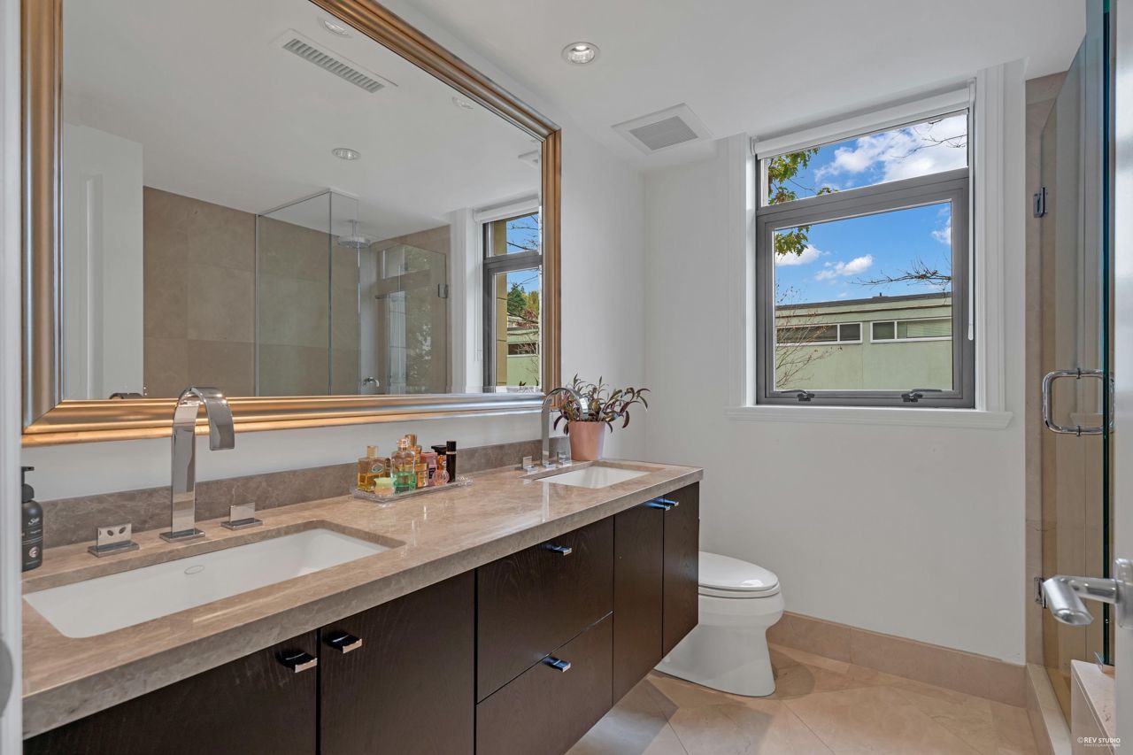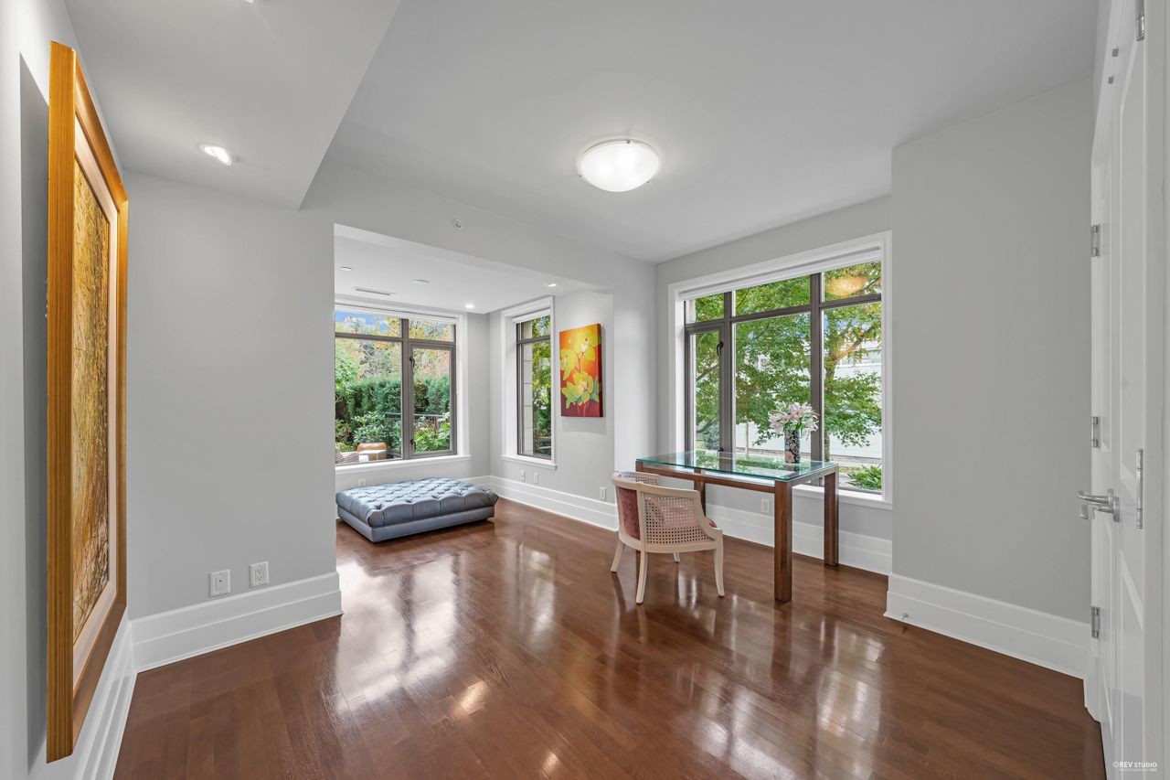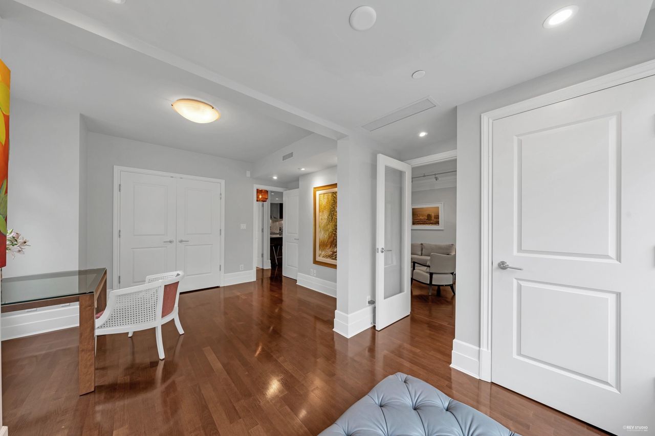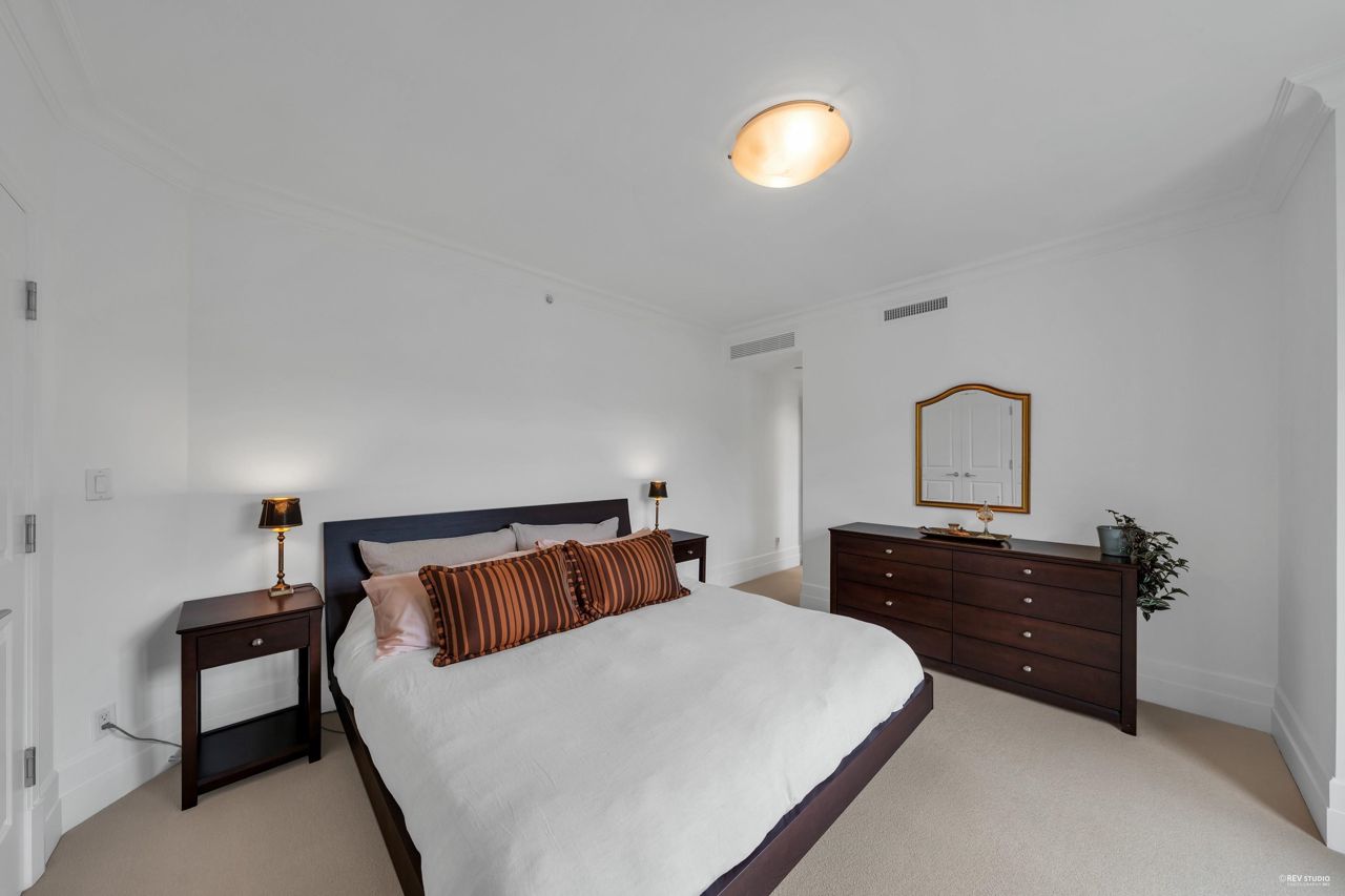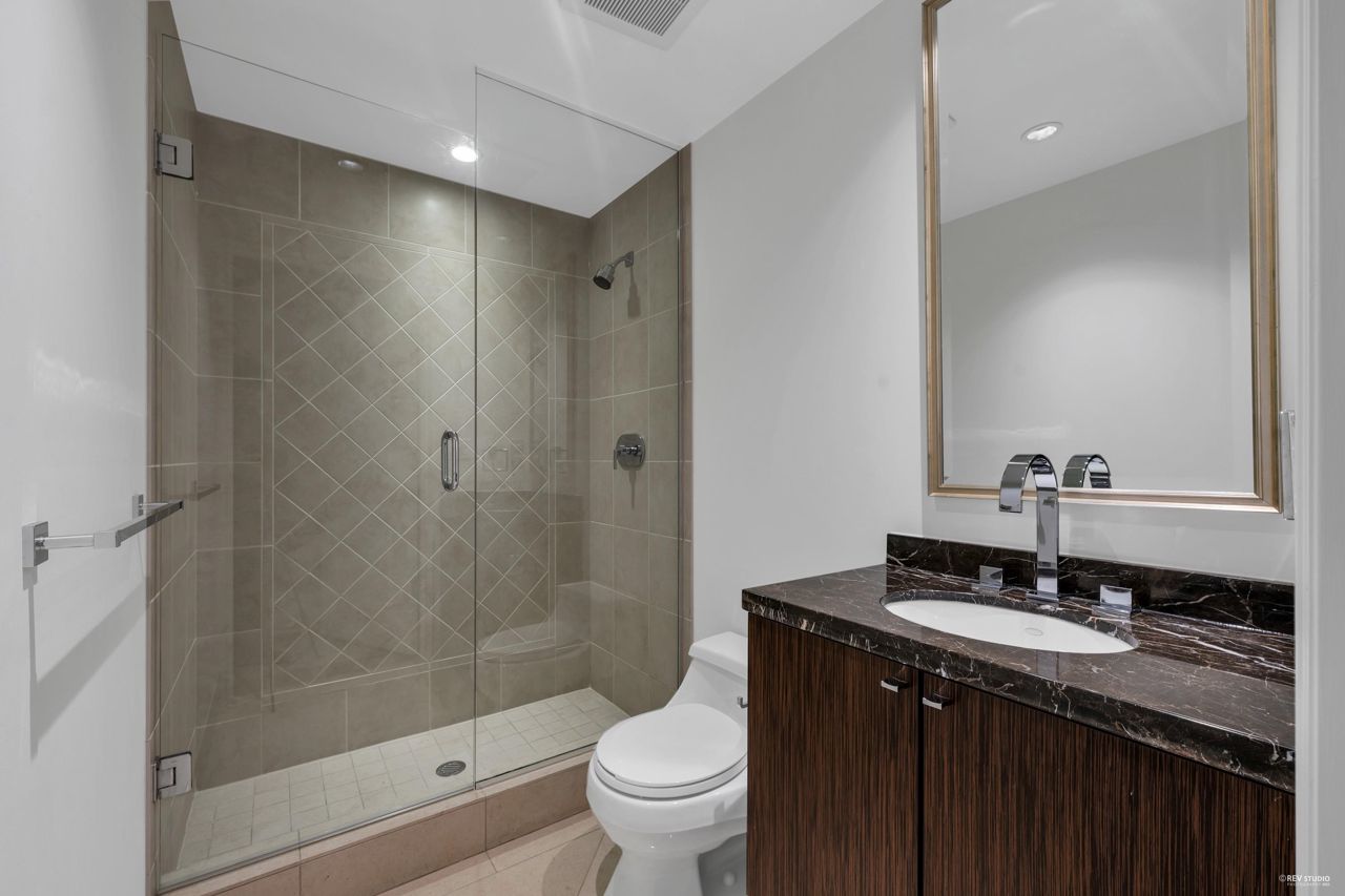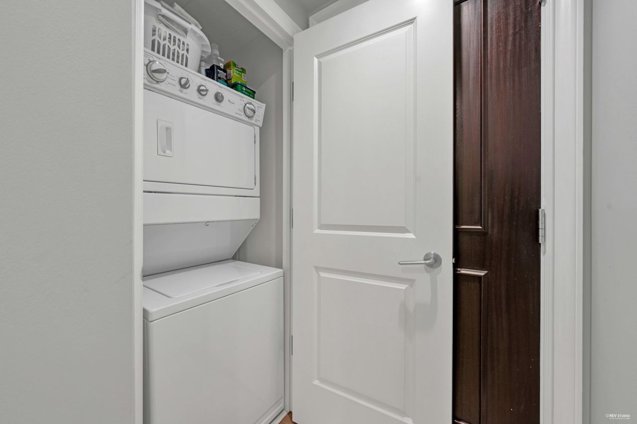 Elegant living at prestigious Waters Edge. Enjoy indoor/outdoor living at this exceptional S/W corner with unique large Private Garden Patio/Terrace (322 Sq ft) home designed by world renowned Robert Stern. Exquisite finishings, high ceilings, oak h/w flooring, solid wood doors, moldings, Euro style Kitchen with subzero fridge, gas range, air con. & fireplace. Originally 2 Bedrooms & Solarium (2nd bedroom & solarium now 1 large flex room, easily changed back). Concierge, impressive Library/Social Lounge, Fitness Centre, Steam/Sauna Spa. Pet friendly, great community & carefree living at wonderfully maintained & landscaped property. Access to Capilano Pacific Trails & public transit. Walk to all conveniences, Park Royal, Ambleside Beach & Seawall. Pleasure to Show!