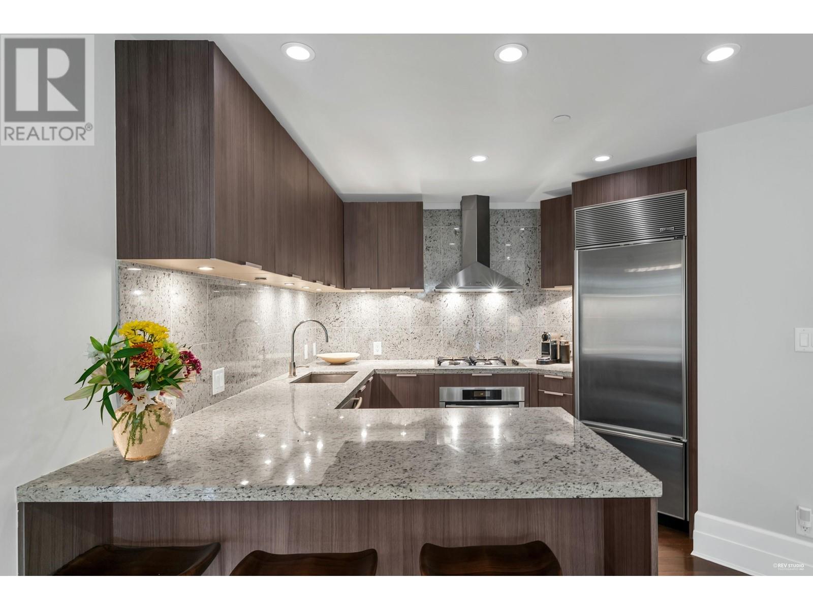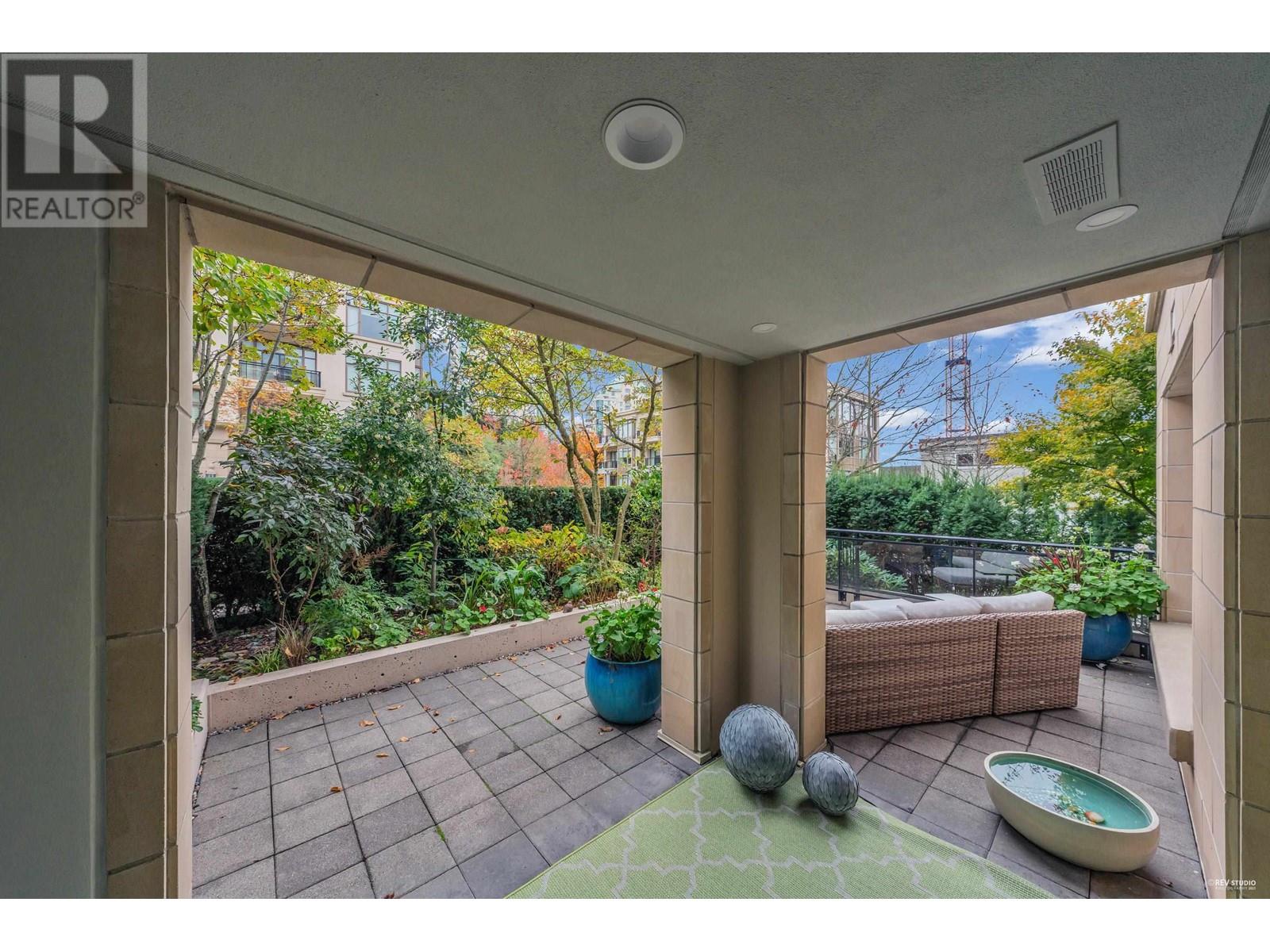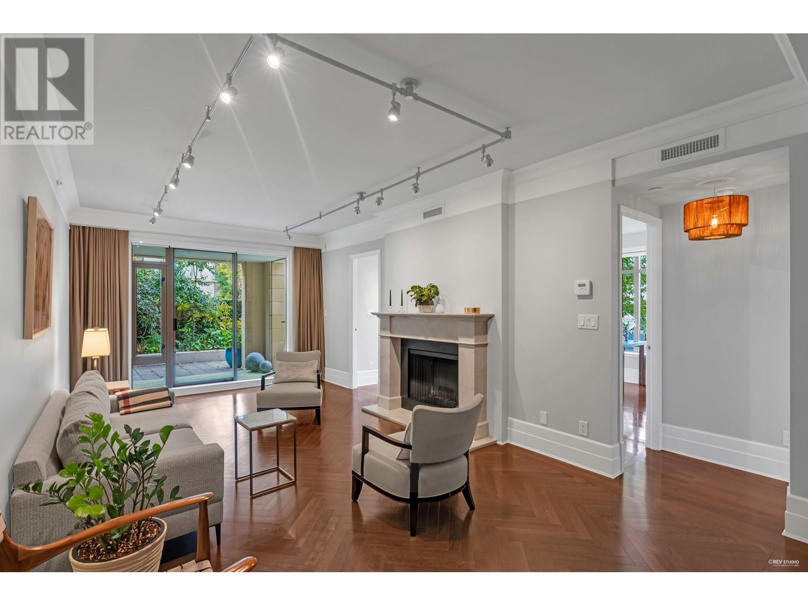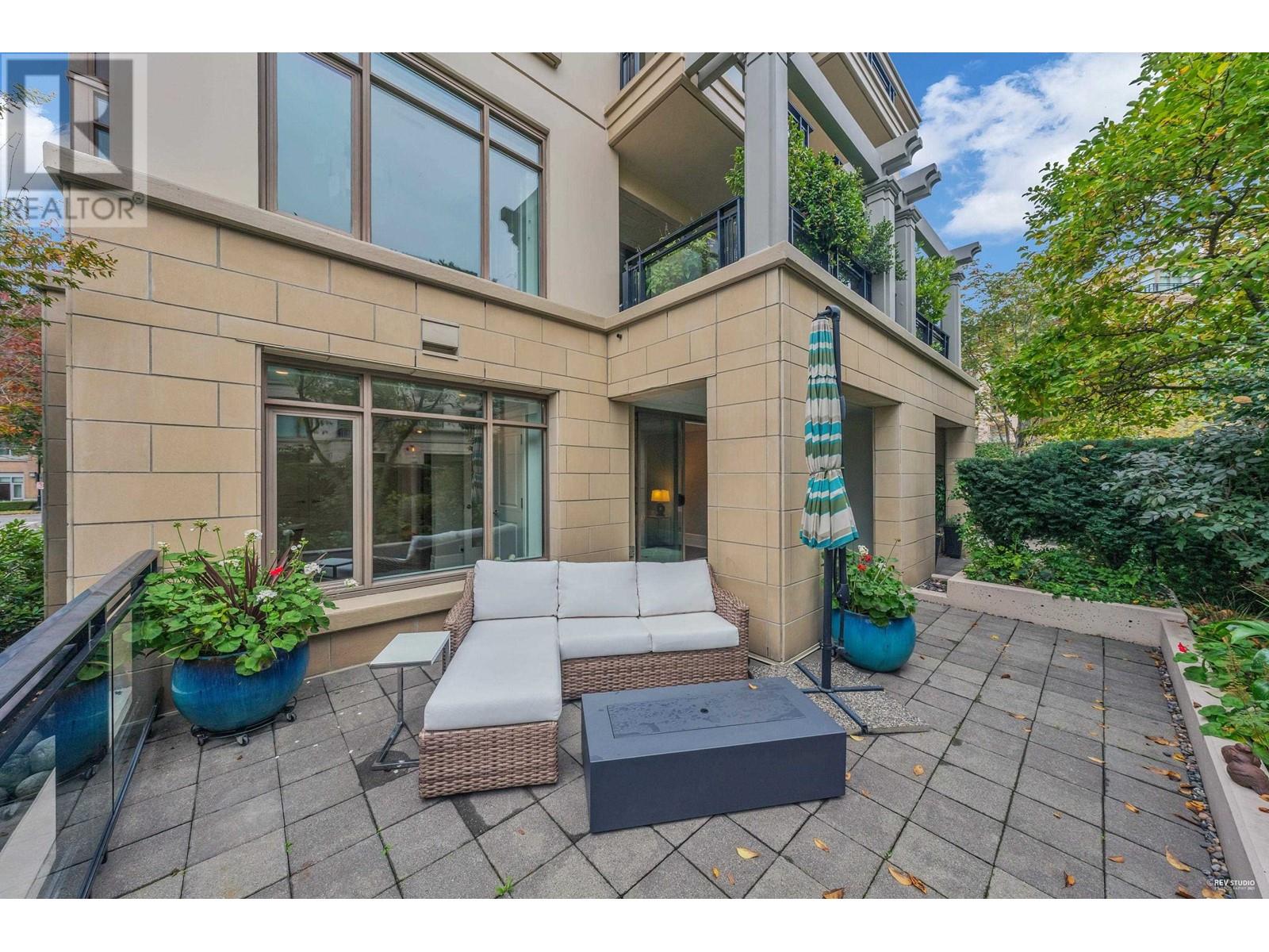 Elegant living at prestigious Waters Edge. Enjoy indoor/outdoor living at this exceptional S/W corner with unique large Private Garden Patio/Terrace (322 Sq ft) home designed by world renowned Robert Stern. Exquisite finishings, high ceilings, oak h/w flooring, solid wood doors, moldings, Euro style Kitchen with subzero fridge, gas range, air con. & fireplace. Originally 2 Bedrooms & Solarium (2nd bedroom & solarium now 1 large flex room, easily changed back). Concierge, impressive Library/Social Lounge, Fitness Centre, Steam/Sauna Spa. Pet friendly, great community & carefree living at wonderfully maintained & landscaped property. Access to Capilano Pacific Trails & public transit. Walk to all conveniences, Park Royal, Ambleside Beach & Seawall. Pleasure to Show! (id:22211)