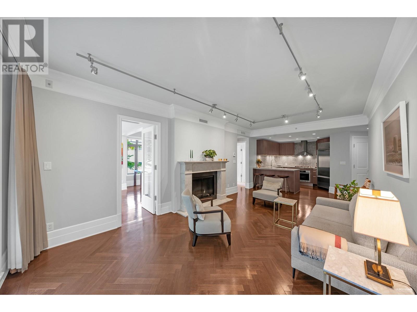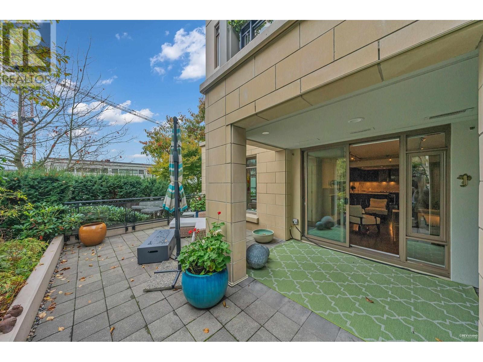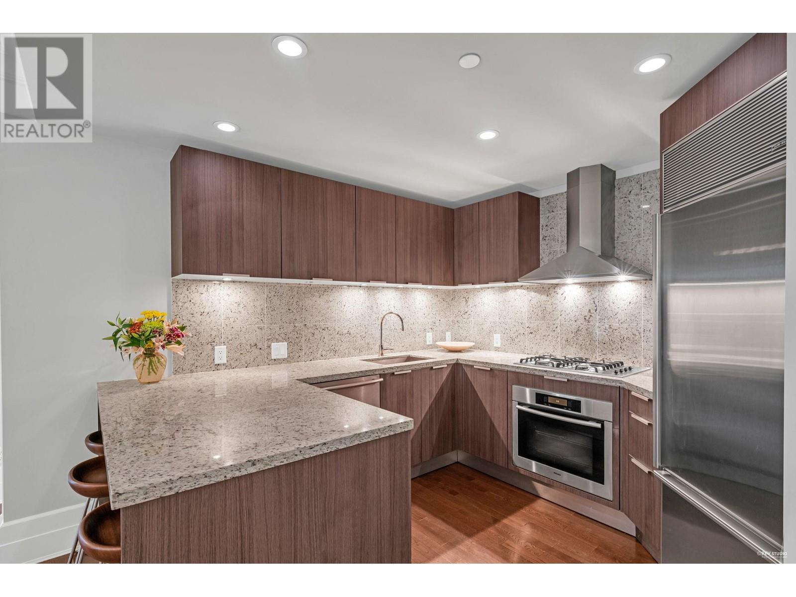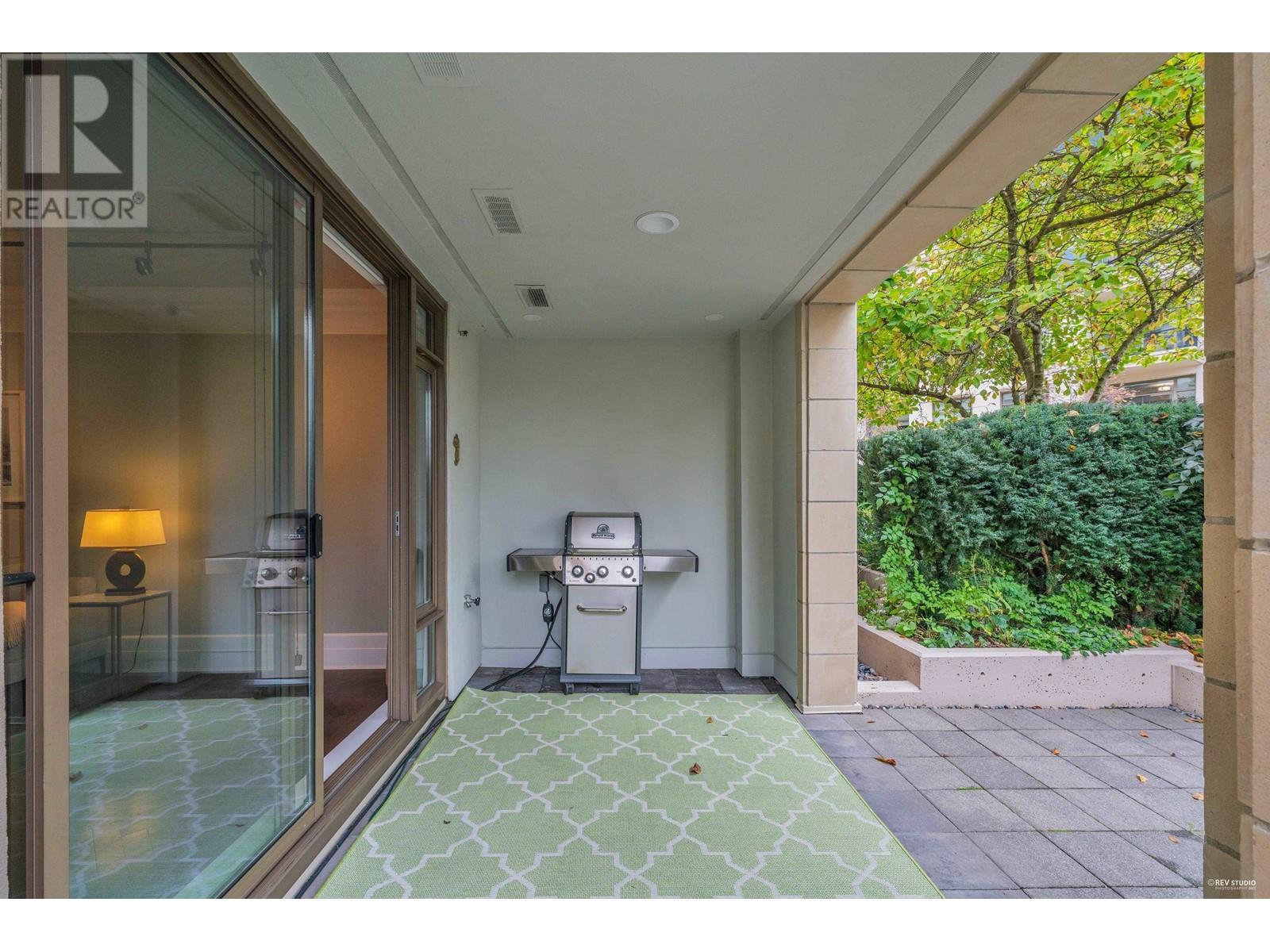 Elegant living at prestigious Waters Edge. Enjoy indoor/outdoor living at this exceptional S/W corner with unique large Private Garden Patio/Terrace (322 Sq ft) home designed by world renowned Robert Stern. Exquisite finishings, high ceilings, oak h/w flooring, solid wood doors, moldings, Euro style Kitchen with subzero fridge, gas range, air con. & fireplace. Originally 2 Bedrooms & Solarium (2nd bedroom & solarium now 1 large flex room, easily changed back). Concierge, impressive Library/Social Lounge, Fitness Centre, Steam/Sauna Spa. Pet friendly, great community & carefree living at wonderfully maintained & landscaped property. Access to Capilano Pacific Trails & public transit. Walk to all conveniences, Park Royal, Ambleside Beach & Seawall. Pleasure to Show! (id:22211)