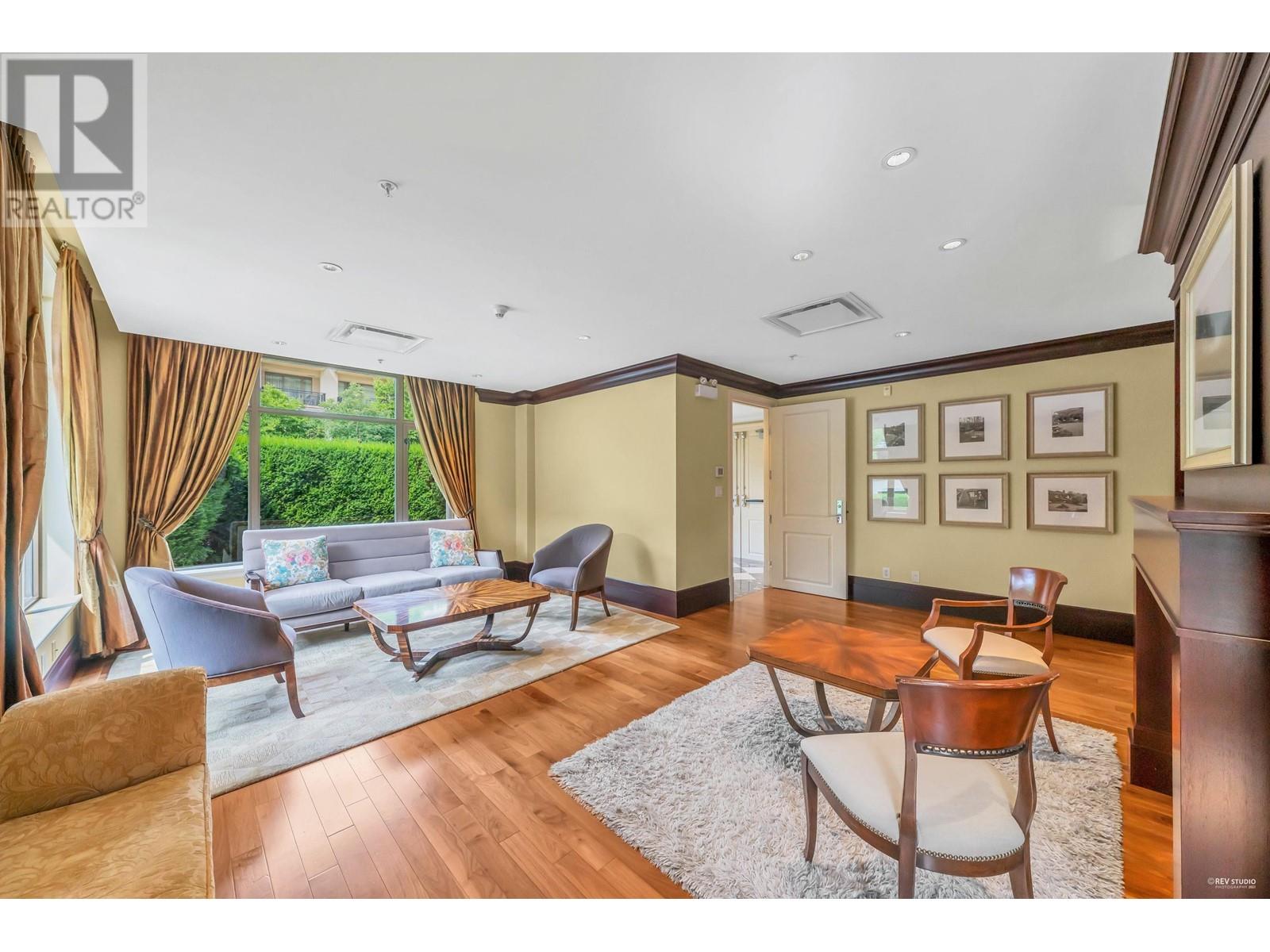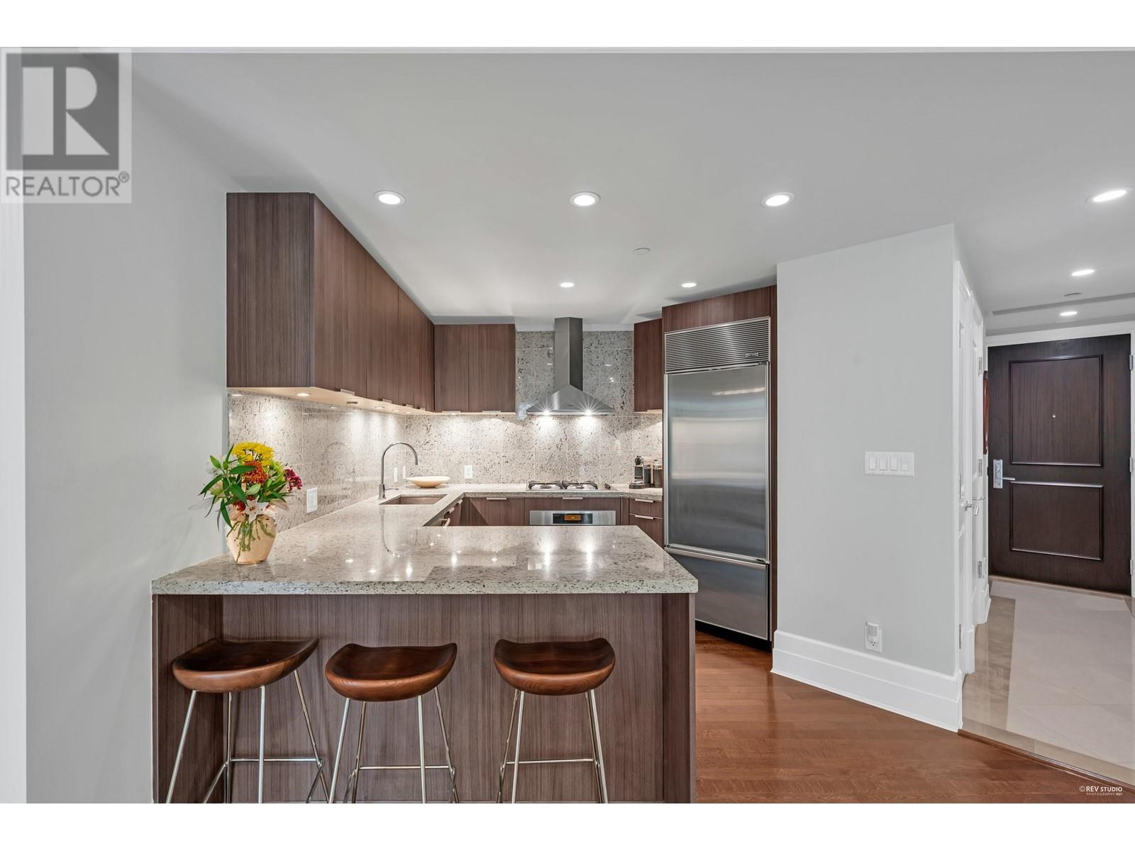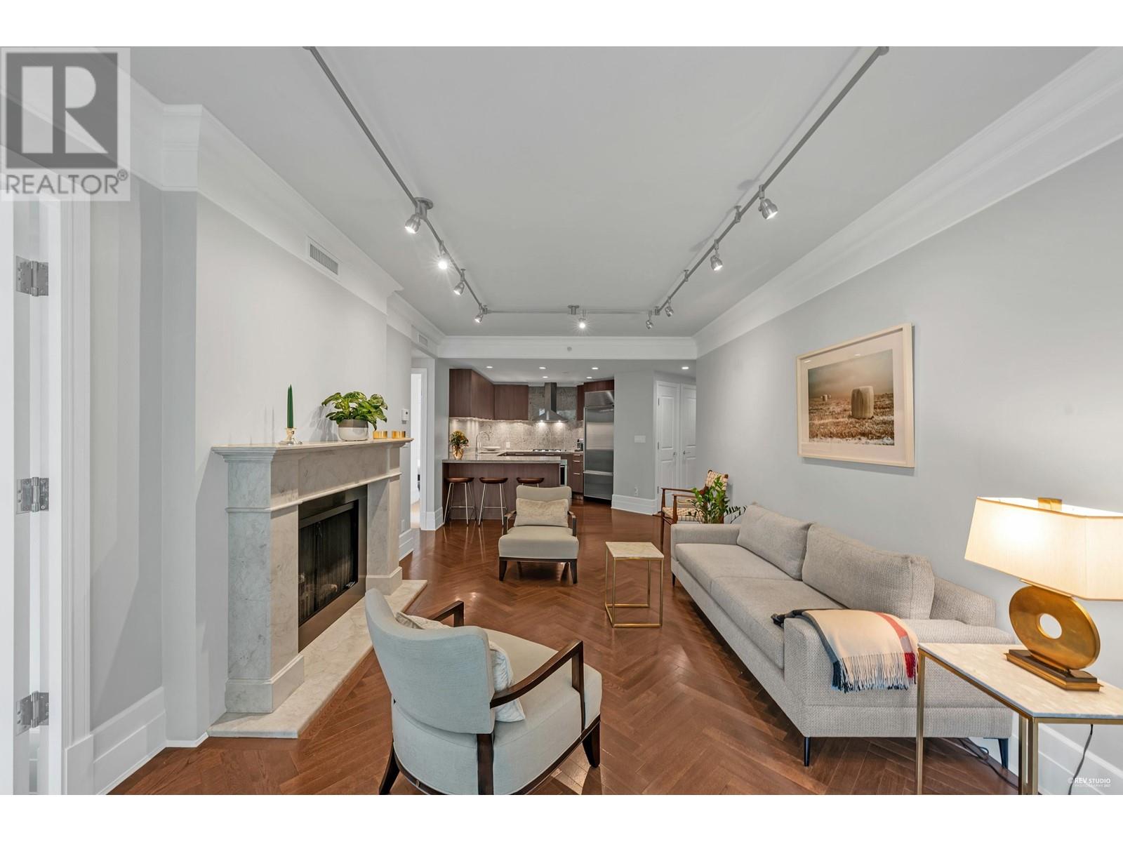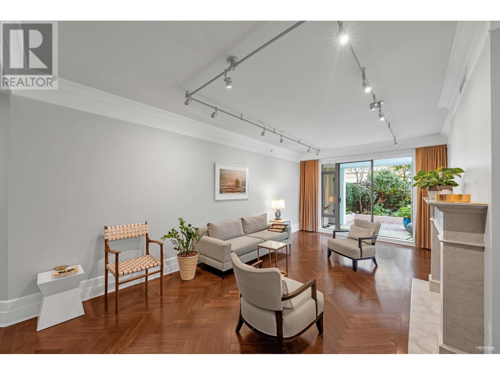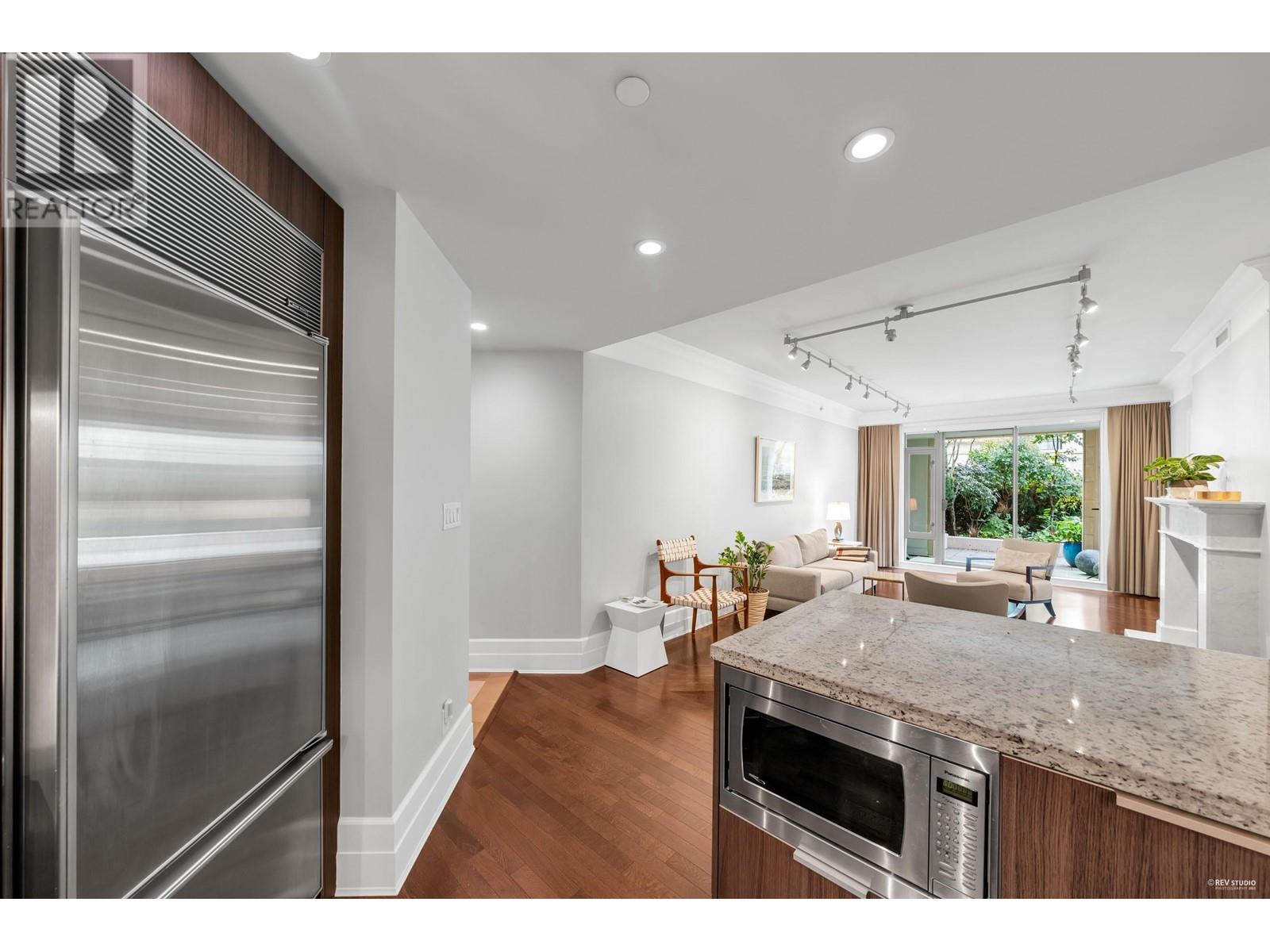 Elegant living at prestigious Waters Edge. Enjoy indoor/outdoor living at this exceptional S/W corner with unique large Private Garden Patio/Terrace (322 Sq ft) home designed by world renowned Robert Stern. Exquisite finishings, high ceilings, oak h/w flooring, solid wood doors, moldings, Euro style Kitchen with subzero fridge, gas range, air con. & fireplace. Originally 2 Bedrooms & Solarium (2nd bedroom & solarium now 1 large flex room, easily changed back). Concierge, impressive Library/Social Lounge, Fitness Centre, Steam/Sauna Spa. Pet friendly, great community & carefree living at wonderfully maintained & landscaped property. Access to Capilano Pacific Trails & public transit. Walk to all conveniences, Park Royal, Ambleside Beach & Seawall. Pleasure to Show! (id:22211)