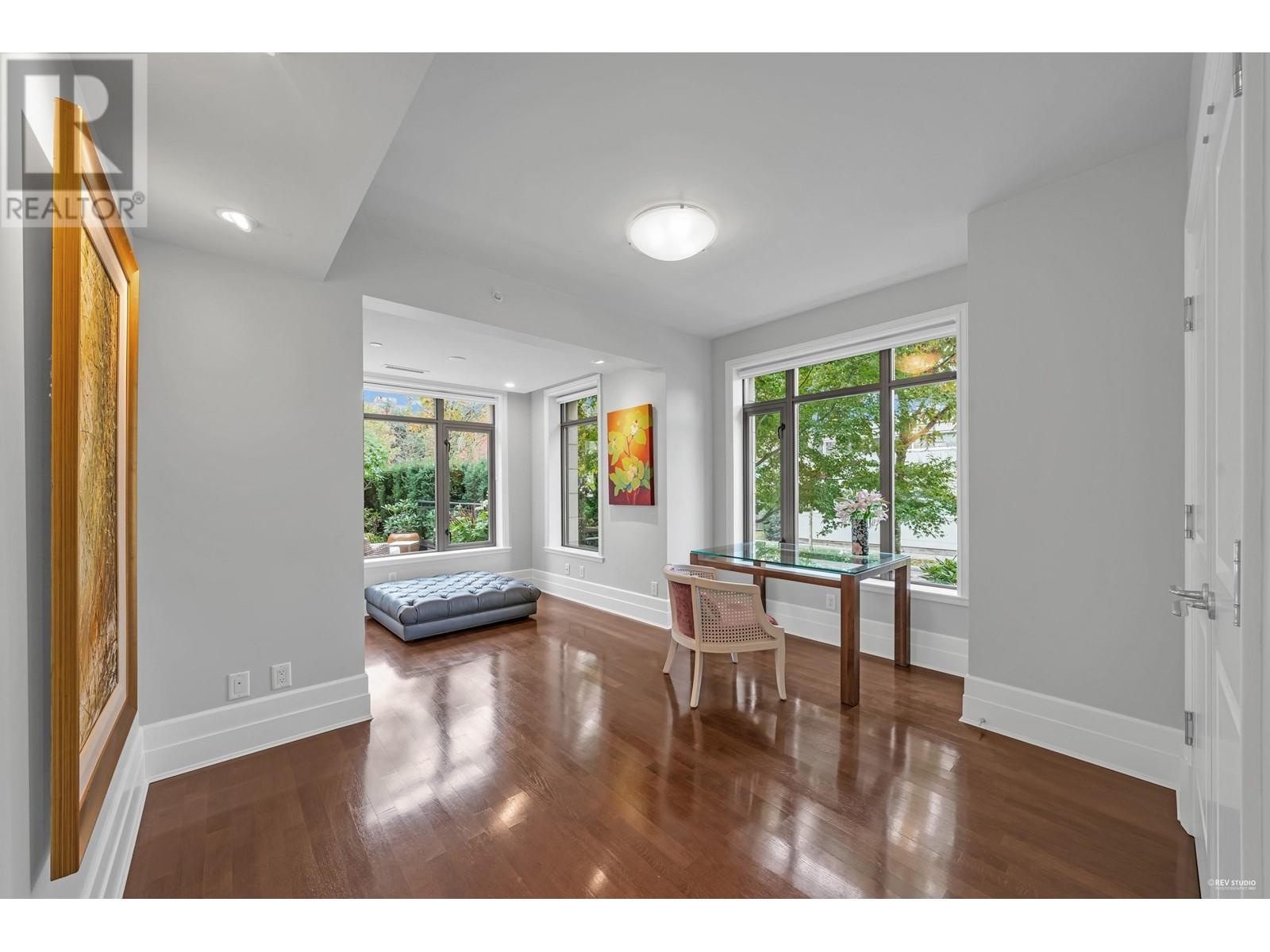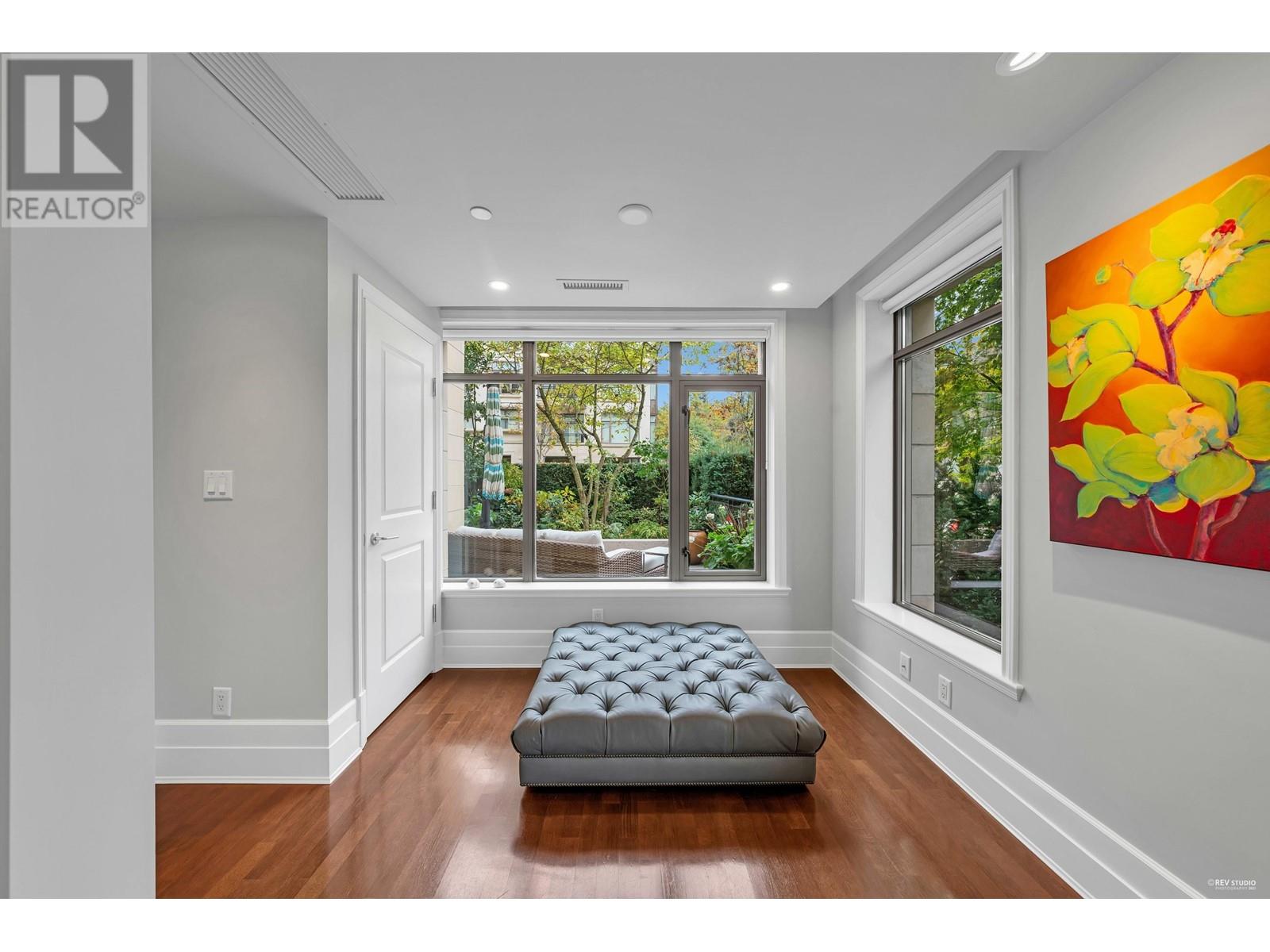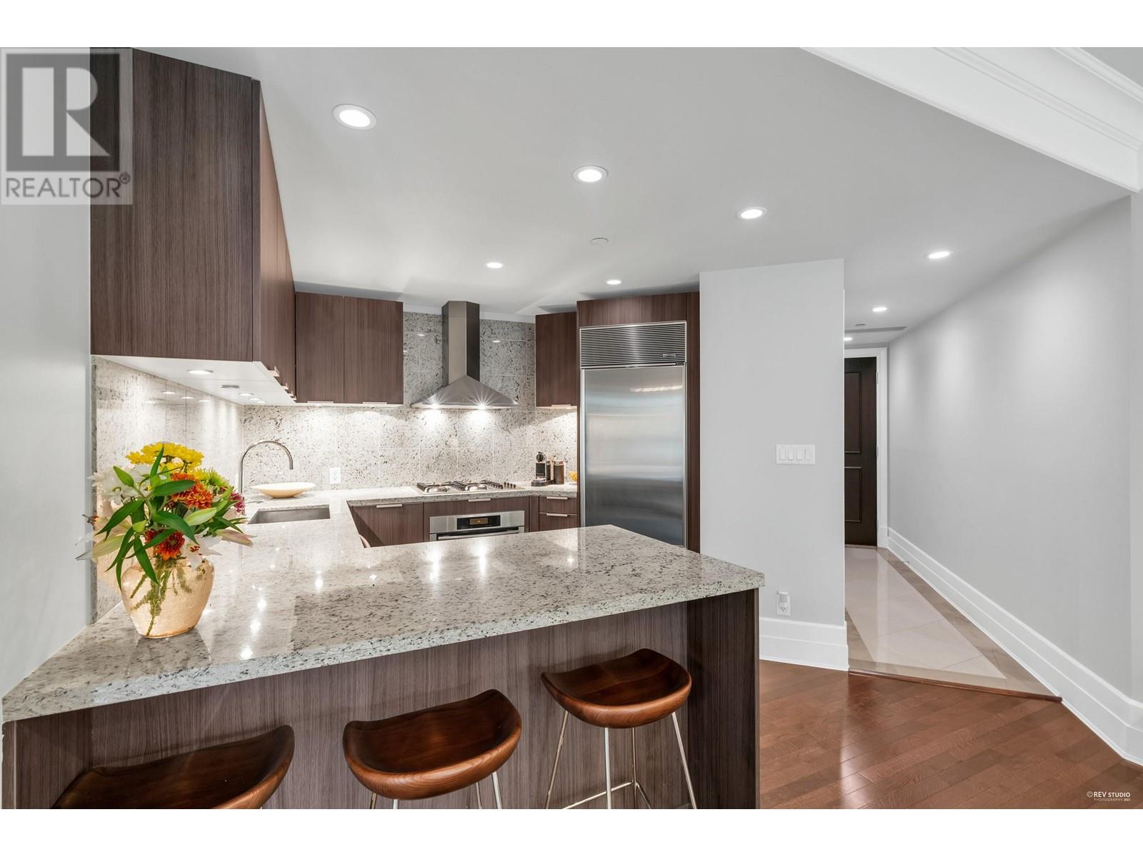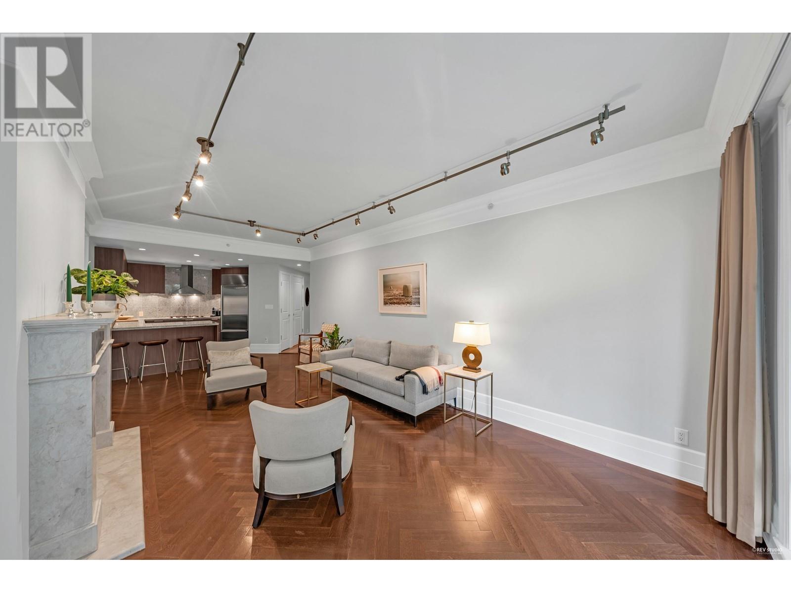 Elegant living at prestigious Waters Edge. Enjoy indoor/outdoor living at this exceptional S/W corner with unique large Private Garden Patio/Terrace (322 Sq ft) home designed by world renowned Robert Stern. Exquisite finishings, high ceilings, oak h/w flooring, solid wood doors, moldings, Euro style Kitchen with subzero fridge, gas range, air con. & fireplace. Originally 2 Bedrooms & Solarium (2nd bedroom & solarium now 1 large flex room, easily changed back). Concierge, impressive Library/Social Lounge, Fitness Centre, Steam/Sauna Spa. Pet friendly, great community & carefree living at wonderfully maintained & landscaped property. Access to Capilano Pacific Trails & public transit. Walk to all conveniences, Park Royal, Ambleside Beach & Seawall. Pleasure to Show! (id:22211)