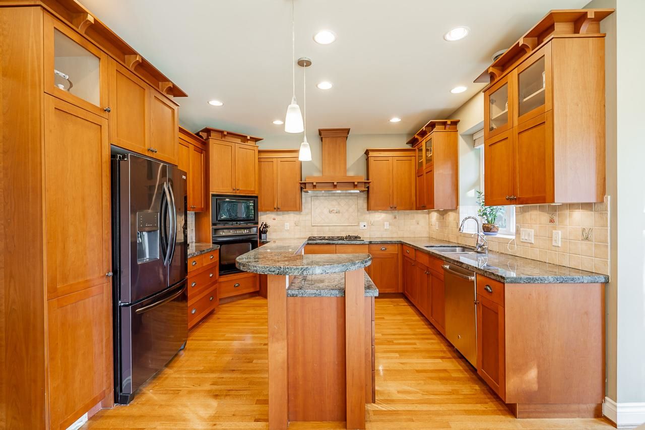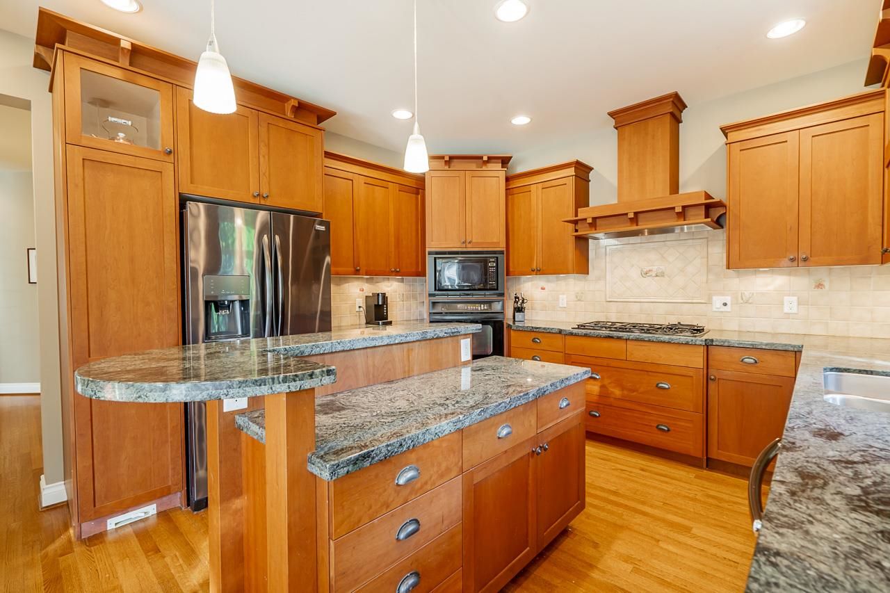 Lovely craftsman style residence situated on a bright South facing property. This custom built home offers a highly functional & appealing floor plan. The main floor features solid oak hardwood flooring, vaulted ceilngs, formal living & dining rooms and a large family room. Lot's of custom built in features such as office/computer space and a wet bar with fridge & display cabinetry. The kitchen offers a gas cooktop, built in wall oven and microwave and an eating bar/island. Upstairs you will find 3 big bedrooms & 2 bathrooms. The primary bedroom has a spa like ensuite and a walk in closet. The basement level has a huge rec room, a 4th bedroom with a full bathroom & tons of storage. Located in a fantastic school district with great private school options nearby. Viewings by appointment.